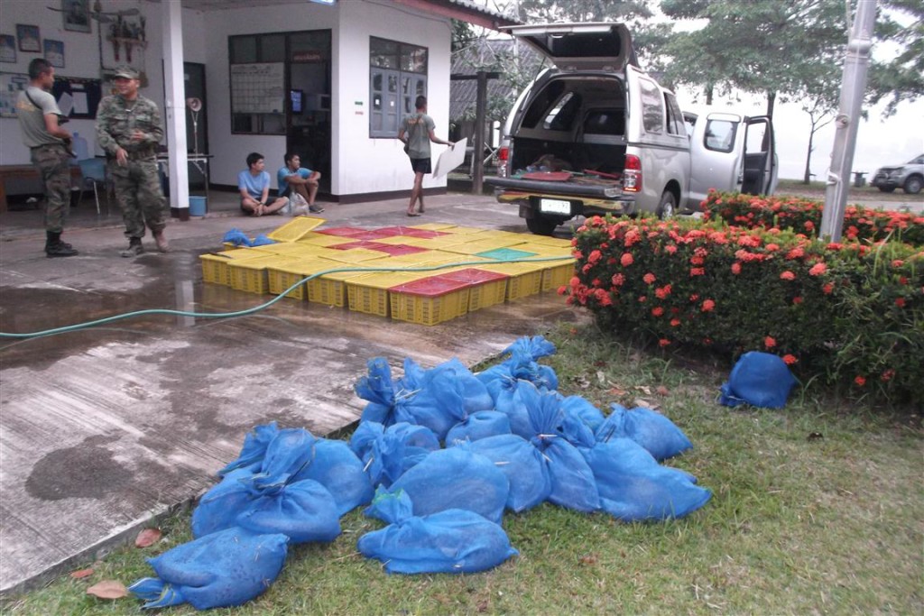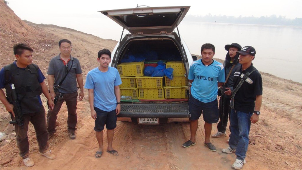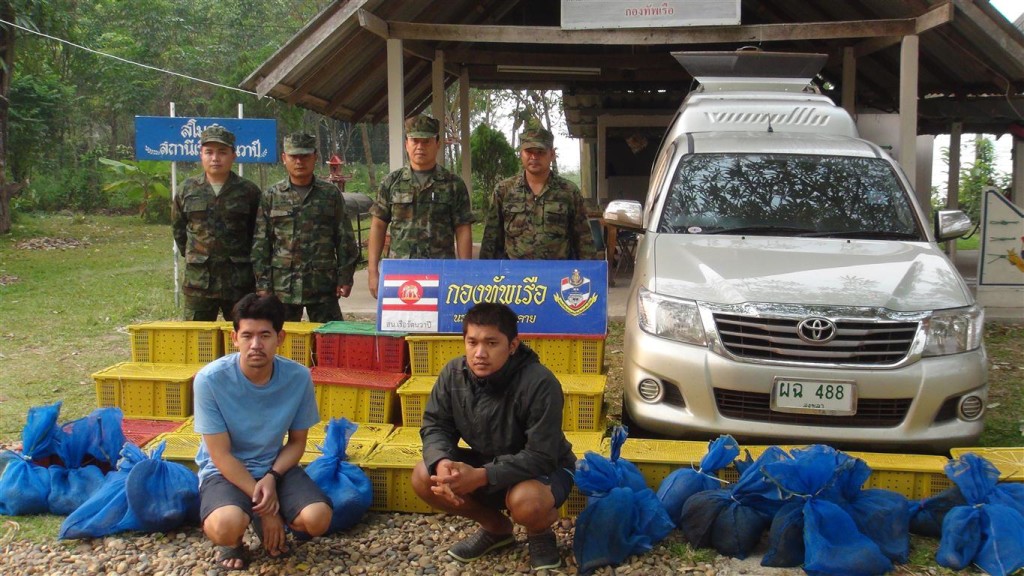 Thai Royal Navy officers arrested 2 men from Southern Thailand (Songkhla province) who were unloading 107 pangolins (an endangered and protected wild animal) from their car onto a long tail boat on the Mekong river, dividing Thailand and Laos. The men acted suspicious once they arrived at the village near Nongkhai city and were found to have false number plates on their car. The car originated from Songkhla, but plates on the care belonged to another vehicle registered in Bangkok. Once arrested and interrogated by the Navy marines they confessed they transported the pangolins from the Thai-Malaysian border to Nongkhai.