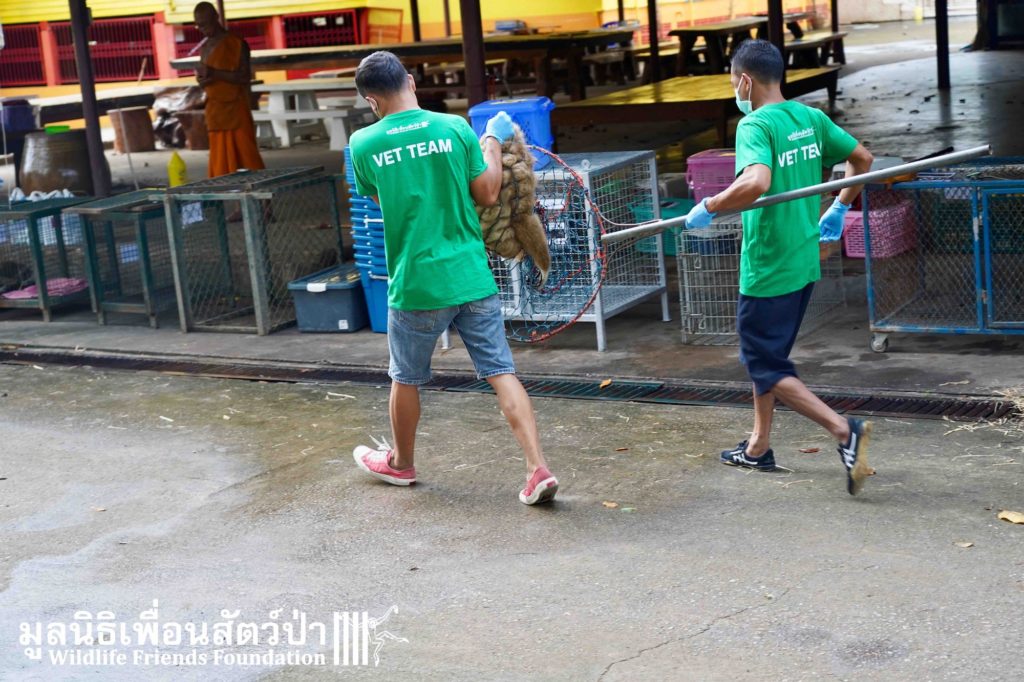 The rescue team are well experienced in handling all the various species, but have never done them all together on such a scale. After extensive meetings and checking of transportation containers a plan was formulated. The rescue team was then chosen and set off the day before the rescue. Having to navigate through Bangkok meant it took over 7 hours to reach the temple. Once there a final check was made and the team retired to a nearby hotel and prepared for an early start.