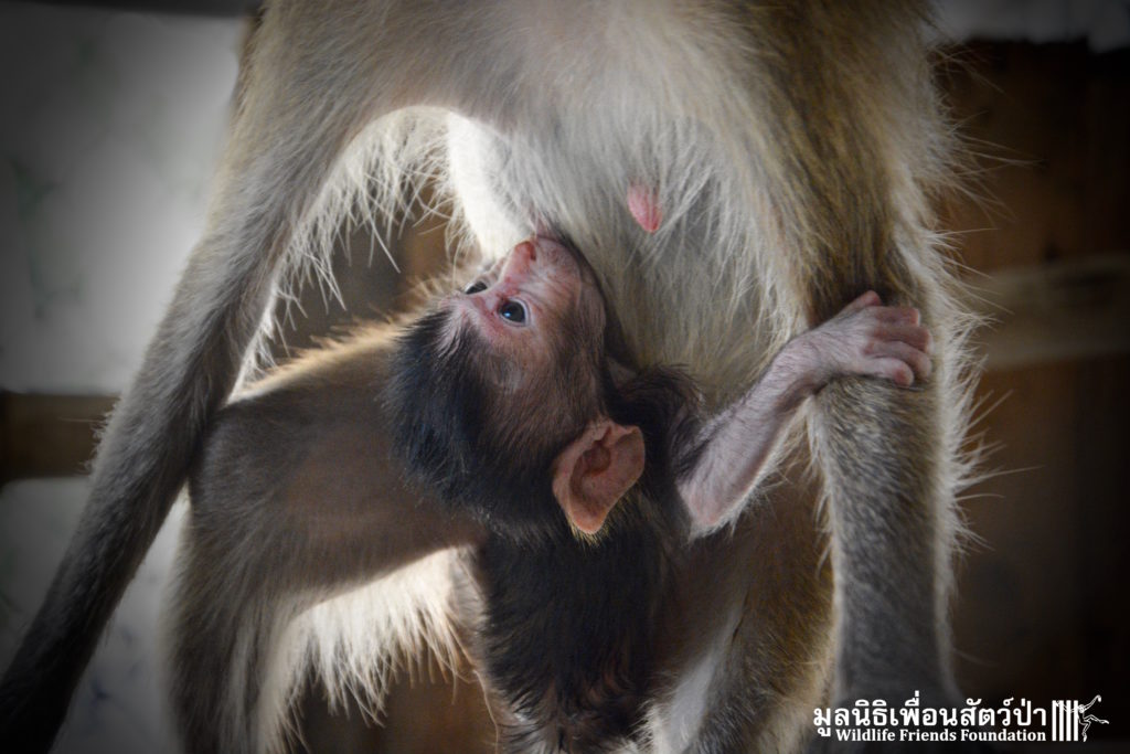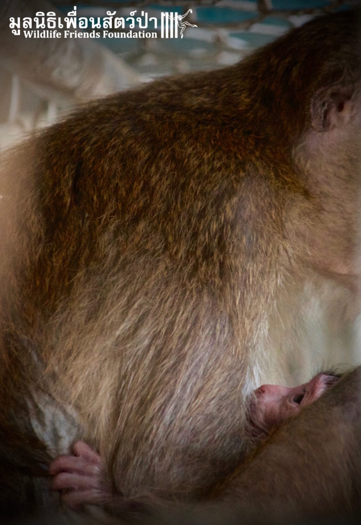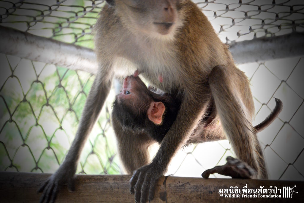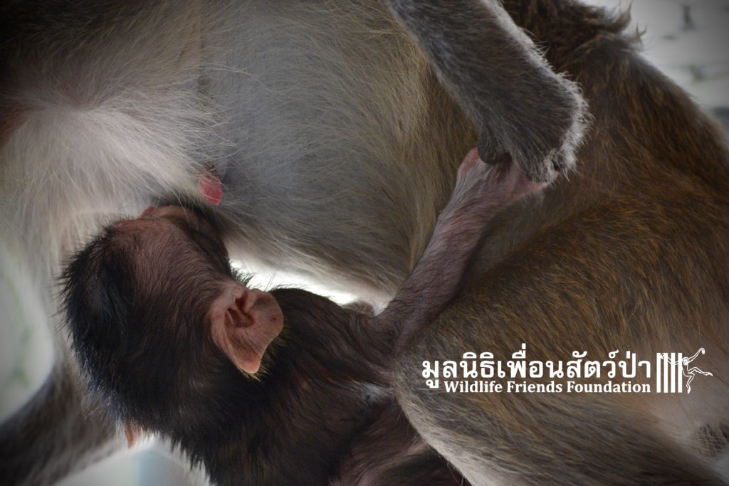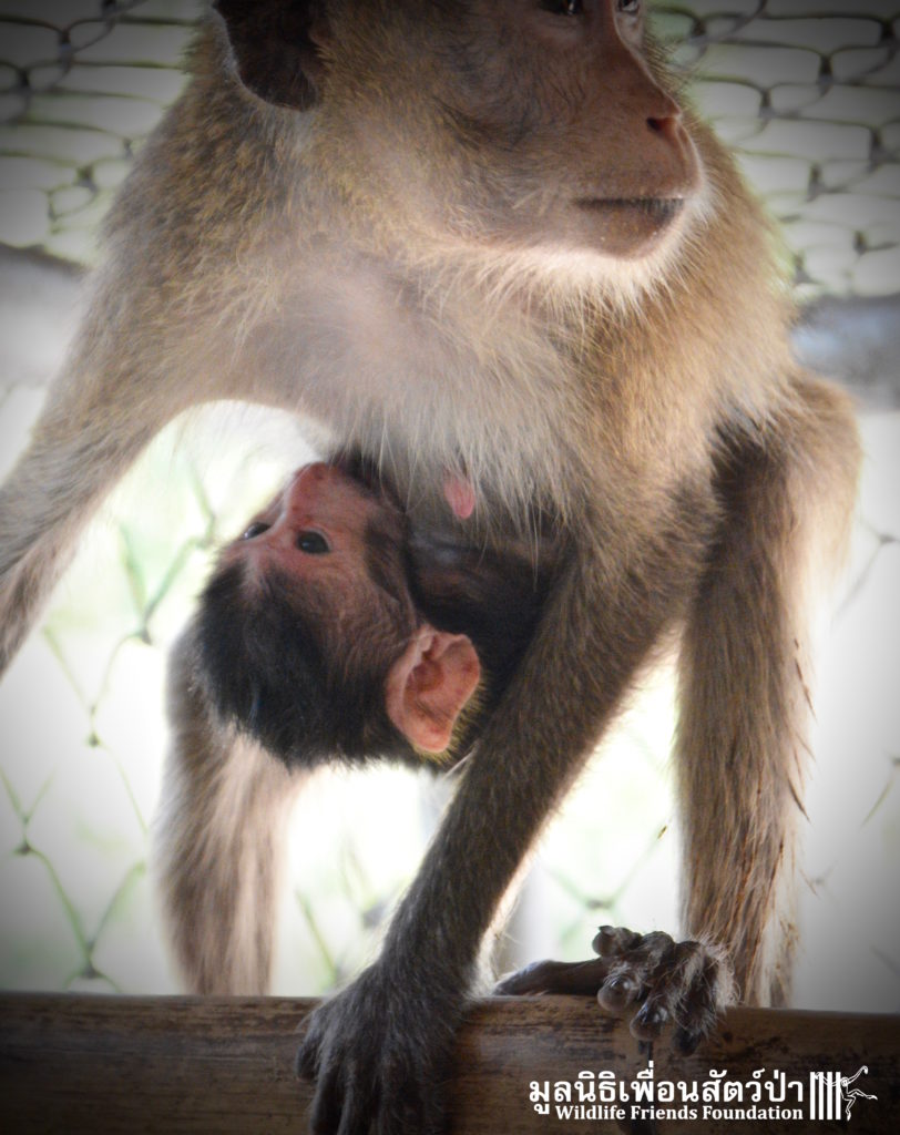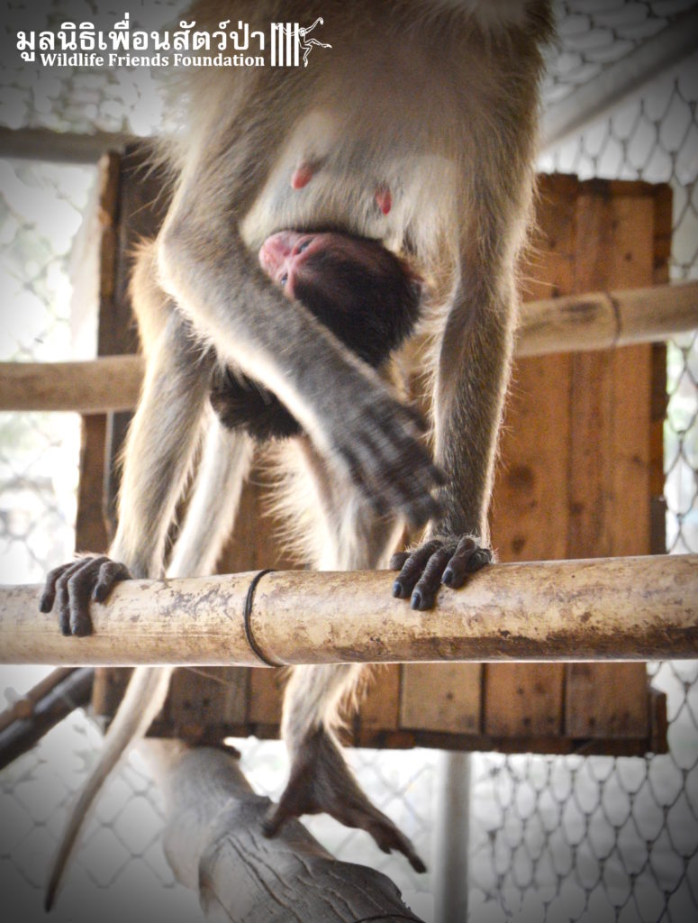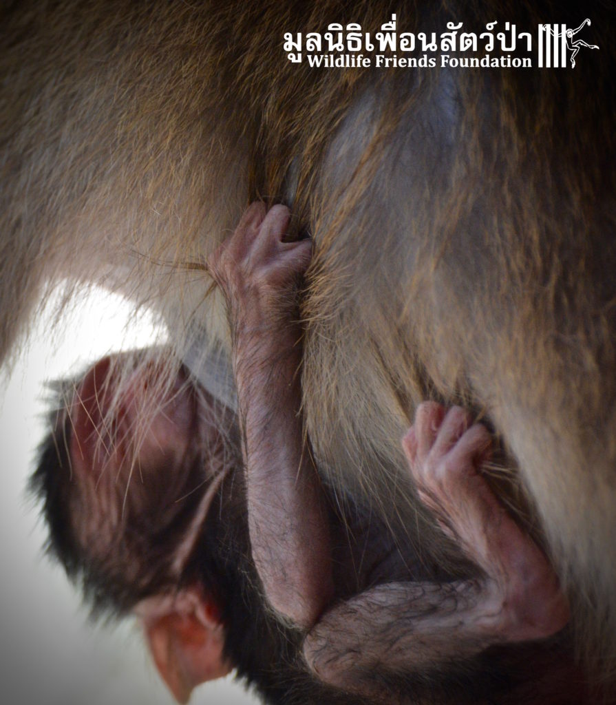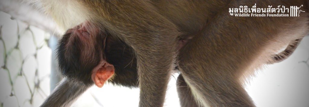 After spending almost 2 months at the WFFT Wildlife Hospital under intensive care and rehabilitation from our vet team she has made extraordinary improvements that none of us had foreseen, we have named her ‘Patti Harn’ (English: Miracle). Upon arrival Patti Harn could barely sit up and spent the first week being hand fed by the team. Over the following weeks she re-gained her much of her strength, and her ability to walk and climb began dramatically improving. To the astonishment of us all here at WFFT she has regained almost all of her strength and abilities to again enable her move around and climb. Further adding to our amazement a few days ago she gave birth to a healthy baby girl who we have named ‘Mali’ (English: Jasmine). Patti Harn is proving to be an exceptional mother, both her and Jasmine are doing well. We are hopeful that both mother and baby will be released back to the wild in the coming months, after all her family are probably wondering where she is. As with any young baby the first few weeks are the most challenging but so far so good for this special little duo. We will keep you posted.