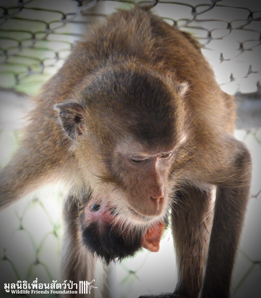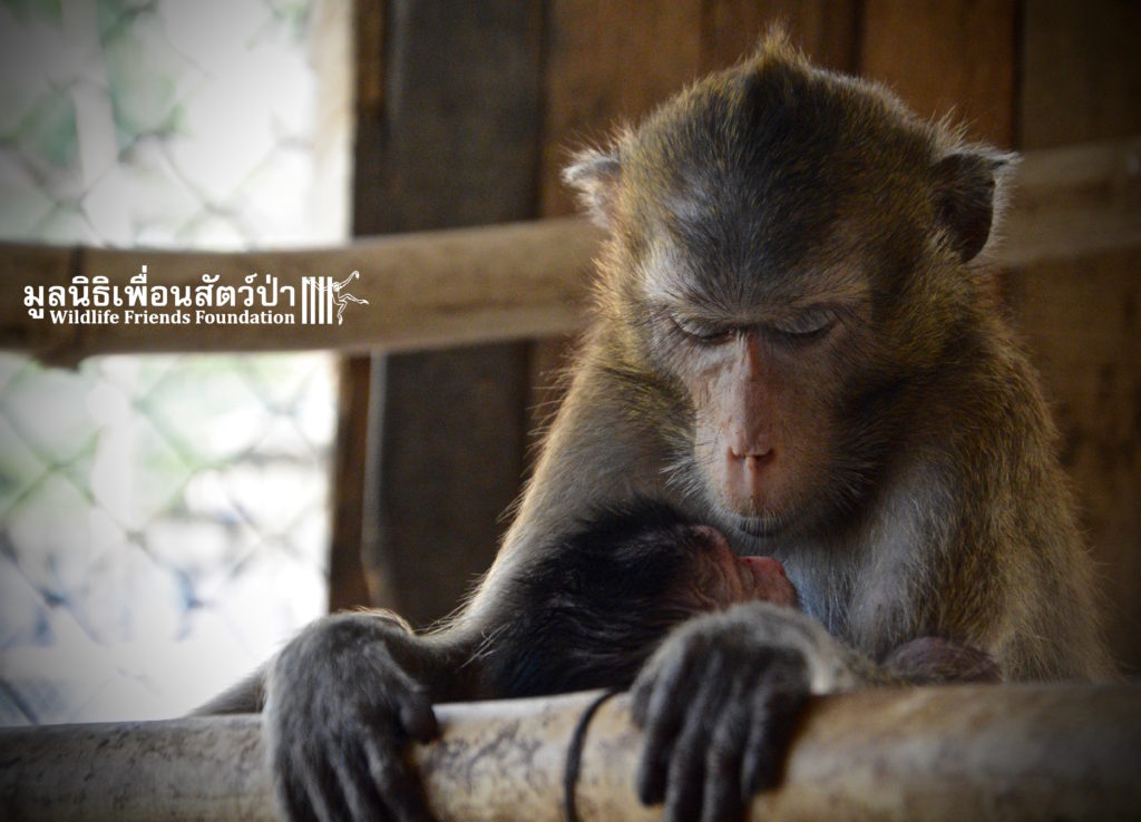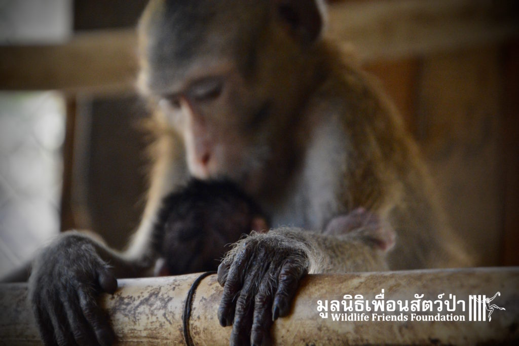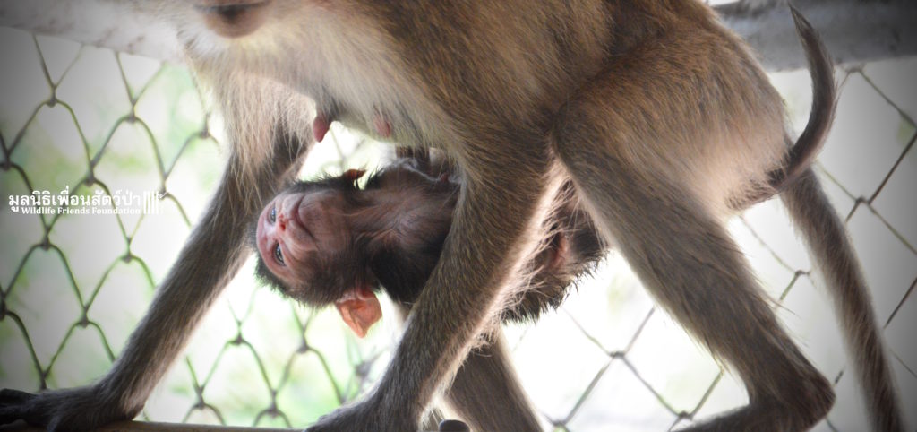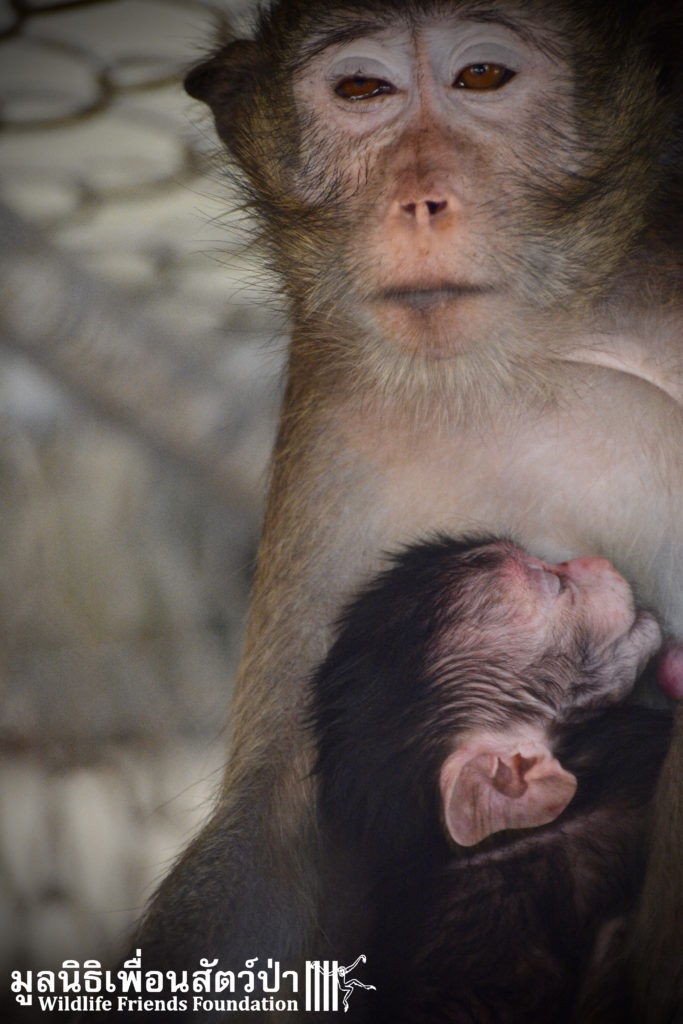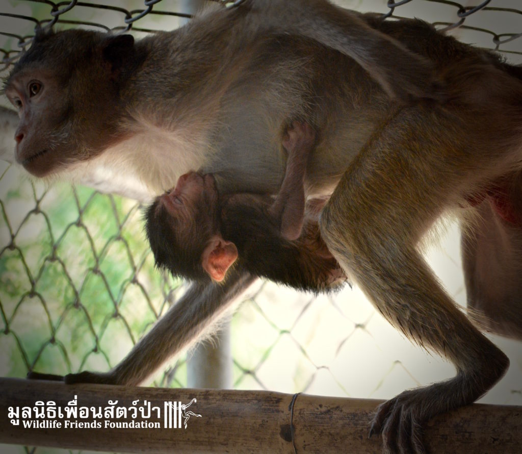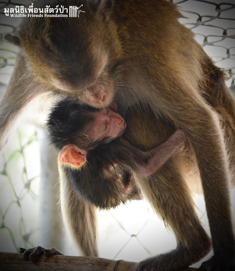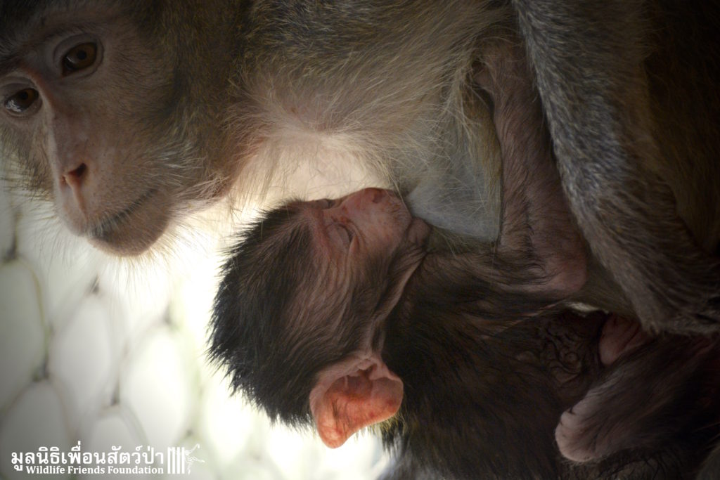 After spending almost 2 months at the WFFT Wildlife Hospital under intensive care and rehabilitation from our vet team she has made extraordinary improvements that none of us had foreseen, we have named her ‘Patti Harn’ (English: Miracle). Upon arrival Patti Harn could barely sit up and spent the first week being hand fed by the team. Over the following weeks she re-gained her much of her strength, and her ability to walk and climb began dramatically improving. To the astonishment of us all here at WFFT she has regained almost all of her strength and abilities to again enable her move around and climb. Further adding to our amazement a few days ago she gave birth to a healthy baby girl who we have named ‘Mali’ (English: Jasmine). Patti Harn is proving to be an exceptional mother, both her and Jasmine are doing well. We are hopeful that both mother and baby will be released back to the wild in the coming months, after all her family are probably wondering where she is. As with any young baby the first few weeks are the most challenging but so far so good for this special little duo. We will keep you posted.