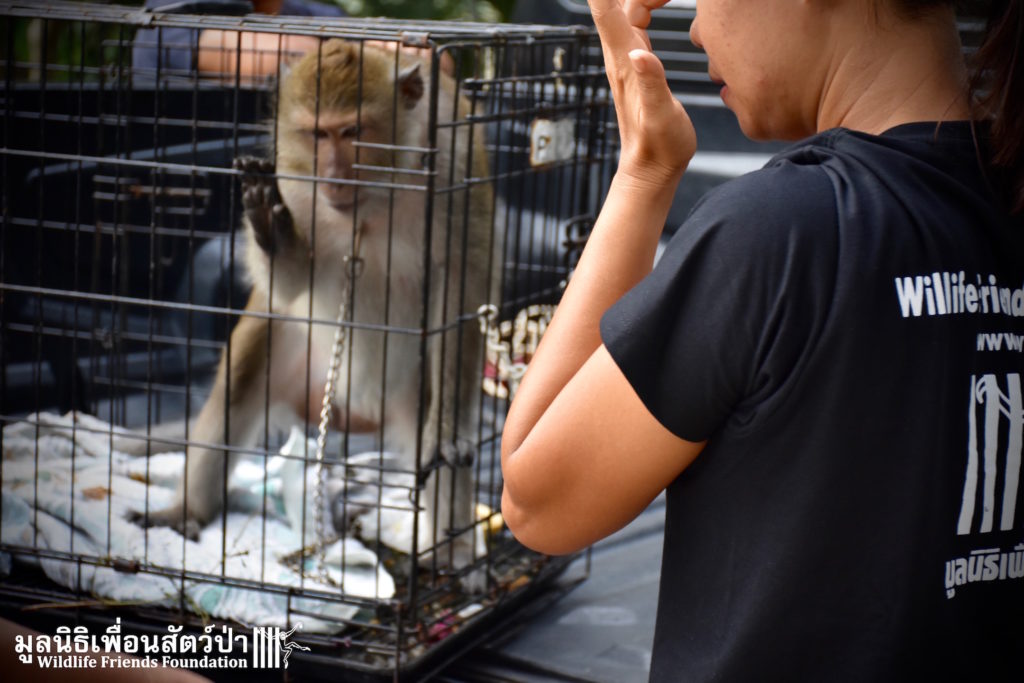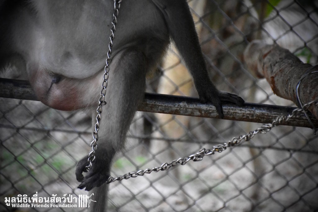 Warnorn the five-year-old male long-tailed macaque (Macaca fascicularis) is free from chains after spending the first five years of his life with humans after his mother was butchered and eaten. Warnorn was found in March 2011 on an island in southern Thailand when he was a young baby. We are told that an alcoholic man killed Warnorn’s mother and ate her. Warnorn was taken into the care of a local family after they found that the man that had killed his mother was keeping him. As Warnorn grew he became aggressive and needed to be kept locked in a cage, this further reduced his quality of life. He recently escaped from his cage, then attacked and injured someone. It is not uncommon for strong frustrated wild animals to retaliate after years in captivity. The people in the village near to where Warnorn was being kept threatened to release into the forest or kill him. His owners than contacted us to help before irresponsible actions were taken.