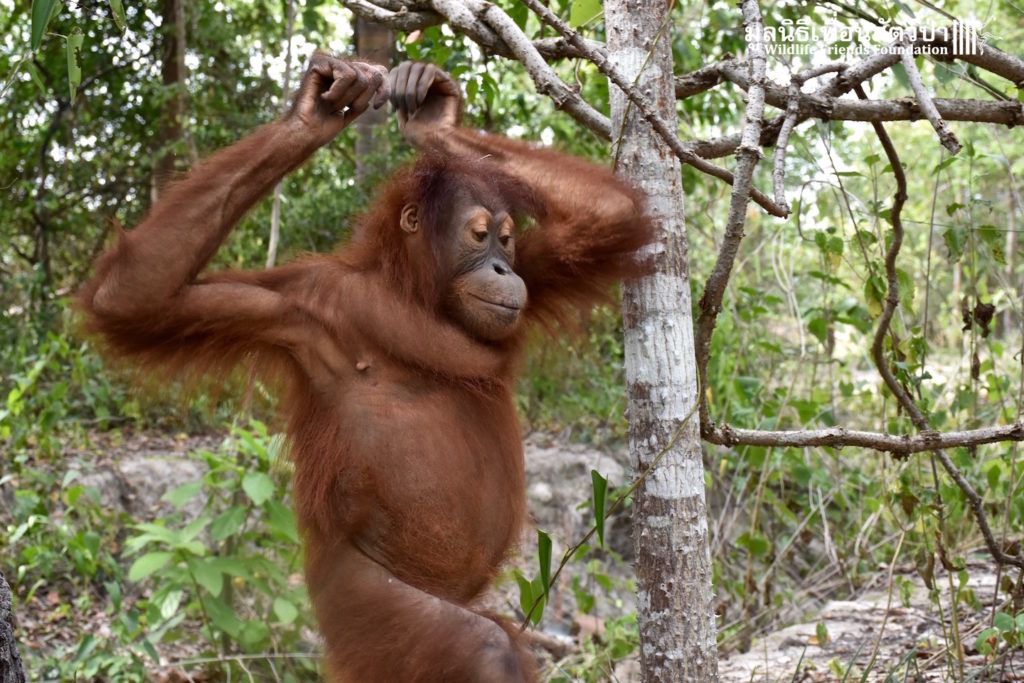 In preparation for this day which is on Friday, here are some images of rescued orangutans, Maggie and Chico here at the WFFT Wildlife Rescue Centre, and their increasingly endangered wild cousins. Each day during their daily forest school sessions they are taken into the natural forests surrounding WFFT, climbing high up in the tree canopy, foraging for natural foods and even nest building are natural behaviors that are observed regularly.