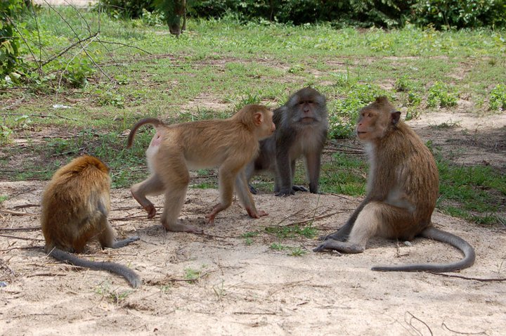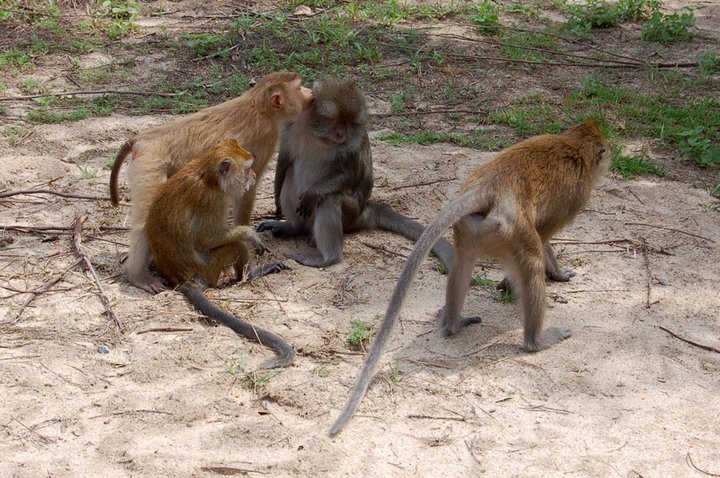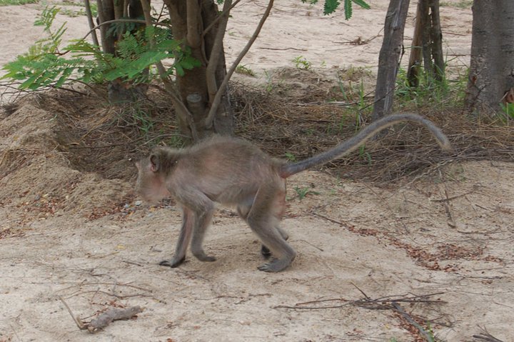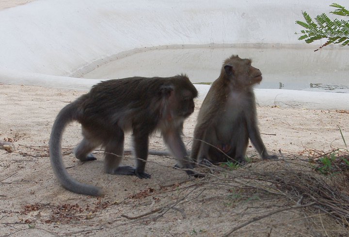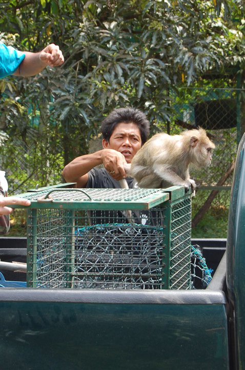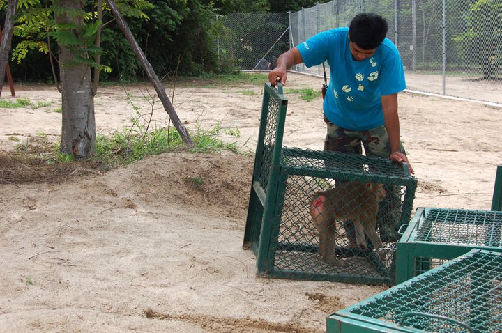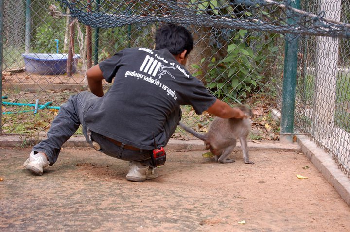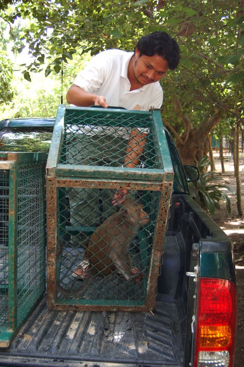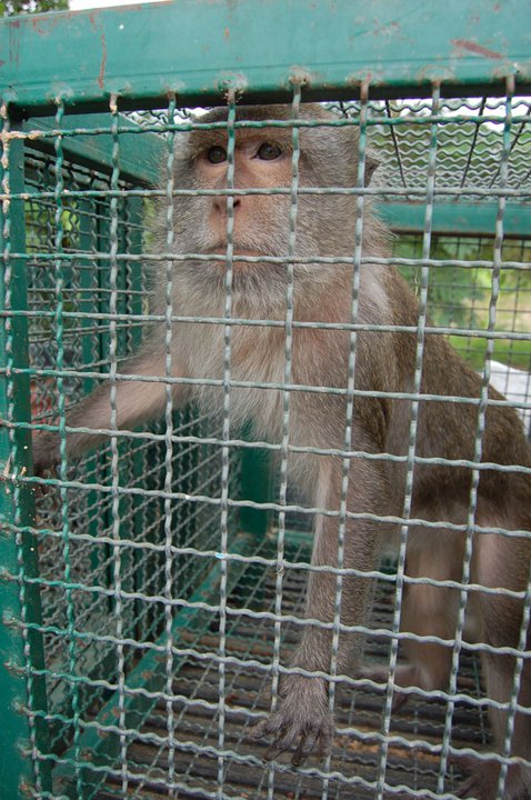 The next batch of macaques to move up to the field were Mocha (the only Pig-tail macaque to move), her best friend Thapet and Jojo, the only male to move, who is castrated. Thapet and Jojo got on particularly well. Jojo, who is slightly brain damaged and as such cannot always control his movements, is spending daytimes supervised at the new field, and nights back in his enclosure, as the excitement is quite a lot for him to take!