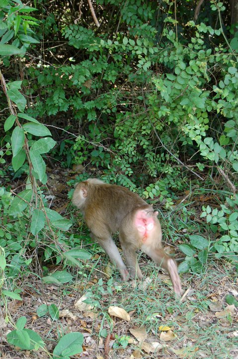Pocky, despite her stunted growth caused by years of growing in a small box, is one of the potential candidates for being head of the group. Shirley asserted herself straight away by chasing some of the younger macaques, but Pocky followed her around nipping at her tail and then playing innocent when Shirley turned around! The older ladies are keeping out of the power struggles though, and can mostly be found in the bushes or up trees keeping a look out.
