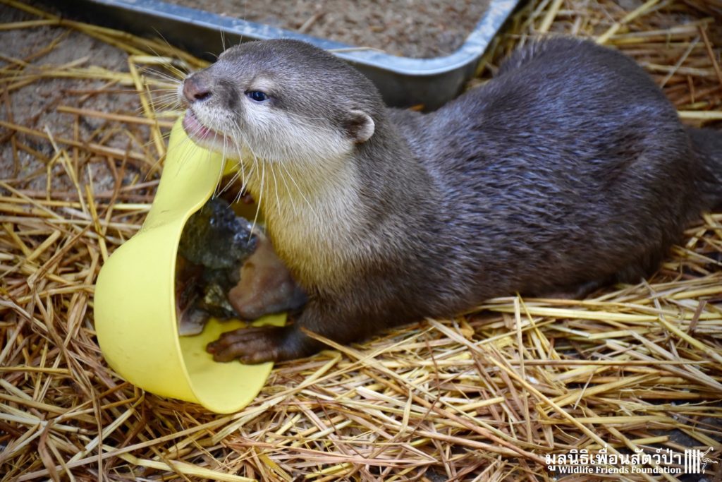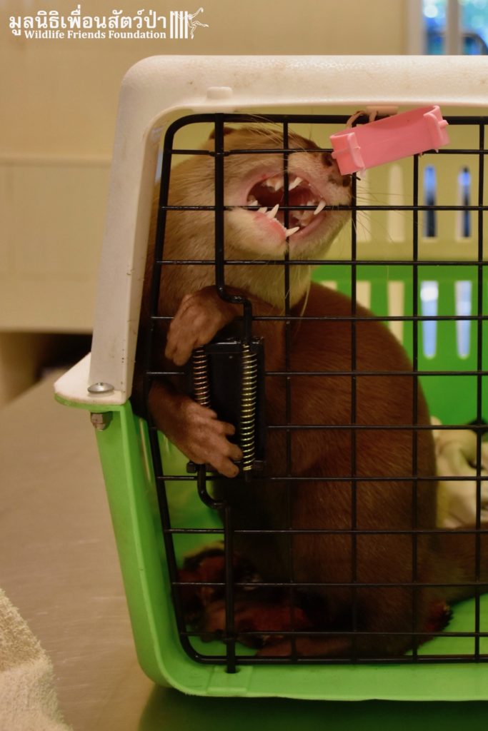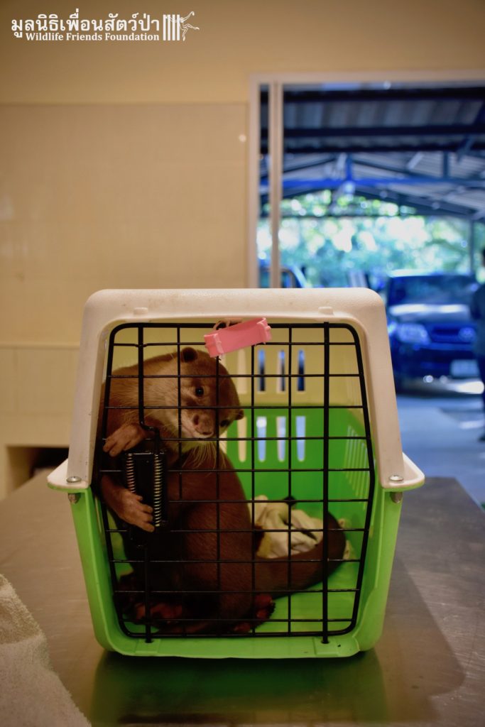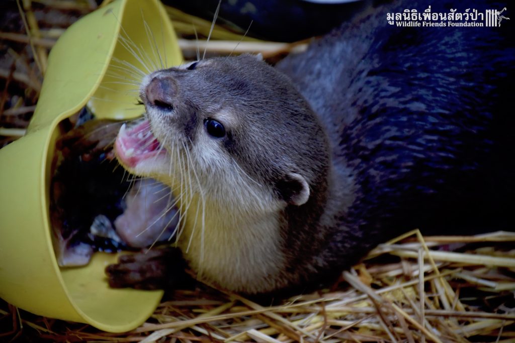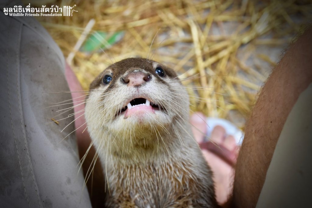 Meet ‘Jump’ the female oriental small-clawed otter (Aonyx cinereus) who was brought in a few days ago by some people that claimed they found her in a Bangkok suburb. We were told they found her running near a busy road ‘shouting’ for help (otters scream very loud when they are hungry), so they picked her up and called us for help, luckily we were able to help so they headed straight to the WFFT Wildlife Rescue Centre.