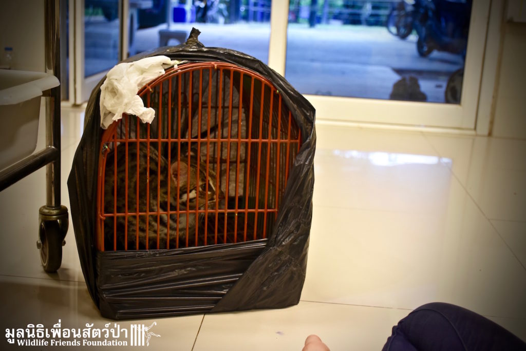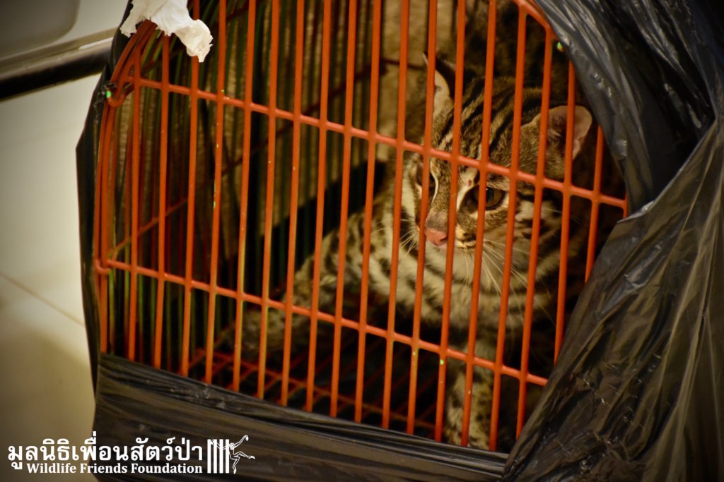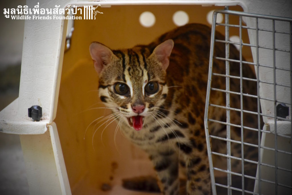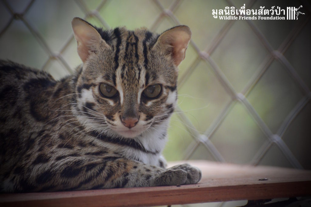 ‘Leonardo’ the leopard cat (Prionailurus bengalensis) arrived at the WFFT Rescue Centre a few days ago after his current ‘owner’ decided she was unable to care for him. He had been kept as a pet for most of his short 3-year life, and had many owners during this time. As he got older he became more aggressive, and his owner could no longer handle or play with him. He was then left in a cage in her garden until she contacted us for help. It is likely that this little guy was illegally poached from the wild and illegally sold as a pet.