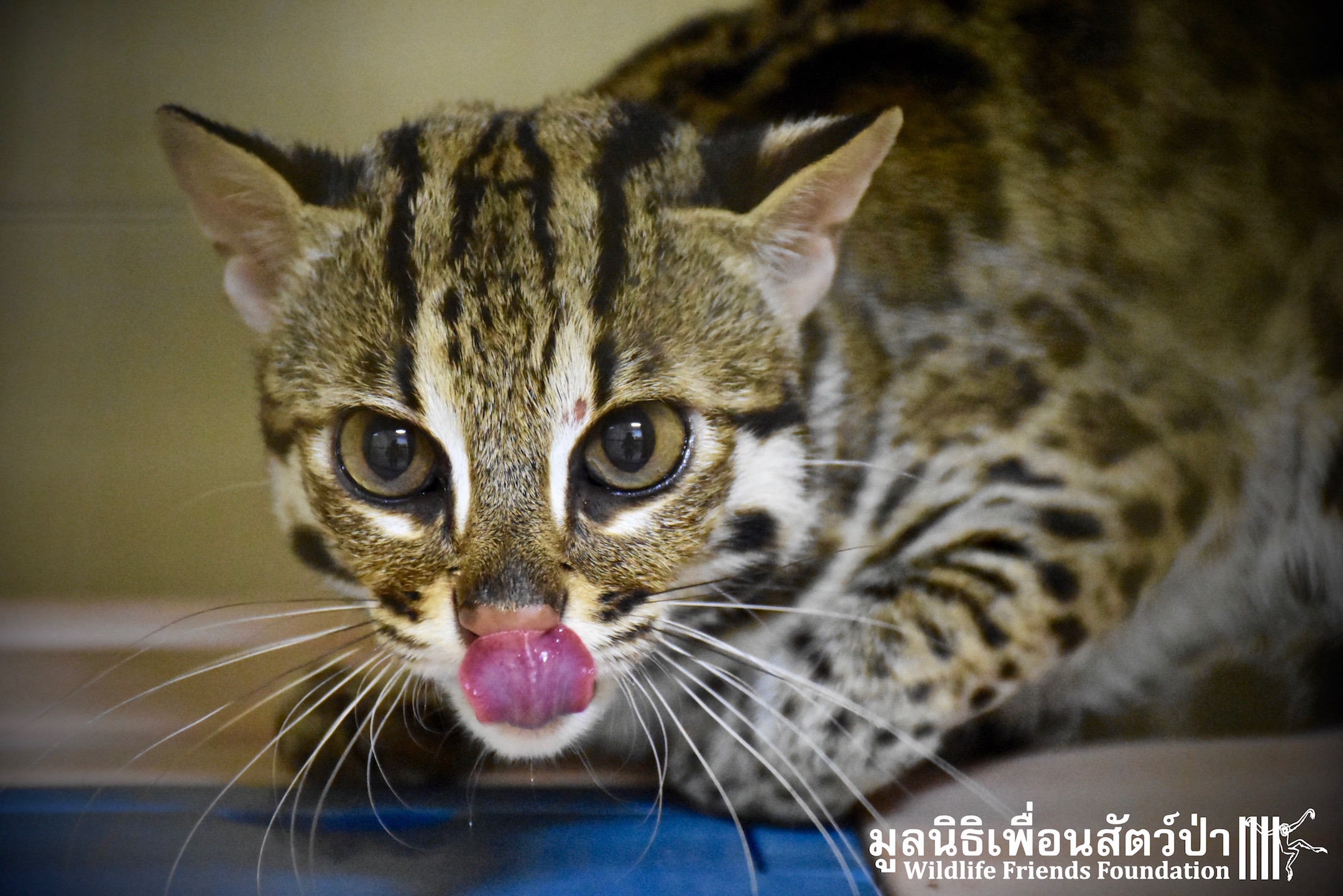 ‘Leonardo’ the leopard cat (Prionailurus bengalensis) arrived at the WFFT Rescue Centre a few days ago after his current ‘owner’ decided she was unable to care for him. He had been kept as a pet for most of his short 3-year life, and had many owners during this time. As he got older he became more aggressive, and his owner could no longer handle or play with him. He was then left in a cage in her garden until she contacted us for help. It is likely that this little guy was illegally poached from the wild and illegally sold as a pet.