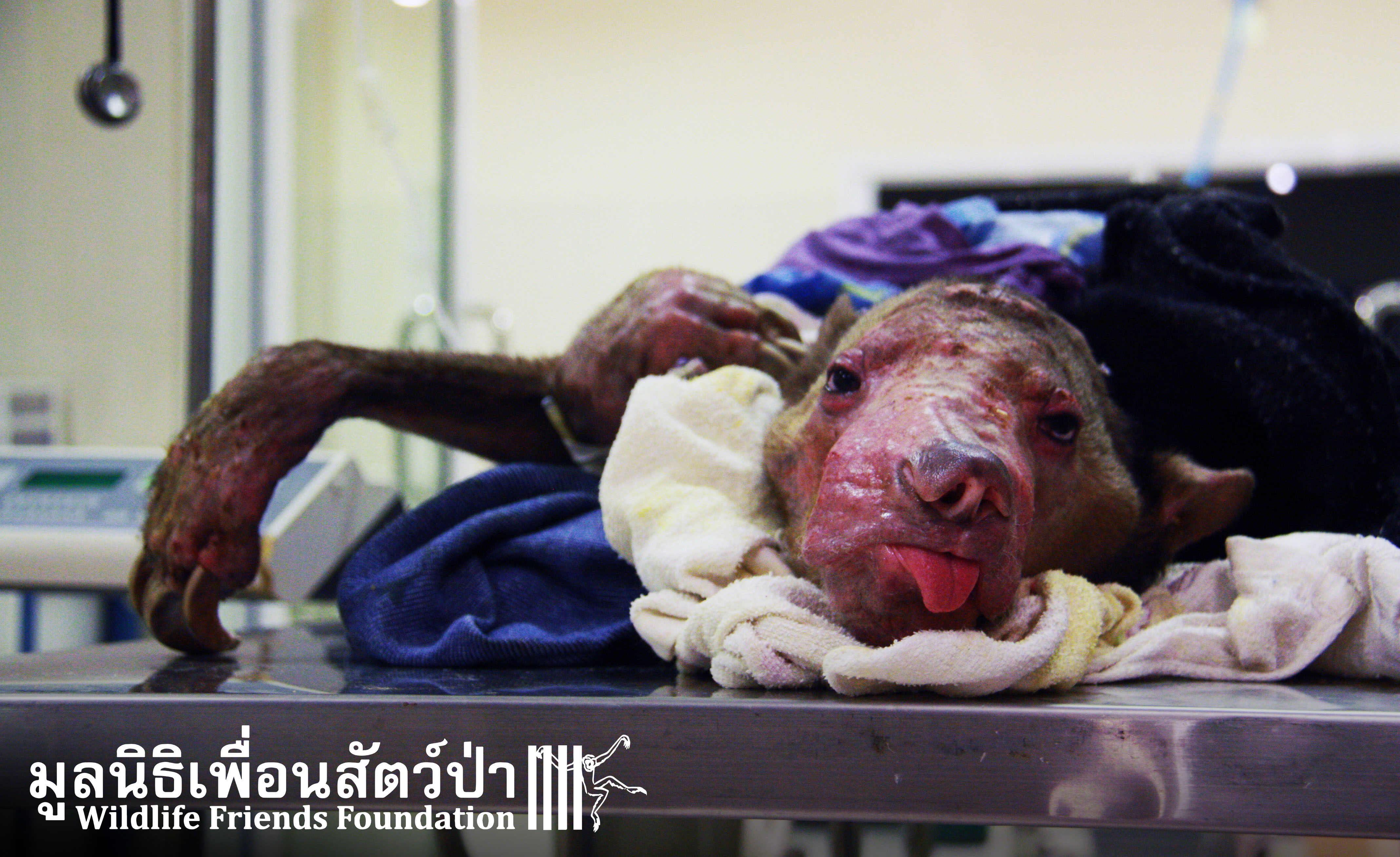 “Kwan” the little bear we rescued yesterday has been fighting for her life the last 24 hours. We have done all we could to keep her with us. She went down three times today, stopped breathing, but we got her back up again, hoping and fighting for the best.