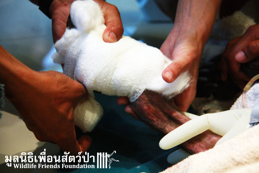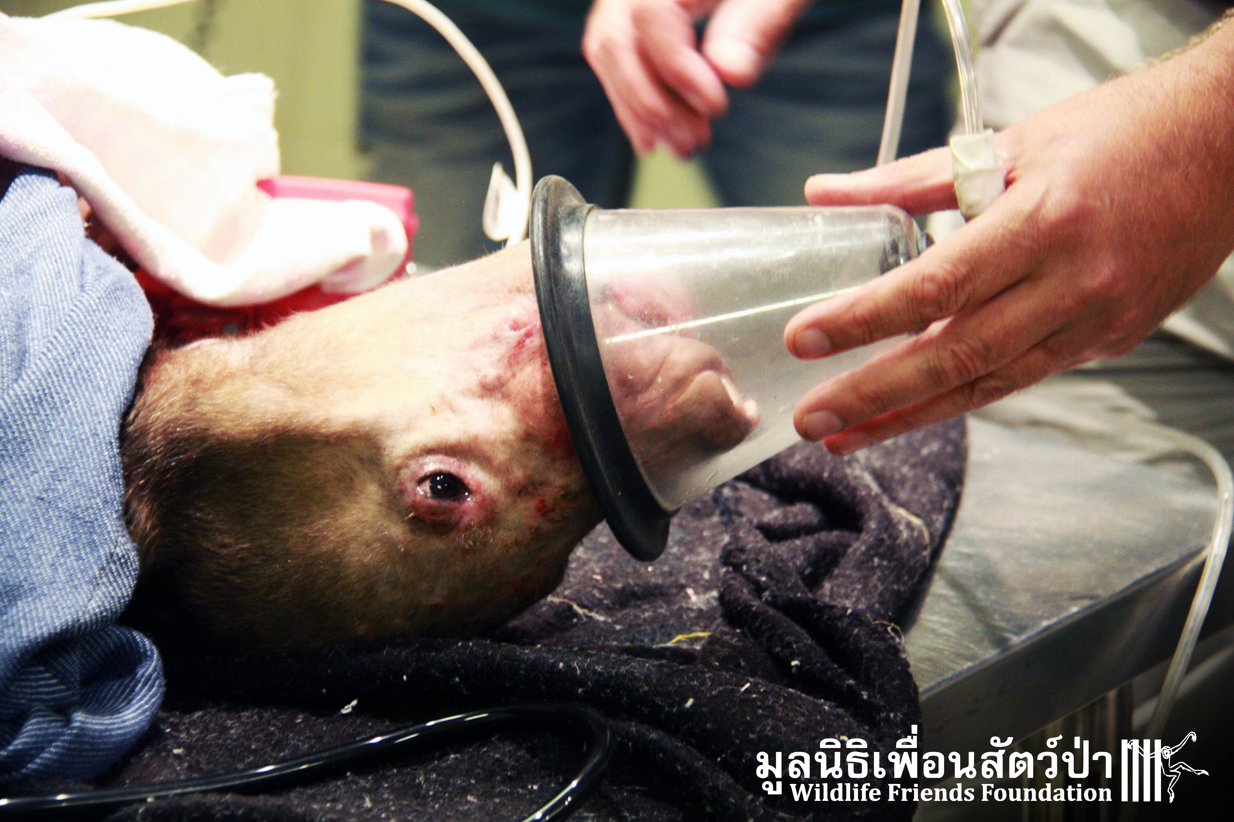 This picture is of Kwan earlier today after we got her back on her feet again. Kwan passed away at 14:45 Thailand time. We are all devastated of this loss, wish we had better news.