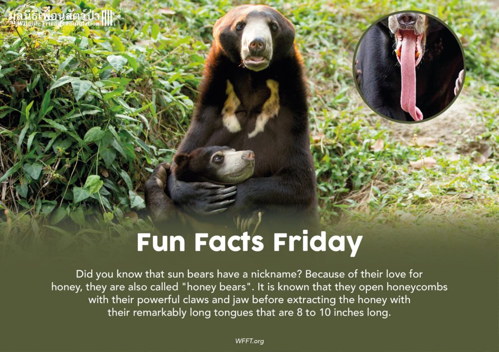 ทราบไหมครับว่าหมีหมามีอีกหนึ่งฉายาที่เรียกกันนั้นก็คือ “ หมีน้ำผึ้ง “ นั่นเพราะว่าอาหารที่โปรดปรานที่สุดของหมีหมาคือน้ำผึ้งเเละรังผึ้งนั่นเอง โดยพวกมันจะใช้เล็บเเละกรามที่ความเเข็งเเรงมากกัดเเซะตามรังผึ้งก่อนที่จะใช้ลิ้นที่มีขนาดยาวกว่า 8 ถึง 10 นิ้วสกัดน้ำผึ้งออกมา