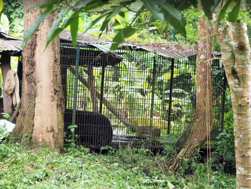 An Asiatic Black bear called “Kaew” made headline news early August 2017 after she attacked a drunk man who jumped into the cement pit she was kept in at a temple with over 100 wild pigs. “Kaew” was kept in this pit as a pet, but had grown into a very large overweight bear and was no longer allowed to roam around free. The drunk man had been teasing the bear for almost an hour and “Kaew” had enough of him and attacked him, bit him and dragged him into her night den. The man has survived the attack and is recovering from the ordeal, but Kaew has now been moved to a government wildlife breeding centre and is confined to a small cage without a chance to a better home without our help.