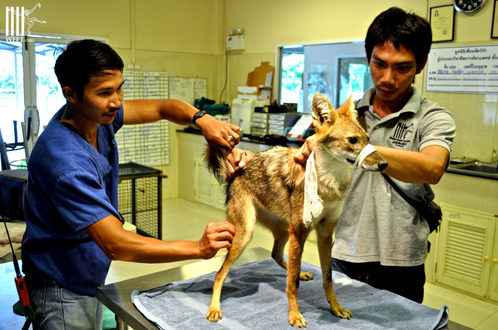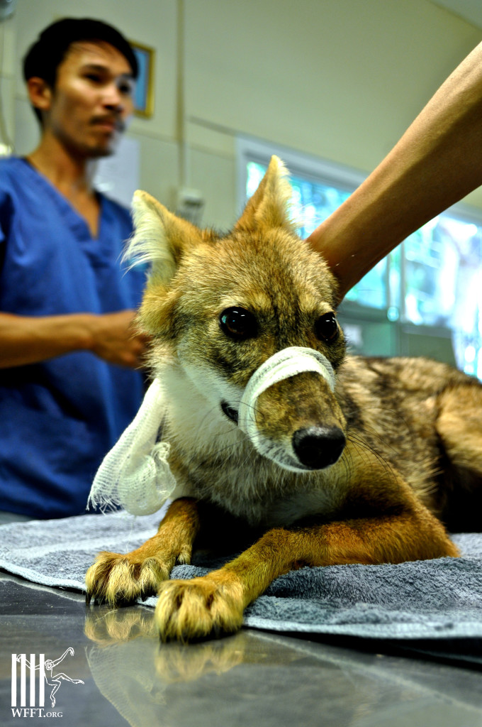 This Asiatic Golden Jackal was kept in Bangkok for the first 9 months of its life, until the owner started to get suspicious, he started to get aggressive to some people and the looks were different to other dogs.