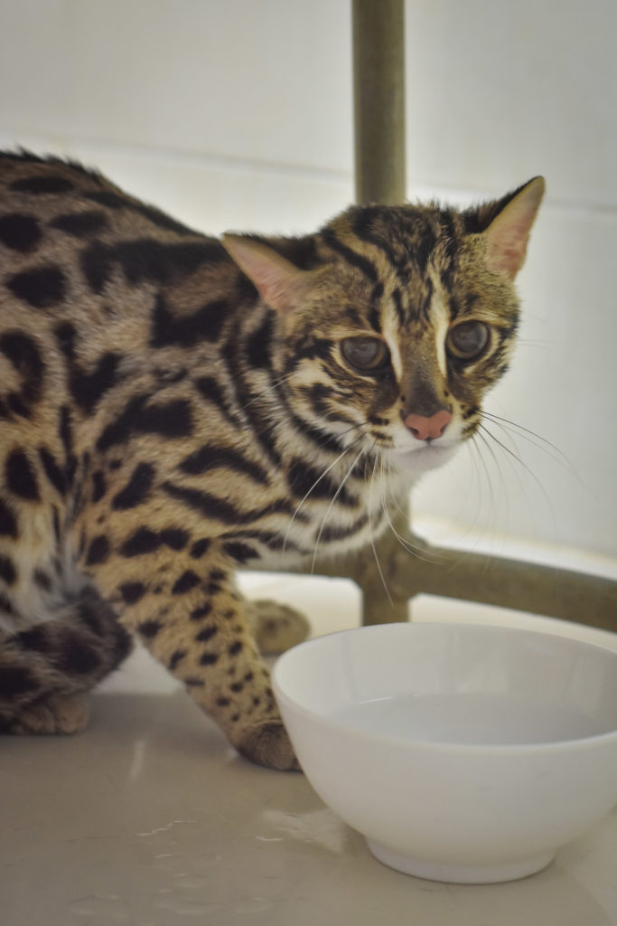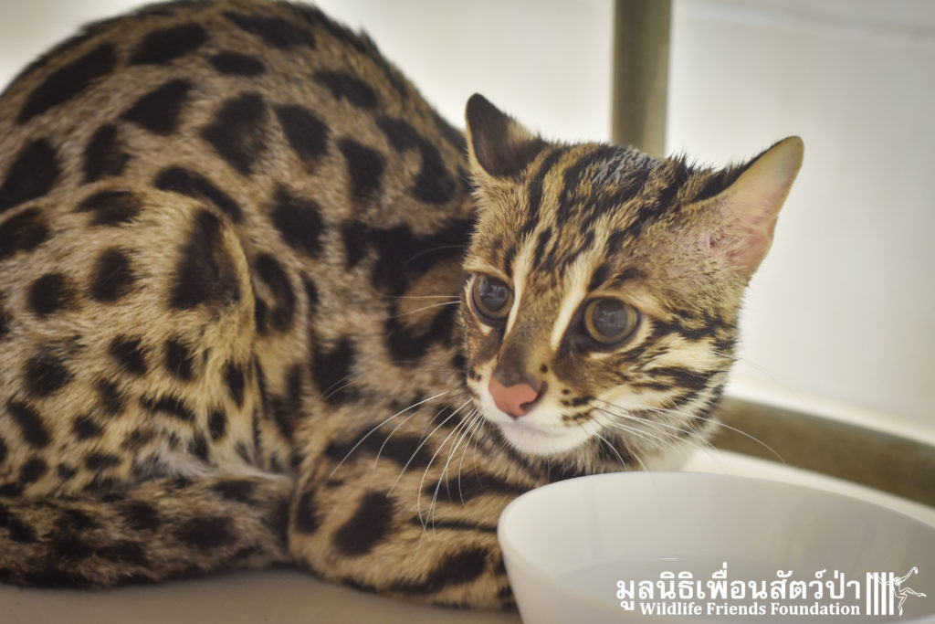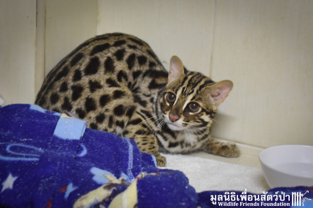 We have determined that Ging-go is not a Bengal cat after all. He will be housed at WFFT in a larger more suitable environment and we hope in the future he can be with his own species and may be rehabilitated and released back to the wild. For now, he is settling in to his new life at WFFT under close observation of our vet team. Keep Wildlife Wild and Not as Pets.