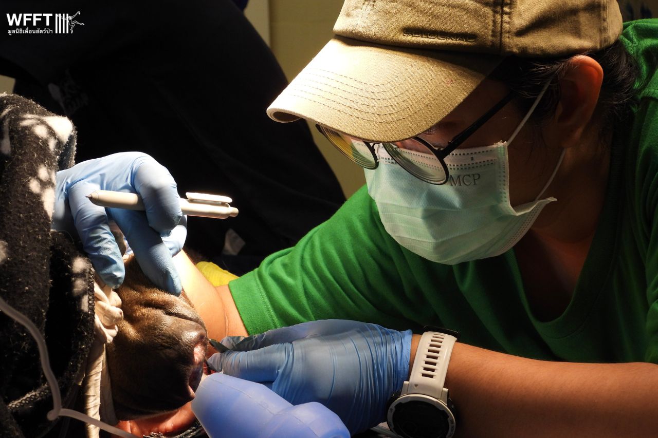 Recently, Pee Mai had a health check. As an aging bear, he needed a bit of dental work and a small wound patched up.