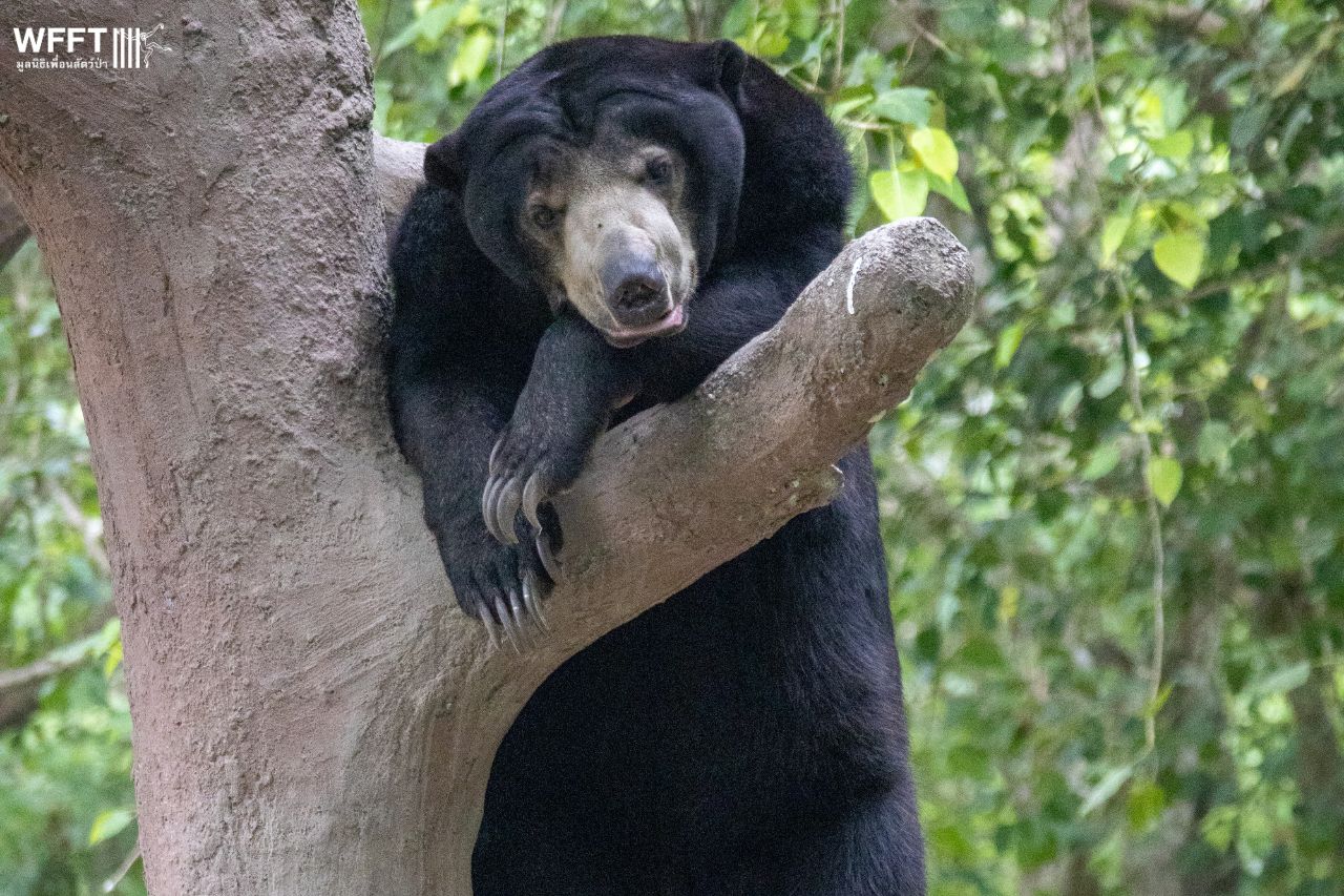 Pee Mai lives in a group (or sleuth) of eight rescued bears from two different species. As the big boy in charge, he’s quite the charmer—all the ladies love him!