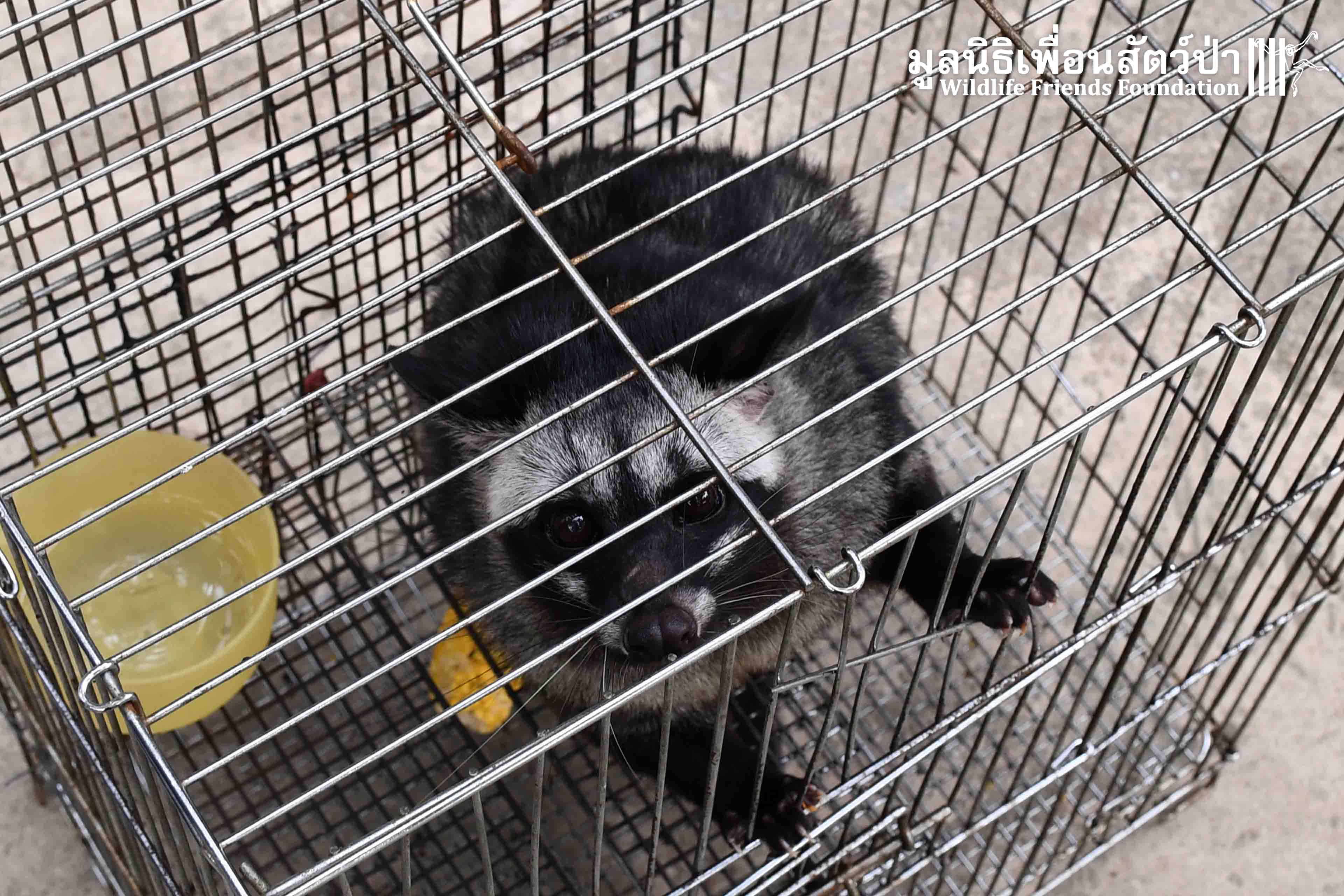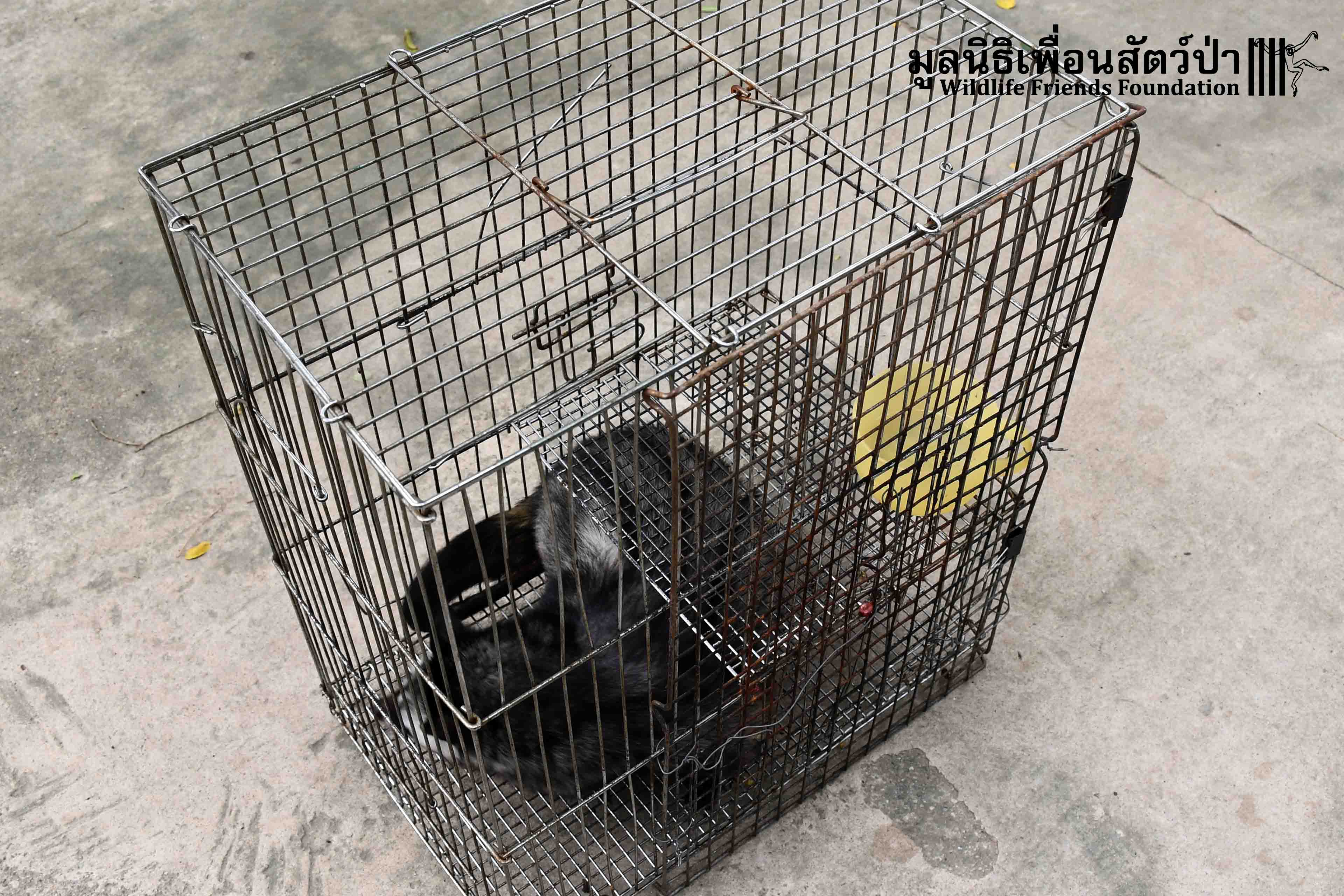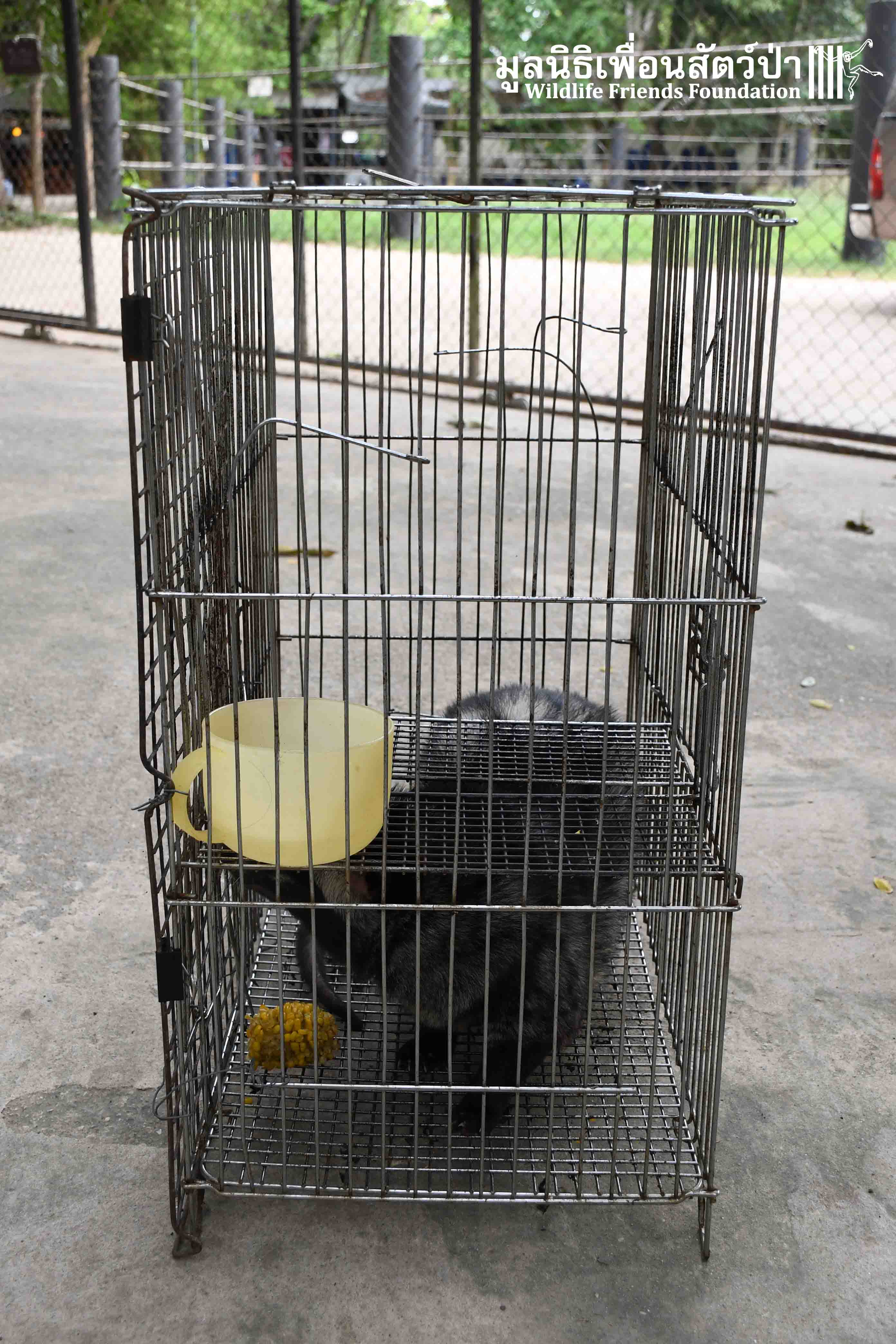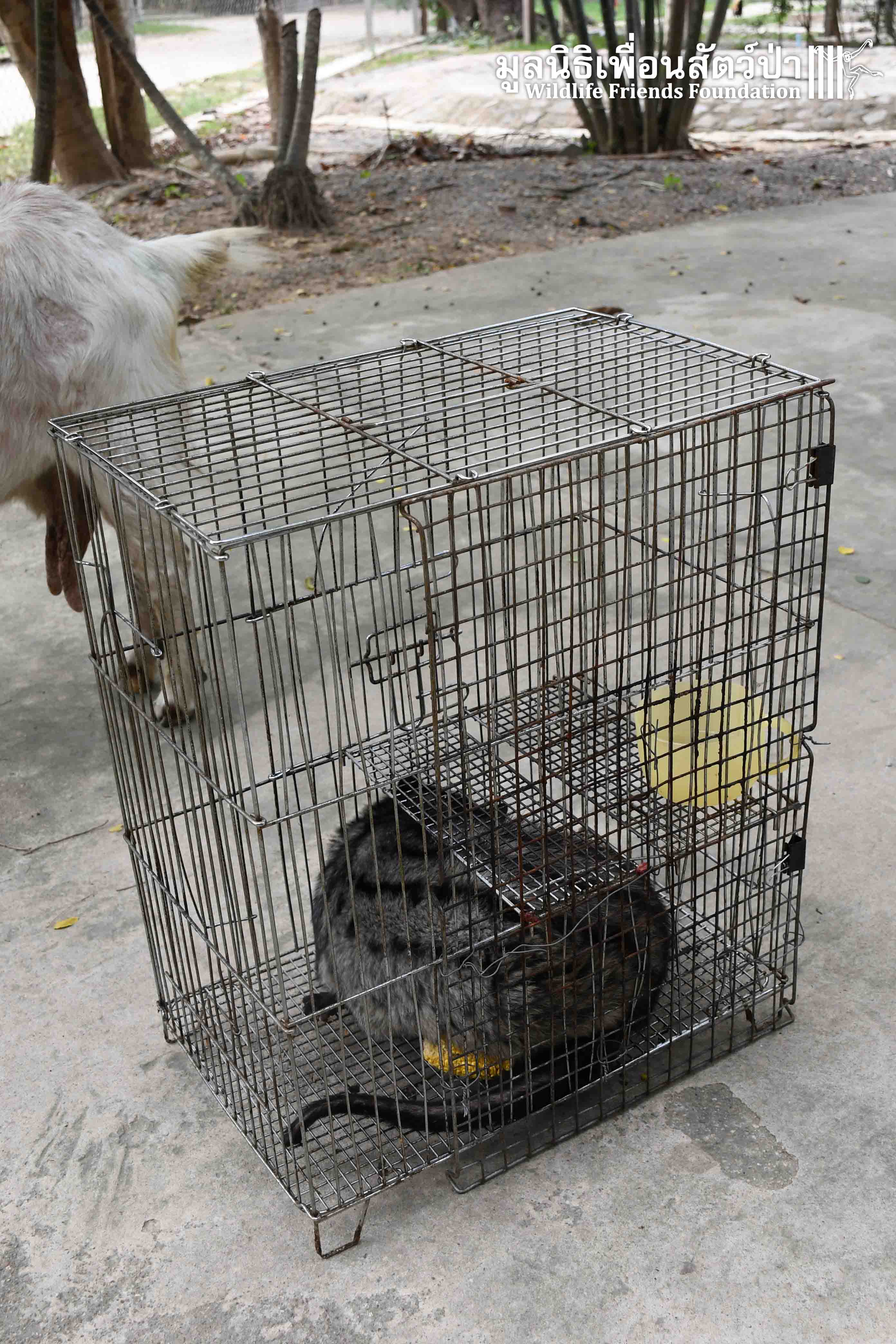 ‘Baiboon’, a chubby Asian Palm Civet (Paradoxurus hermaphroditus), was kept in a small cage with little space to move for most of his captive life. His irresponsible owner decided they could not keep Baiboon any longer and decided to abandon him. Luckily a concerned local found Baiboon and contacted WFFT for help.