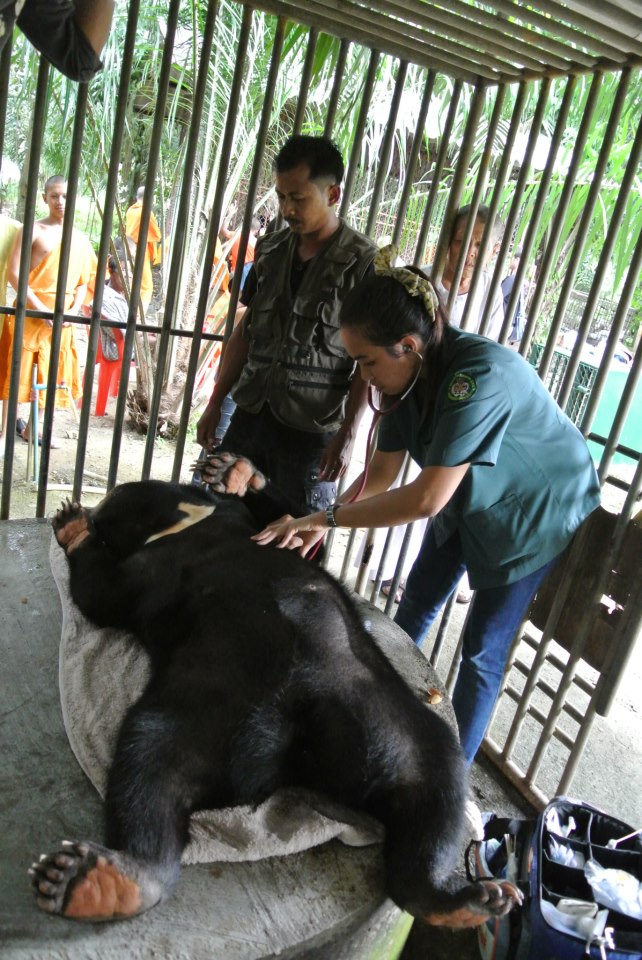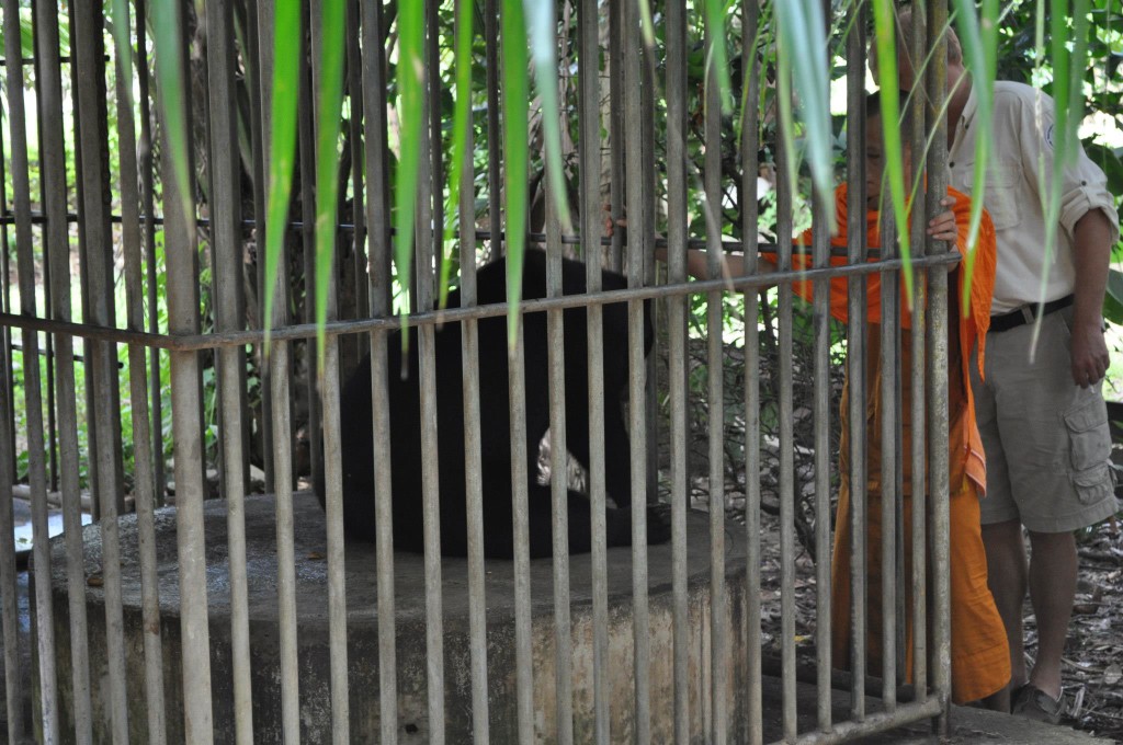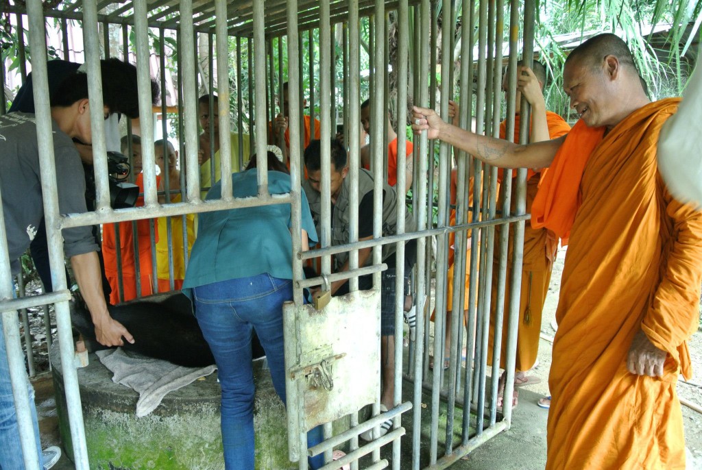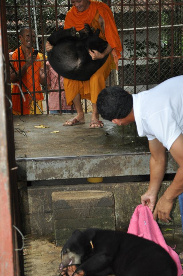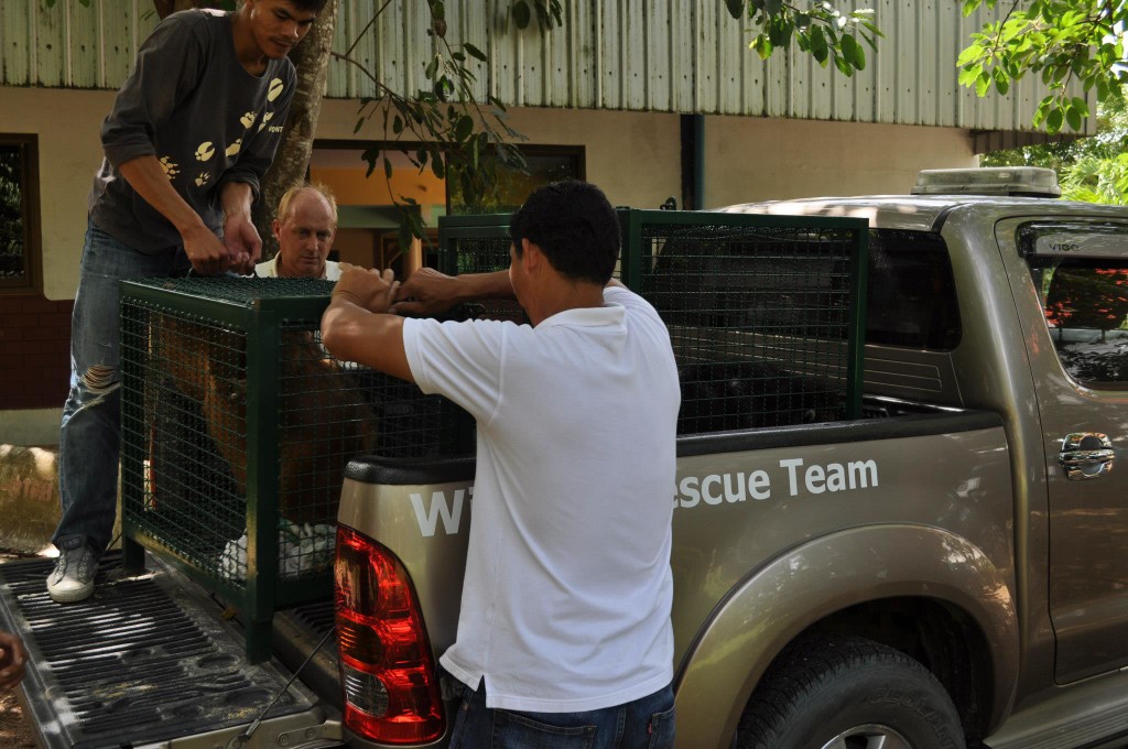 We received a call from a temple in Southern Thailand last week with an urgent call for help. At this temple a few wild animals were kept given up by people in the neighborhood, but the enclosures were not strong enough to keep the animals safe inside. Two of the bears kept on escaping from the cage, destroying property of people nearby. To make sure the animals would not escape again and even pose a threat to children in the neighborhood the abbot of this temple has asked WFFT to move the animals to a suitable environment at WFFT wildlife rescue center.