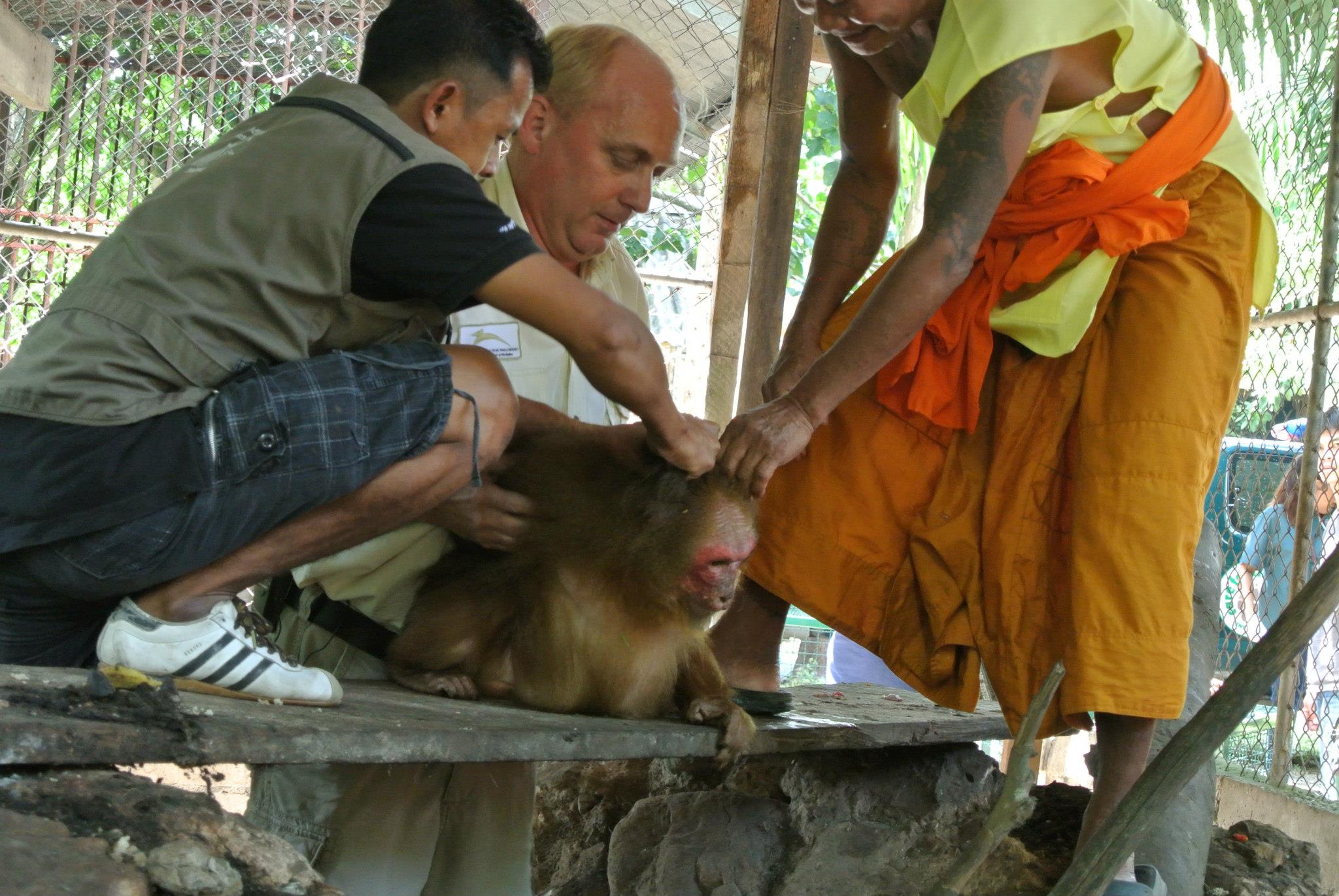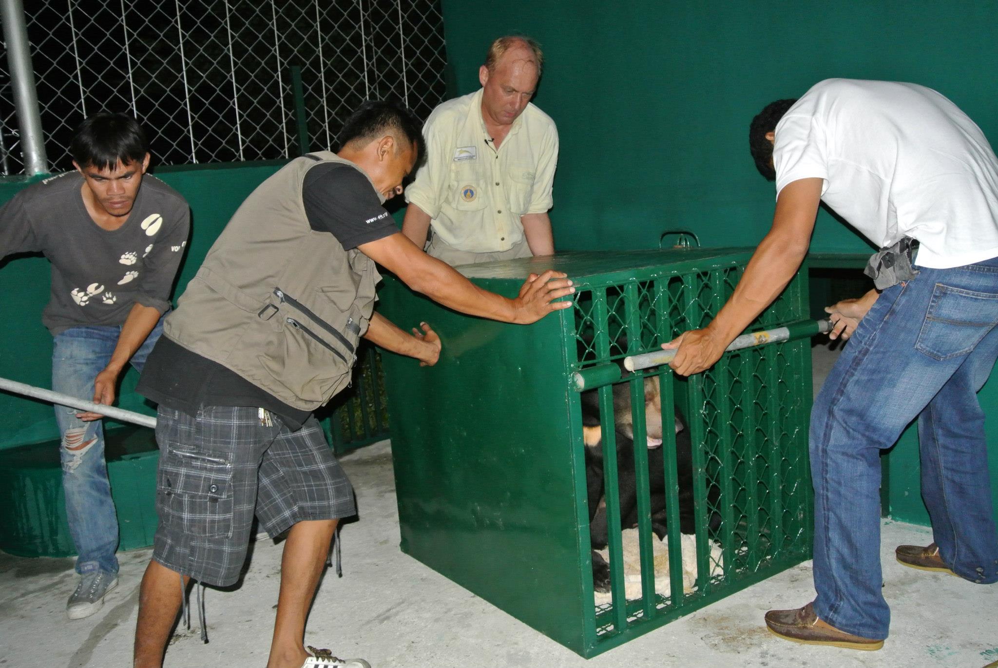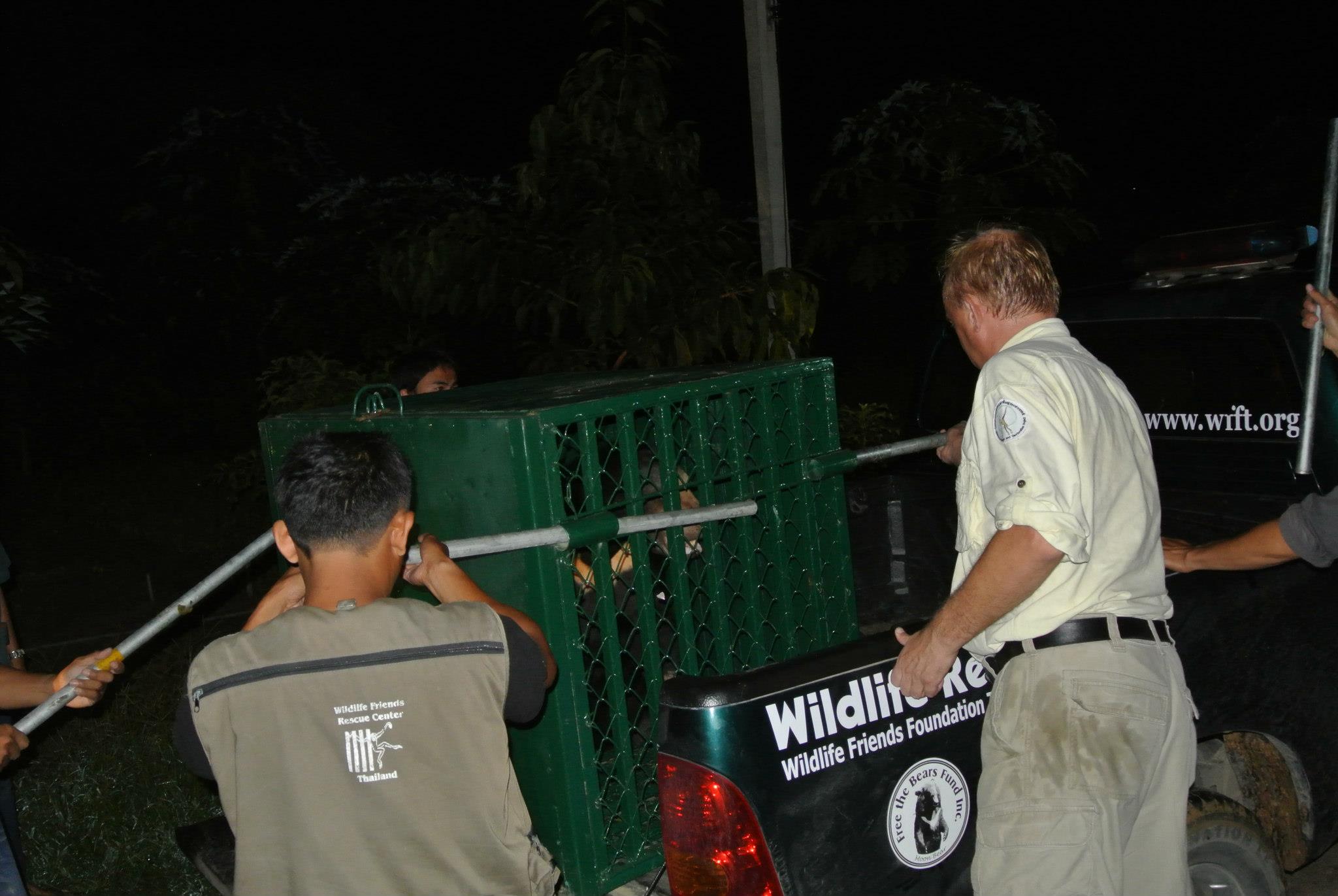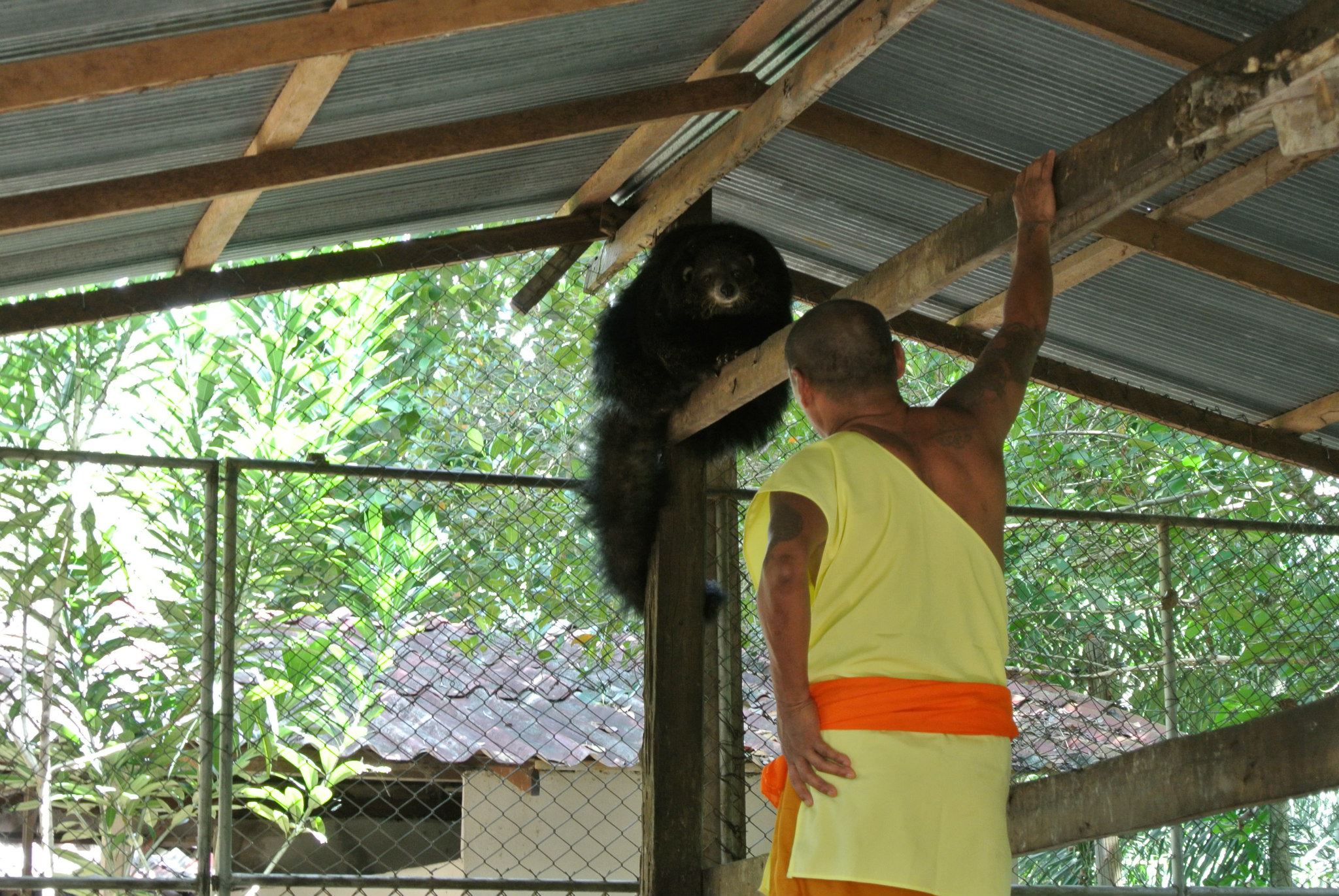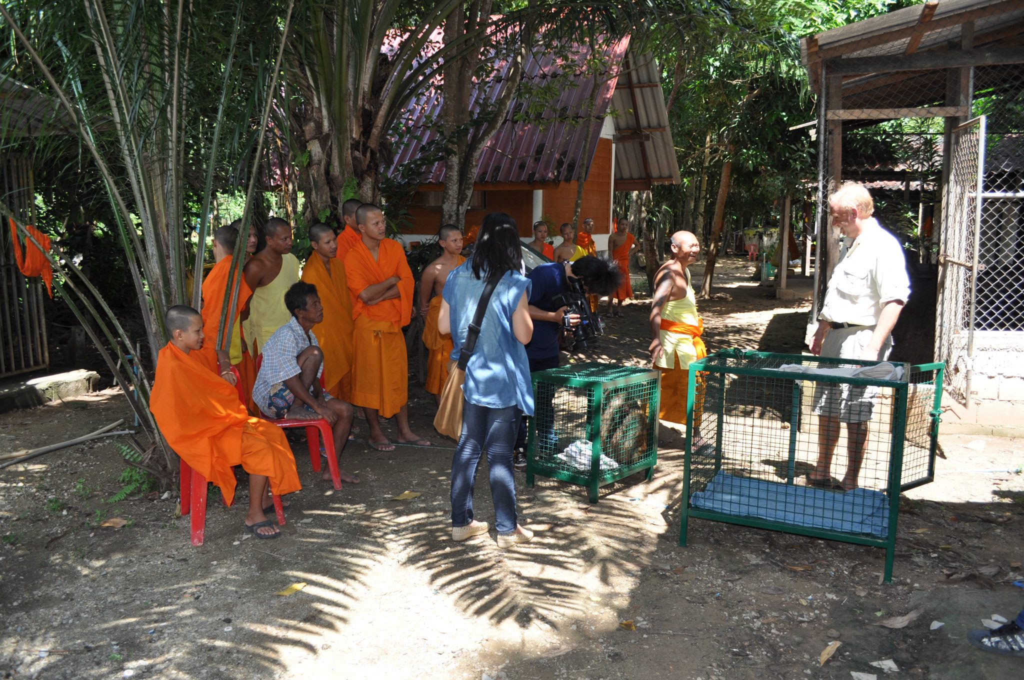We received a call from a temple in Southern Thailand last week with an urgent call for help. At this temple a few wild animals were kept given up by people in the neighborhood, but the enclosures were not strong enough to keep the animals safe inside. Two of the bears kept on escaping from the cage, destroying property of people nearby. To make sure the animals would not escape again and even pose a threat to children in the neighborhood the abbot of this temple has asked WFFT to move the animals to a suitable environment at WFFT wildlife rescue center.