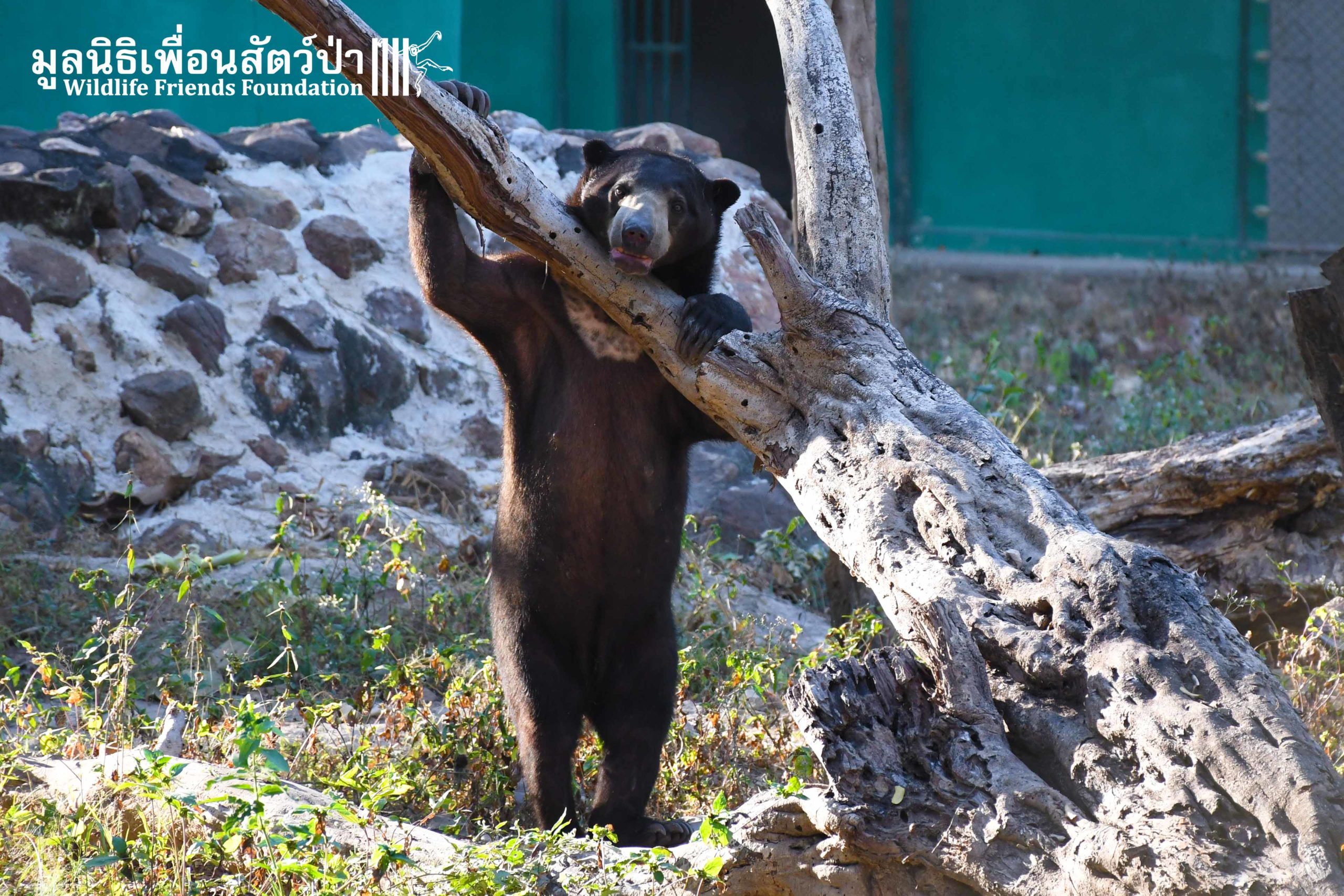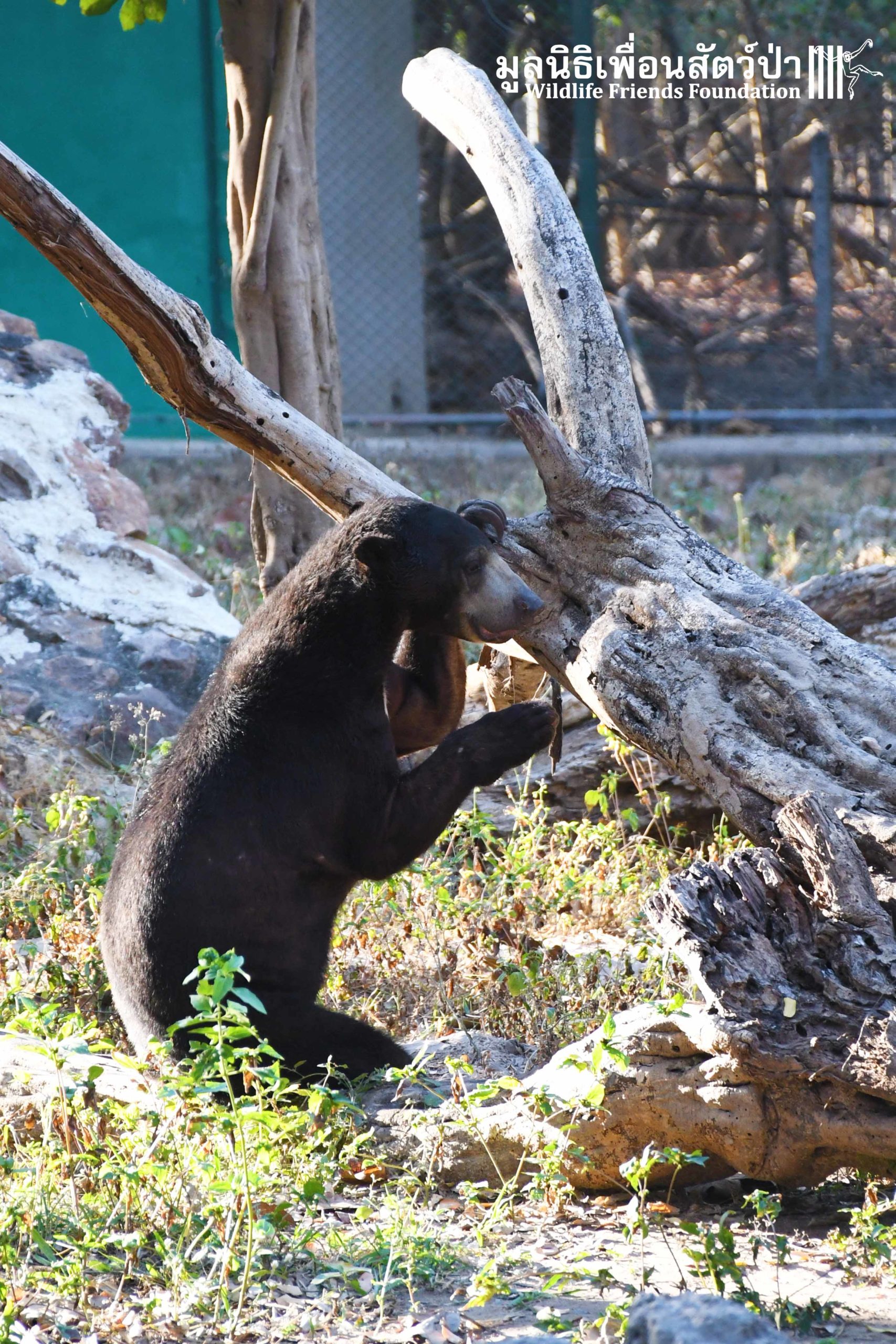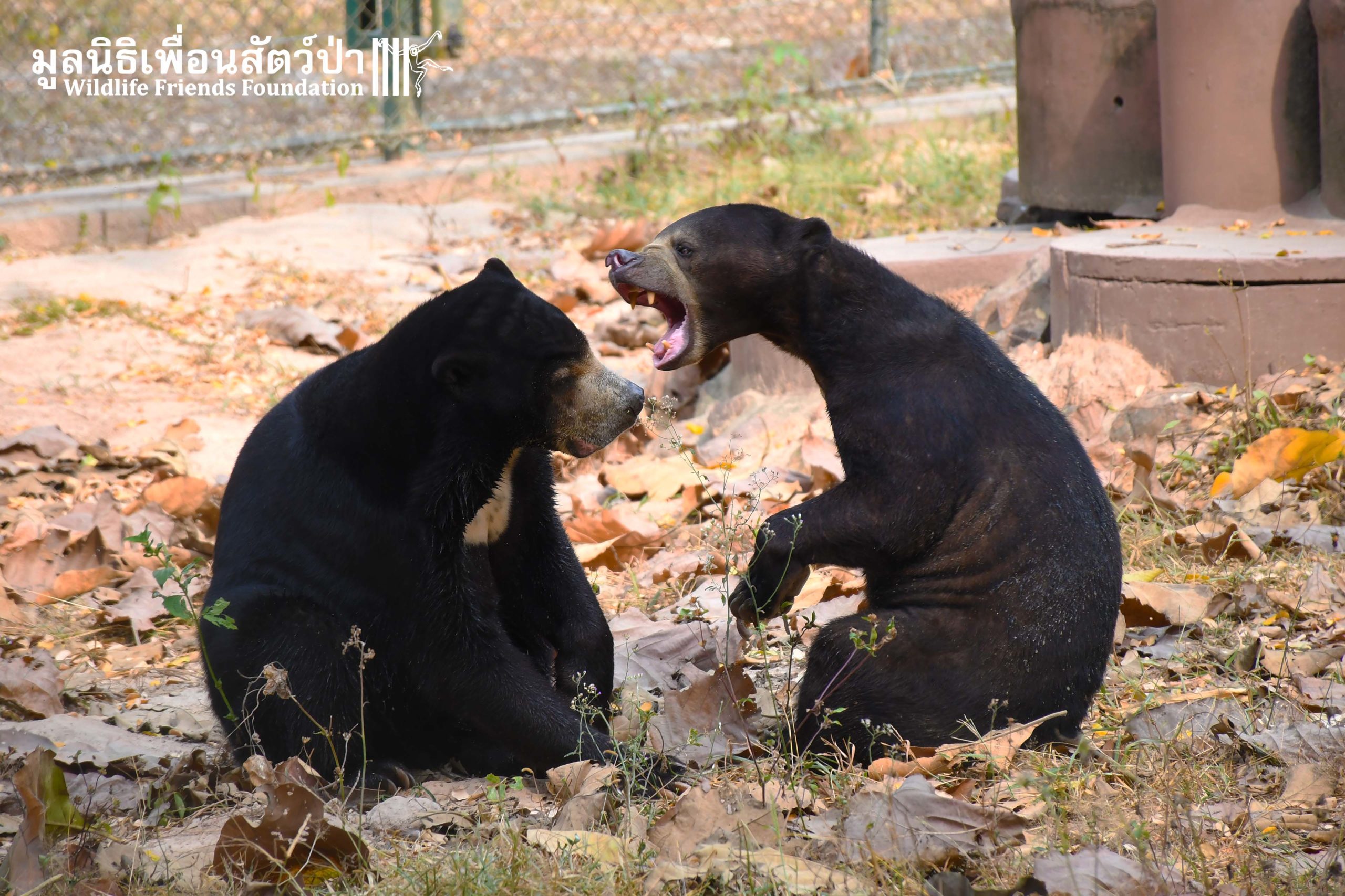 Back in 2009, we rescued a young male Malayan Sun Bear named “Dodo” from a very small filthy cage at a pig farm in Ratchaburi. After he settled to his new life at WFFT, we introduced him to another recently rescued bear, Deena. Deena was rescued in 2010, she was found being kept in a tiny 3m x 3m cage behind a house in Southern Thailand.