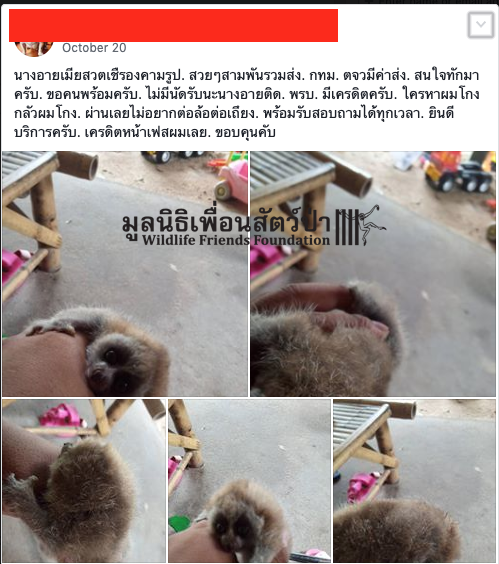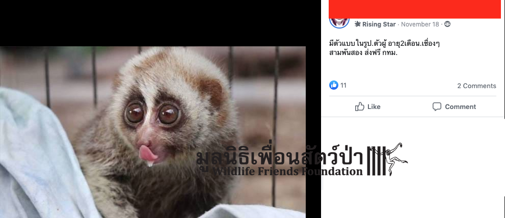 Each week our Illegal Wildlife Trade Investigation Team finds numerous loris illegally sold on social media platforms such as Facebook as seen in the screen shots including in the album.