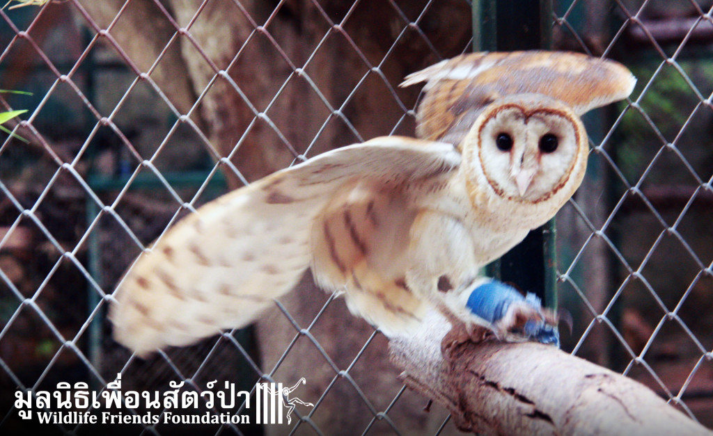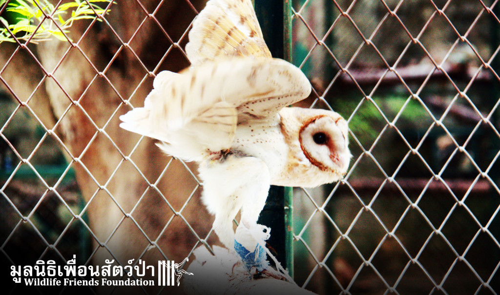 “Barney” the owl was rescued by the WFFT wildlife rescue team after he was hit by a car and found by villagers along the road. With a broken wing and a broken leg he needed long-term care, and now after weeks of treatment he is almost ready to go back to the wild. He is spreading his wings again and soon his leg will be free of the cast.