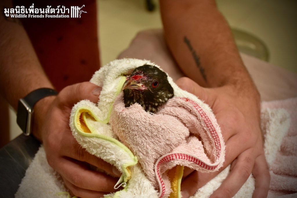 Meet ‘Coaly’ the Asian koel (Eudynamys scolopaceus malayana), he was brought into the Wildlife Friends Foundation Wildlife Thailand Rescue Centre last week after the lady that had ‘rescued’ him, as a very small chick had decided she could not provide him with proper care. After spending the first months of his very short life in a small unsuitable bird cage he has sustained various injuries to wing and tail feathers.