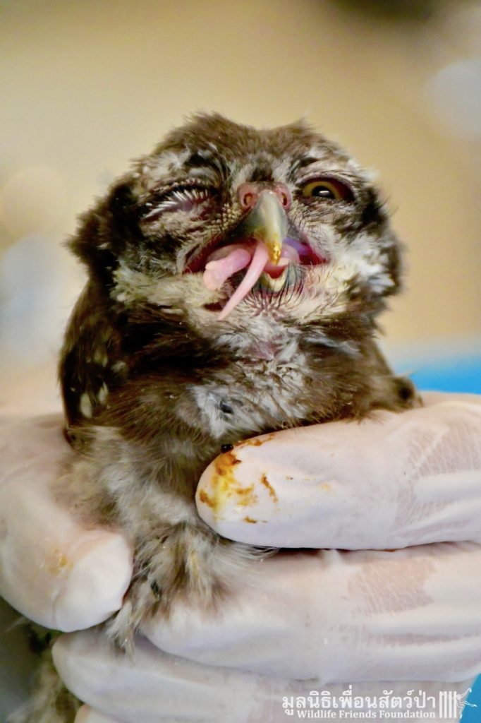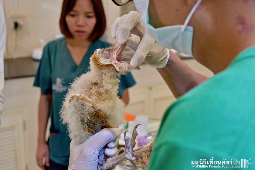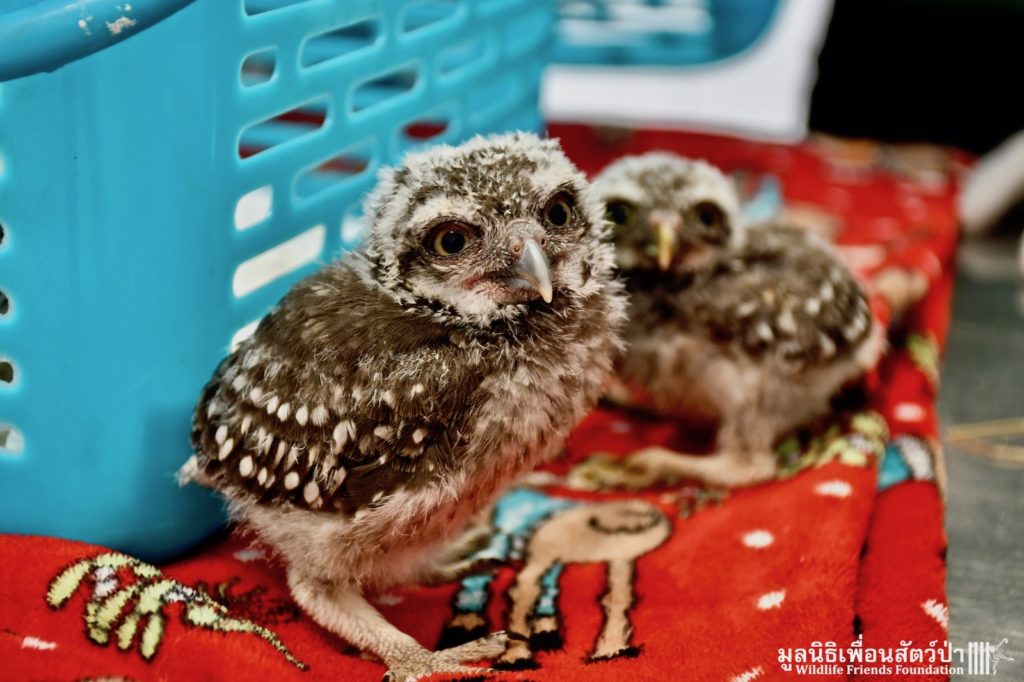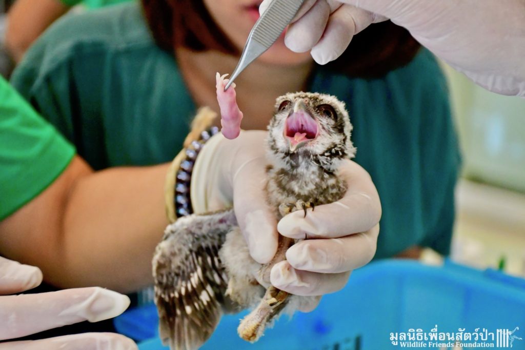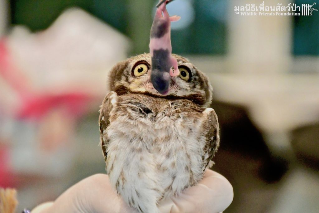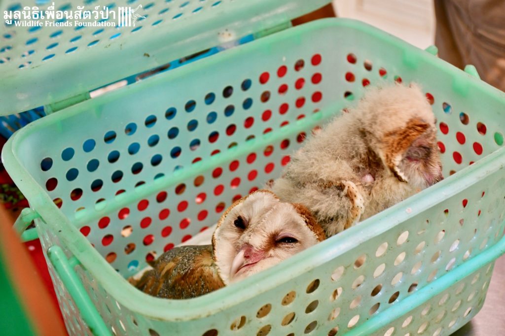 There have been many wildfires during this dry season in Thailand. These fires have been pushing wildlife out of their habitats and into human areas. This week we took in several rescues consisting of spotted, barn, and collared scops owls.