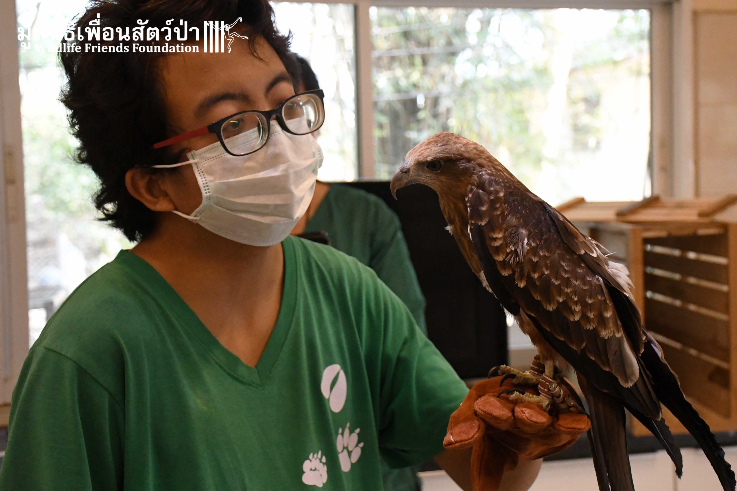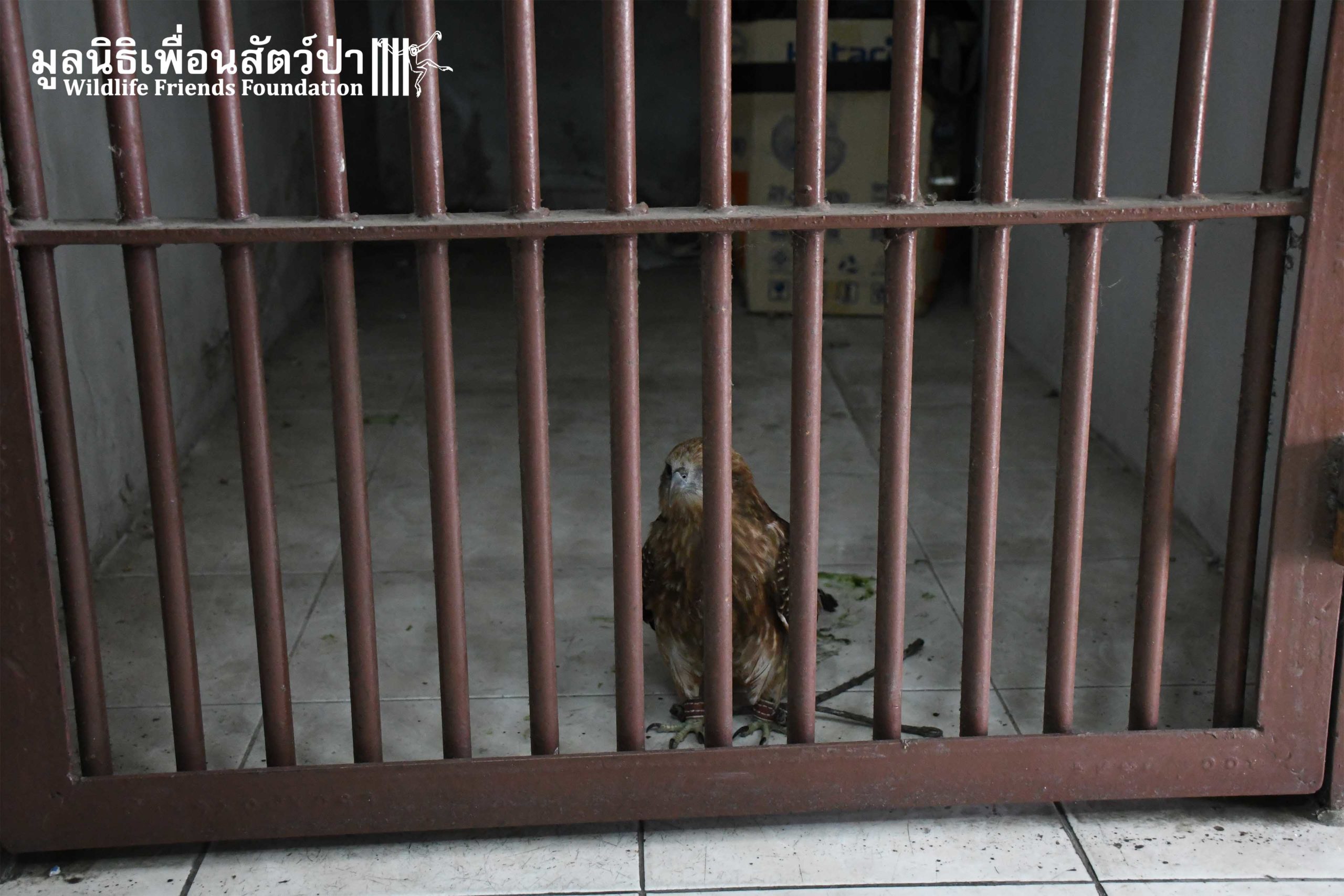 เมื่อไปถึงจึงพบว่าเจ้าเหยี่ยวถูกกุมตัวอยู่ห้องขังพร้อมส่งมอบให้กับมูลนิธิฯ จากการตรวจสุขภาพเบื้องต้นเจ้าเหยี่ยวมีสุขภาพที่เเข็งเเรงดีเเละคุ้นเคยกับคนมาก คาดว่าเจ้าเหยี่ยวน่าจะเป็นสัตว์เลี้ยงที่หนีออกมาหรือถูกปล่อยโดยเจ้าของ ขณะนี้ได้จับคู่ให้อยู่รวมกันกับ “ไค้” เหยี่ยวเเดง ที่ถูกช่วยเหลือไว้เมื่อสัปดาห์ก่อน (อ่านเรื่องของ”ไค้”ได้ที่ https://bit.ly/30GJxpC)