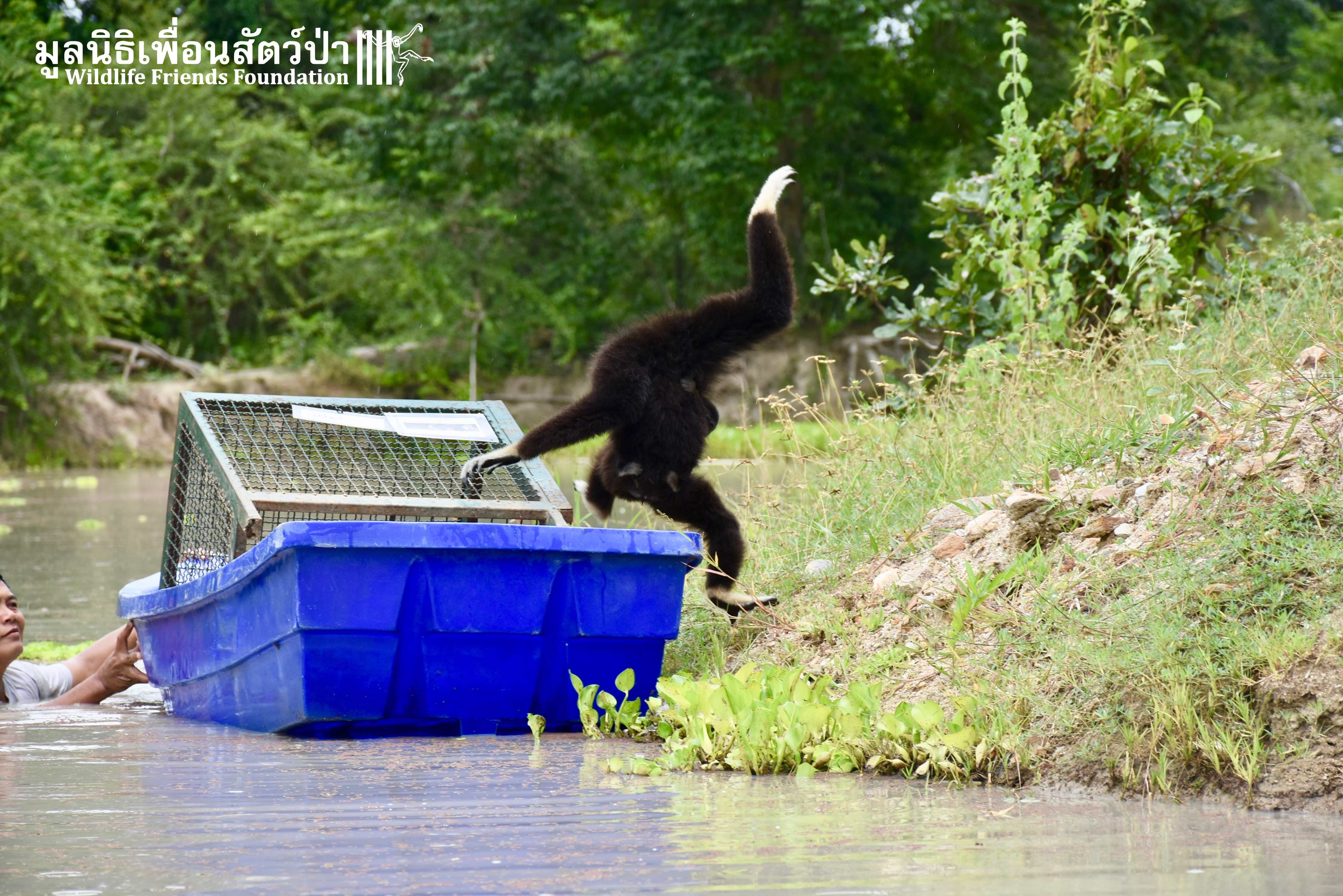 We recently released a family of four gibbons onto a new island for their rehabilitation. Enjoy this gif and stay tuned for more process photos and updates!