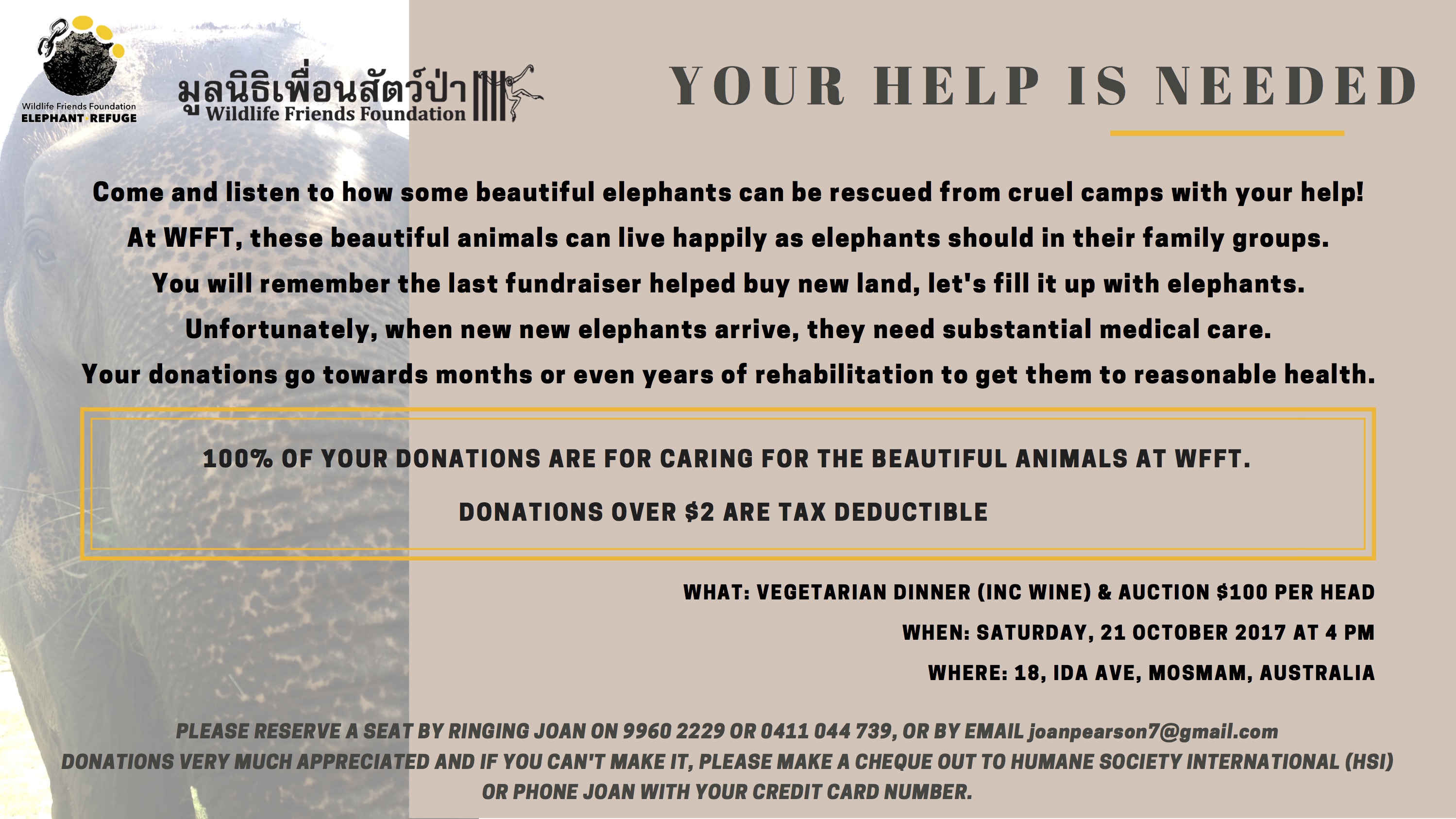 It's that time of the year again - our annual Elephant Fundraiser in Sydney, Australia will take place next month. Take a look here and see how you can help us help more elephants. Please call or email Joan at 0411044739 or 99602229 or joanpearson7@gmail.com to book your seat.