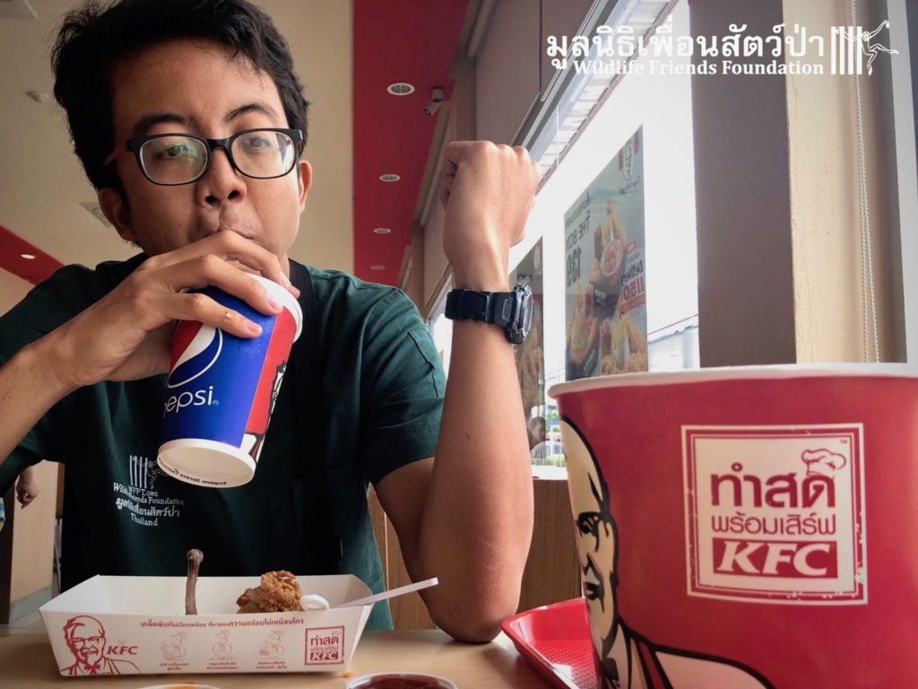 The team left and picked up the macaque and struck on an idea when discussing lunch options on the way back. The decision to have KFC for lunch was sold by the idea that we could buy extra to tempt the dogs and add a new anti parasitic drug, Simparica. This is effective for fleas, ticks, demodex and sarcoptic mange. By being able to treat the dogs on site we can avoid upsetting the hierarchy in the pack which would create other problems.
