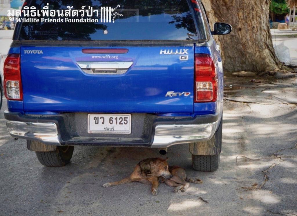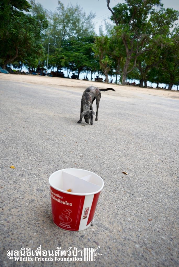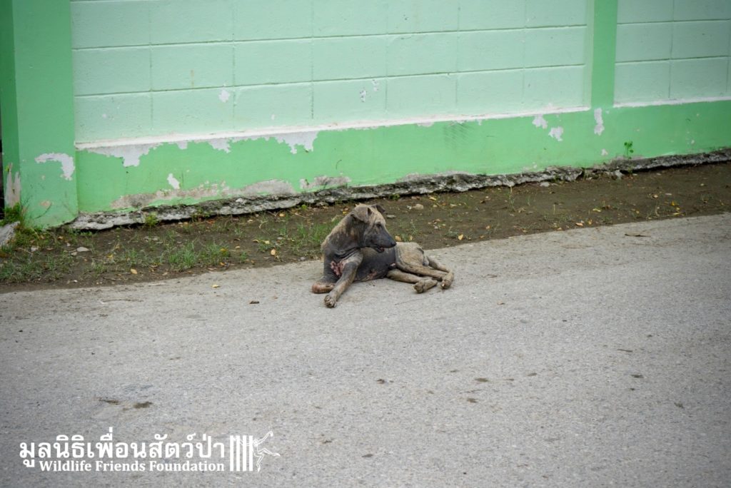 The WFFT Vet Team were recently alerted to the plight of a dog in a nearby fishing village that had severe mange and secondary wounds. A trip to visit the village was combined with the rescue of a young long tail macaque that had been taken to the university vet hospital in Hua Hin. The fishing village was visited first and it was found to have several dogs with severe mange. After discussing with the locals we found that no one could catch the dogs who were nervous of people.