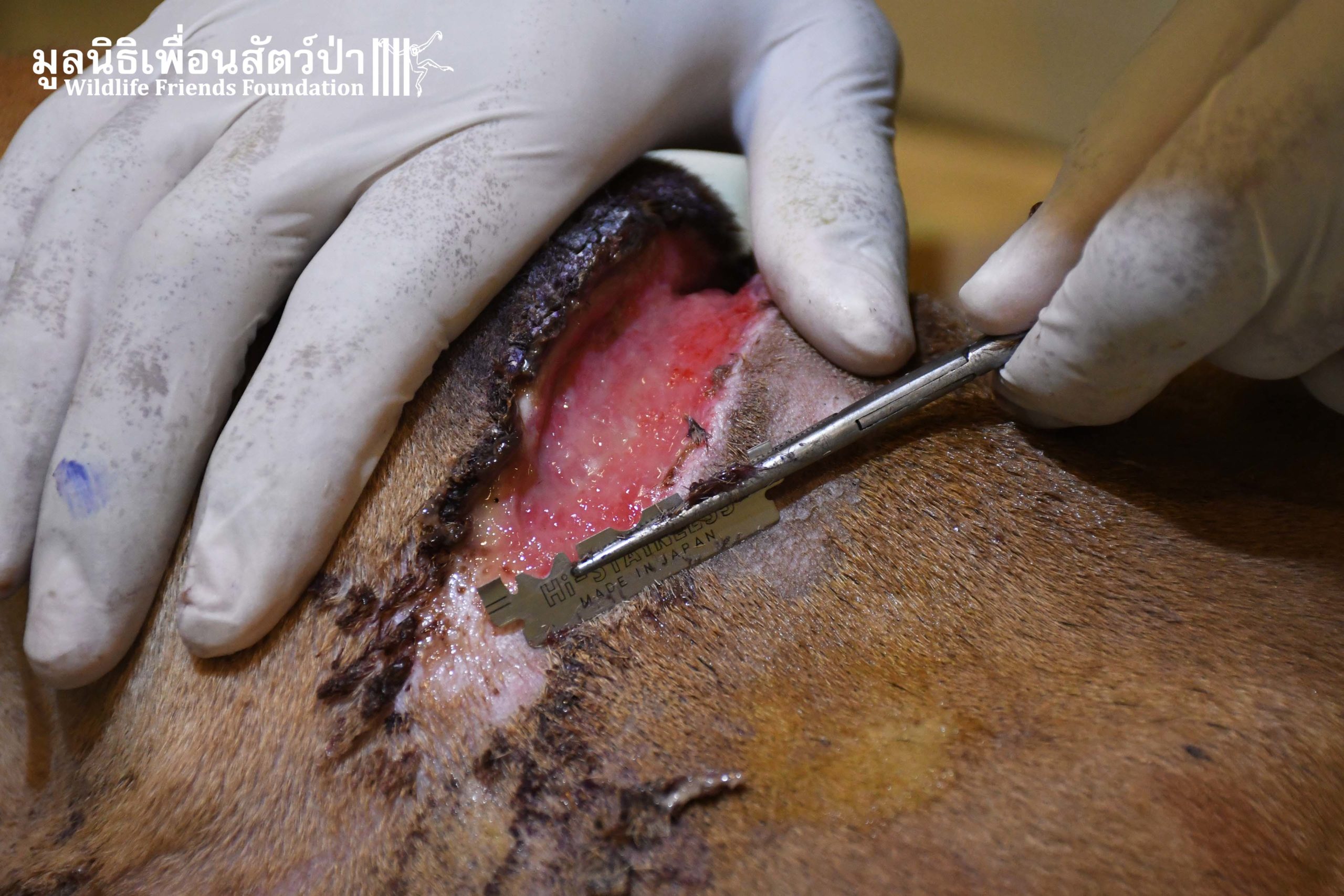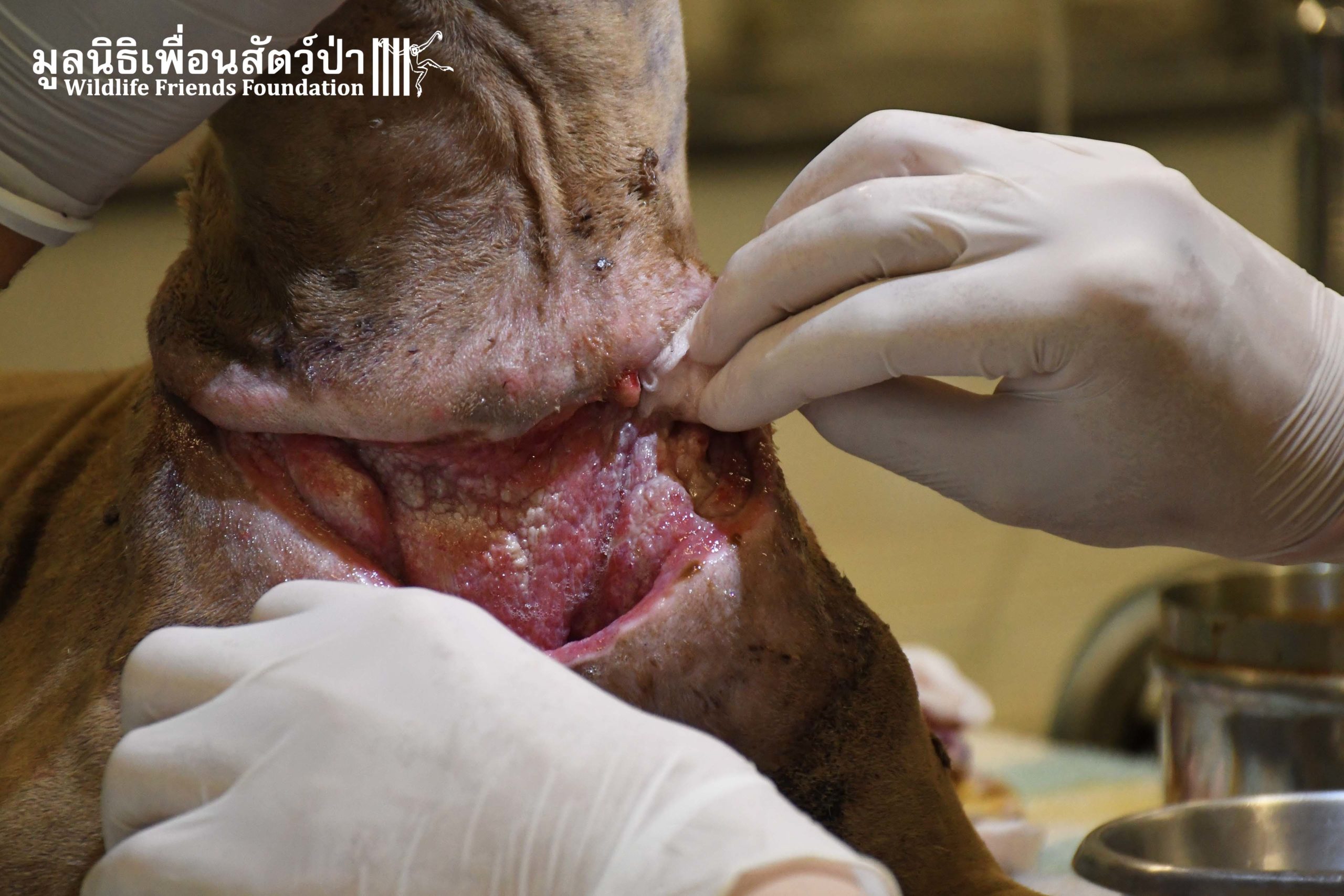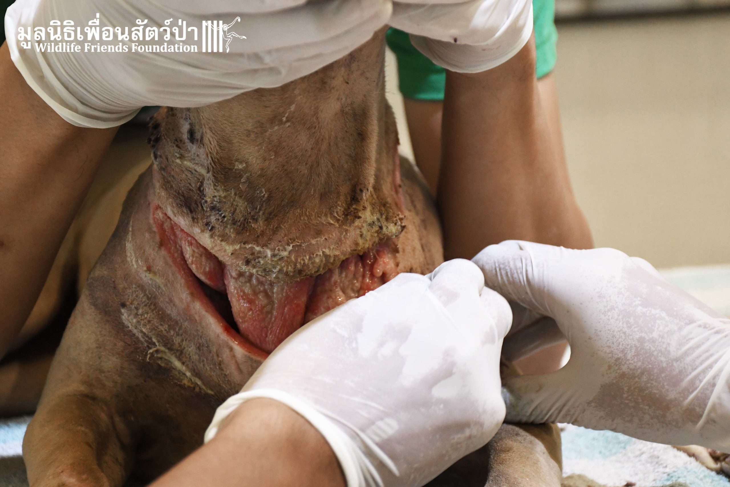 Judging by the wound we think the rope must have causing serious pain. She is staying at the WFFT Wildlife Hospital under close observation from our Vet team. We want to say a huge thank you to human rescue team from Chumphon who assisted and collaborated with us to save her life. You all gave her a second chance.
