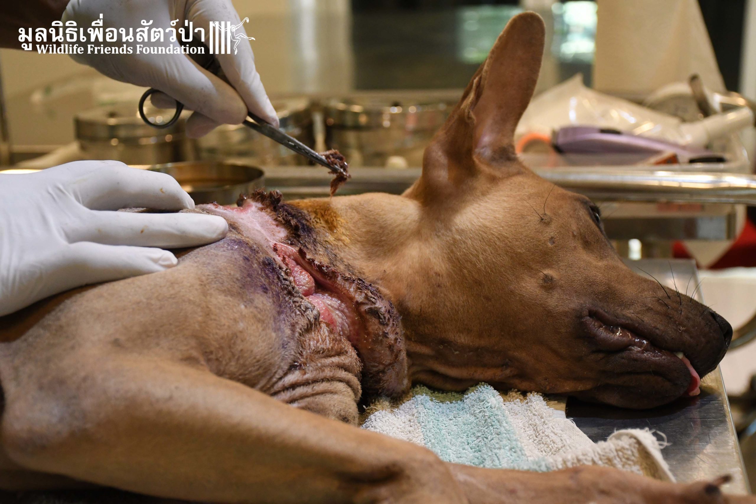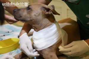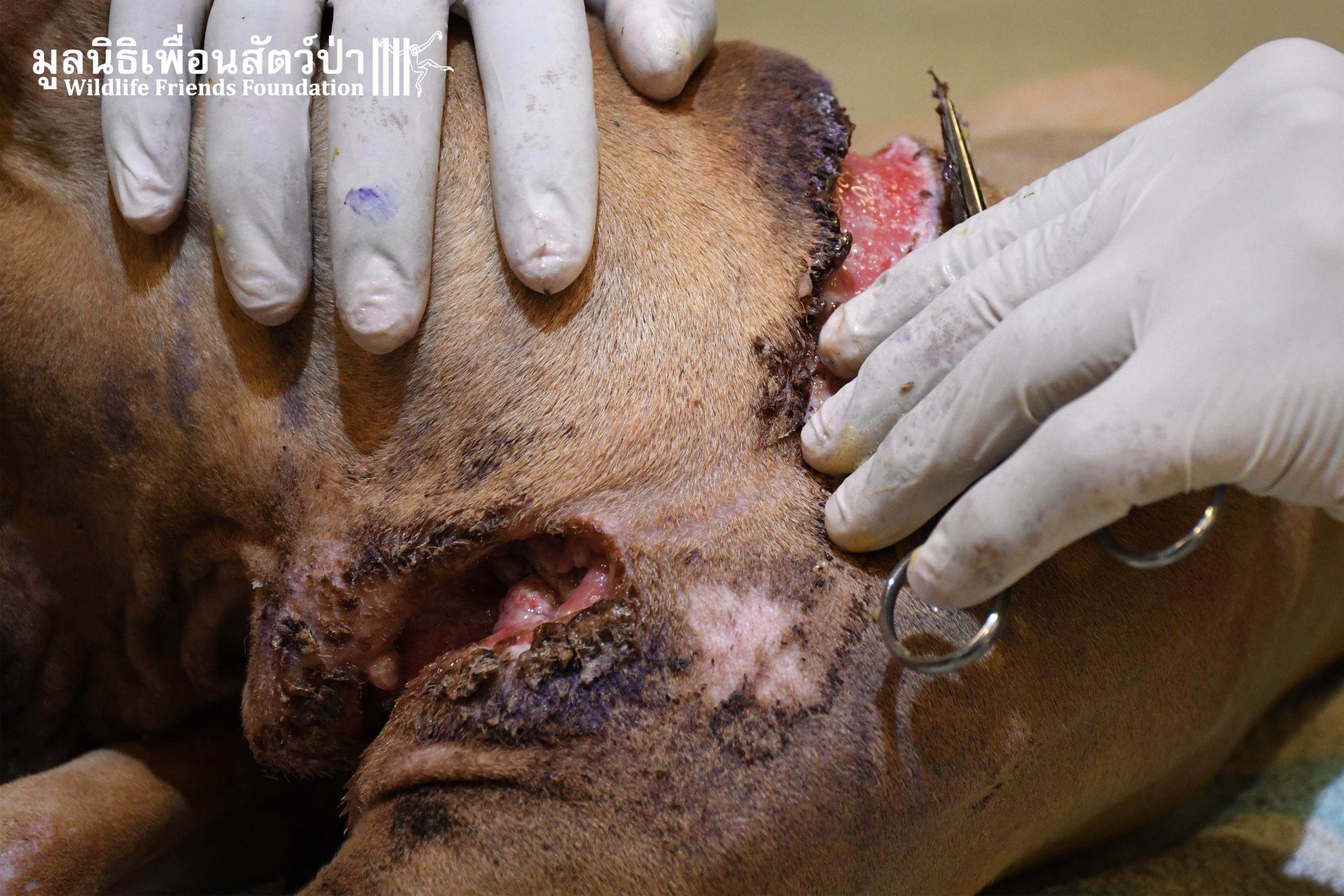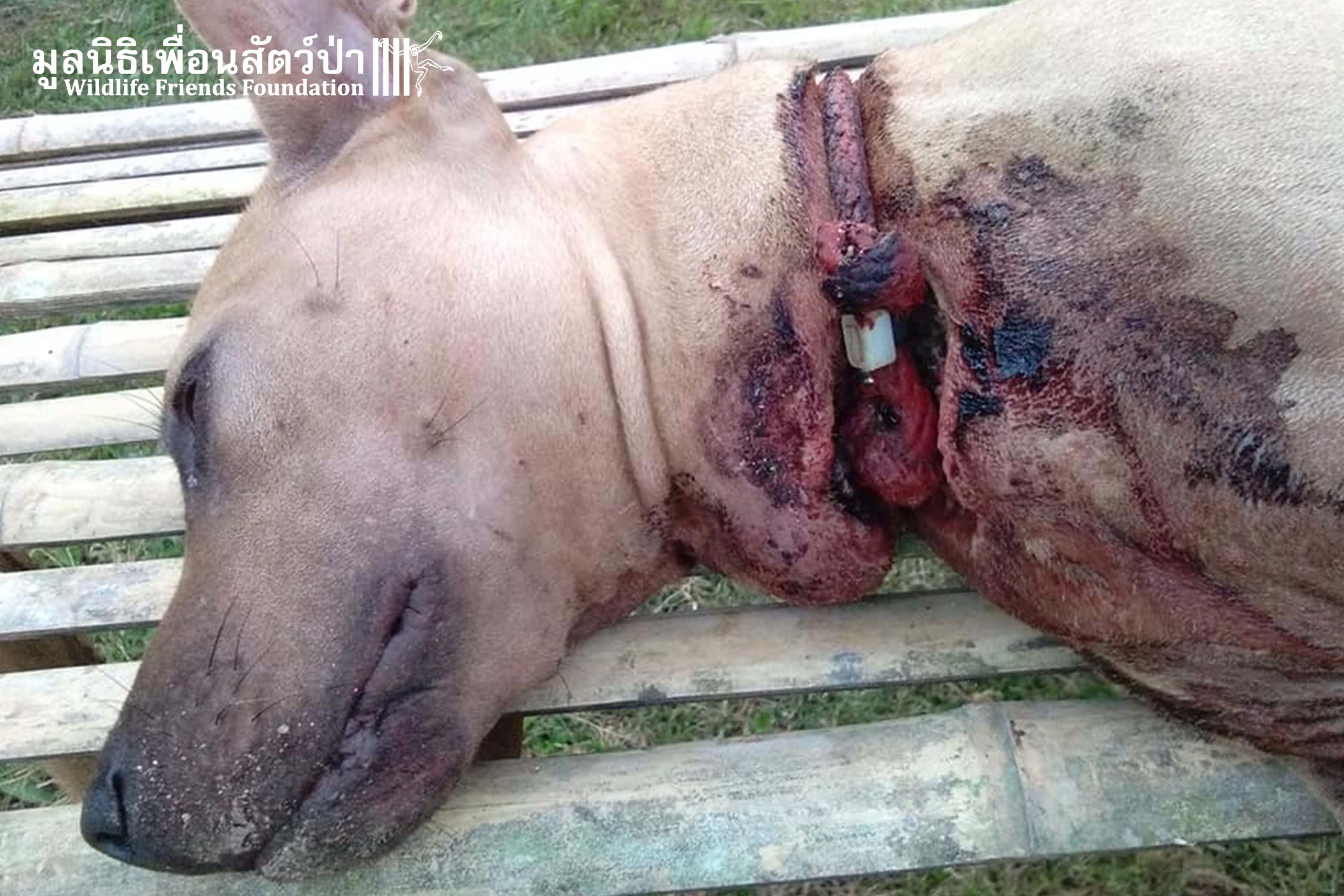 Judging by the wound we think the rope must have causing serious pain. She is staying at the WFFT Wildlife Hospital under close observation from our Vet team. We want to say a huge thank you to human rescue team from Chumphon who assisted and collaborated with us to save her life. You all gave her a second chance.