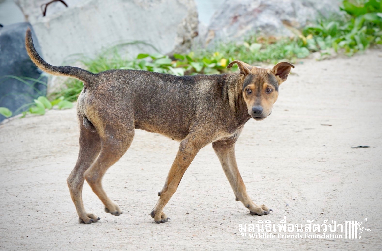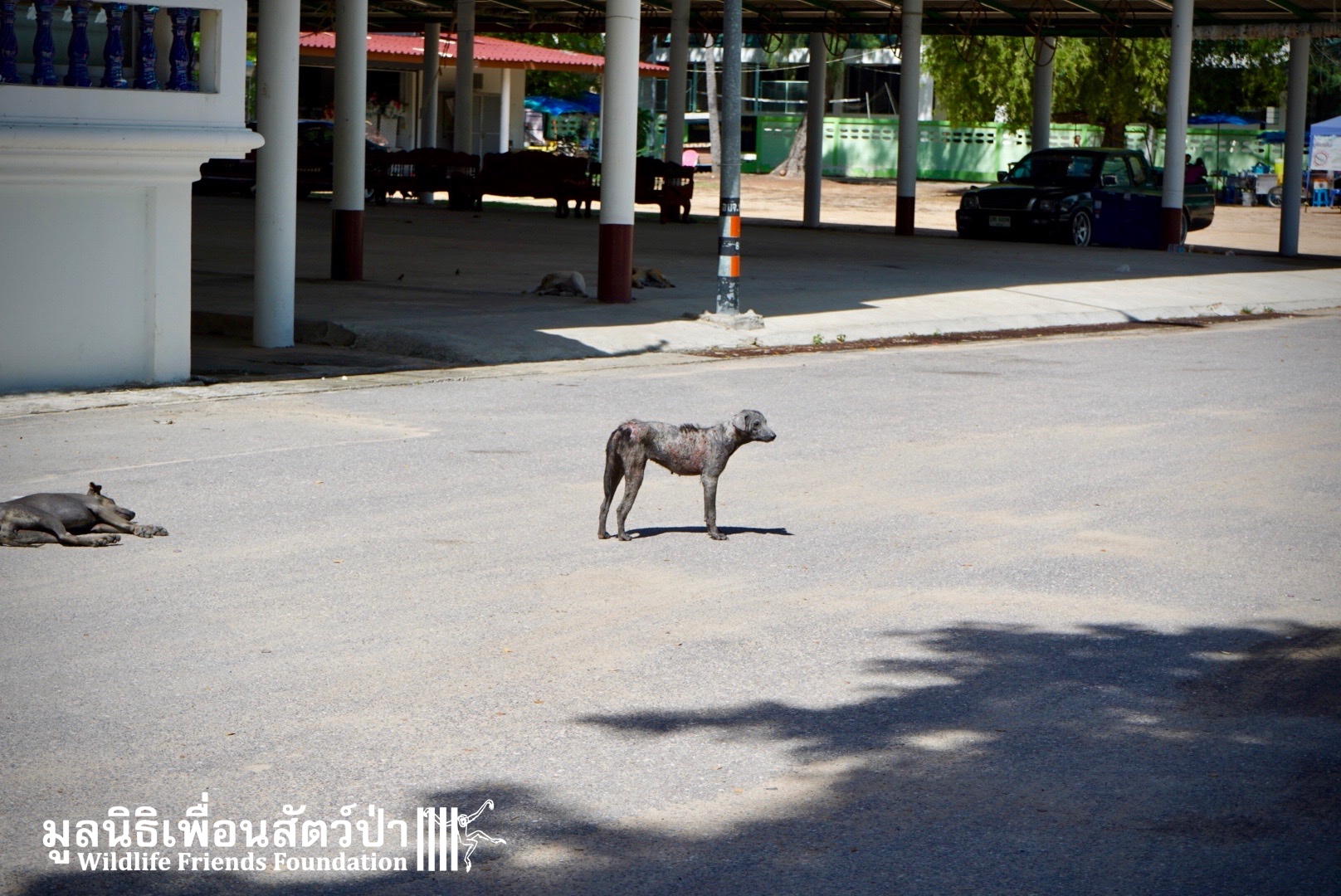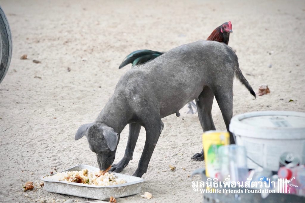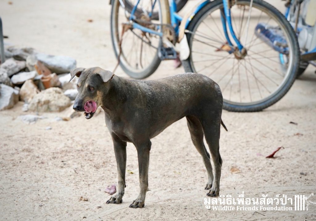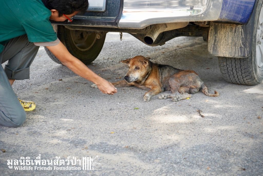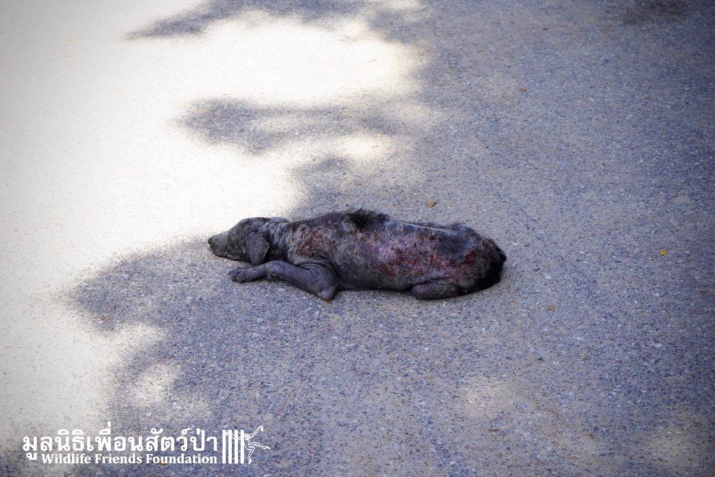 The WFFT Vet team will return in a few days to repeat the treatment for mange. This will ensure that it doesn’t relapse and the dogs make a full recovery. It isn’t cheap but it’s easy to administer and a single treatment is strikingly transformative for what is a common problem here in Thailand.