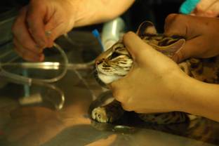 A juvenile Fishing Cat (felis viverrina) rescued from forest fires in Sraburi province |