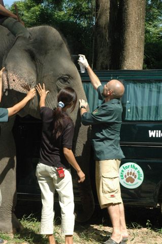A WFFT veterinarian treating the wild elephant in distress |
