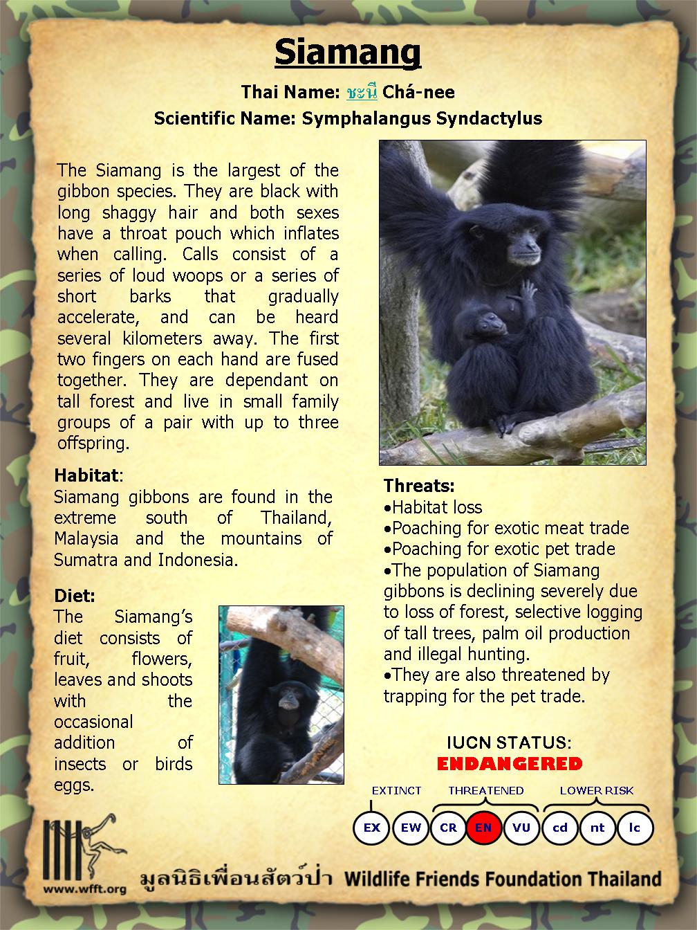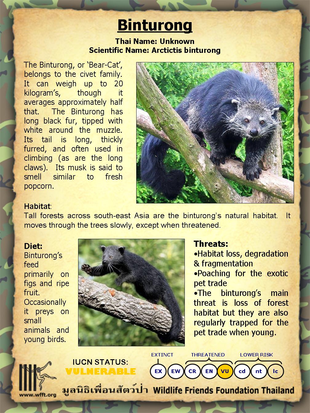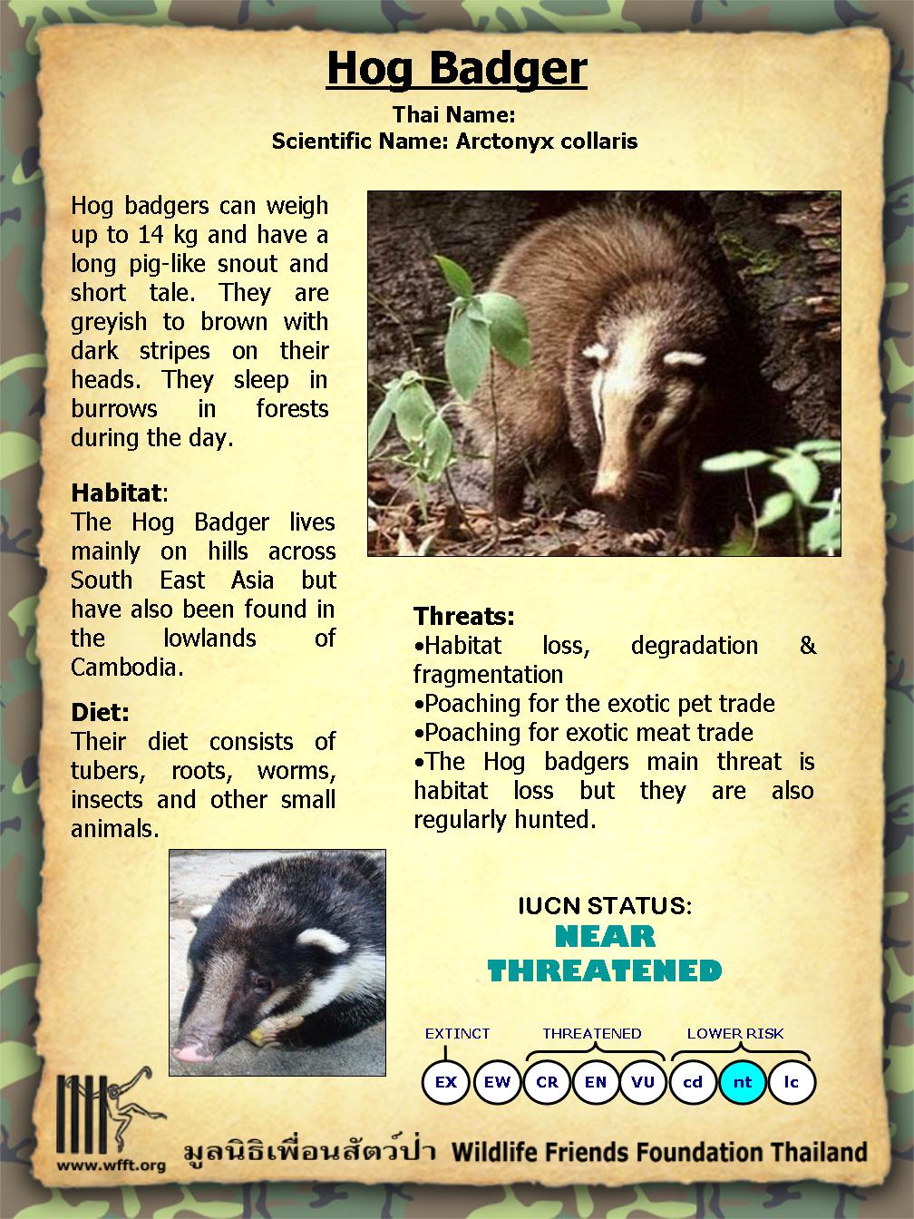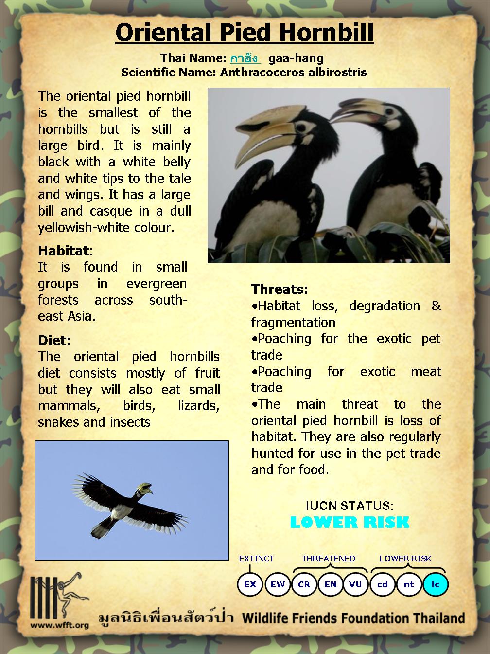 Wildlife Friends Foundation Thailand believe that education is a key part of conservation. With this in mind, we have created the species identification cards below, with information on a range of wildlife.