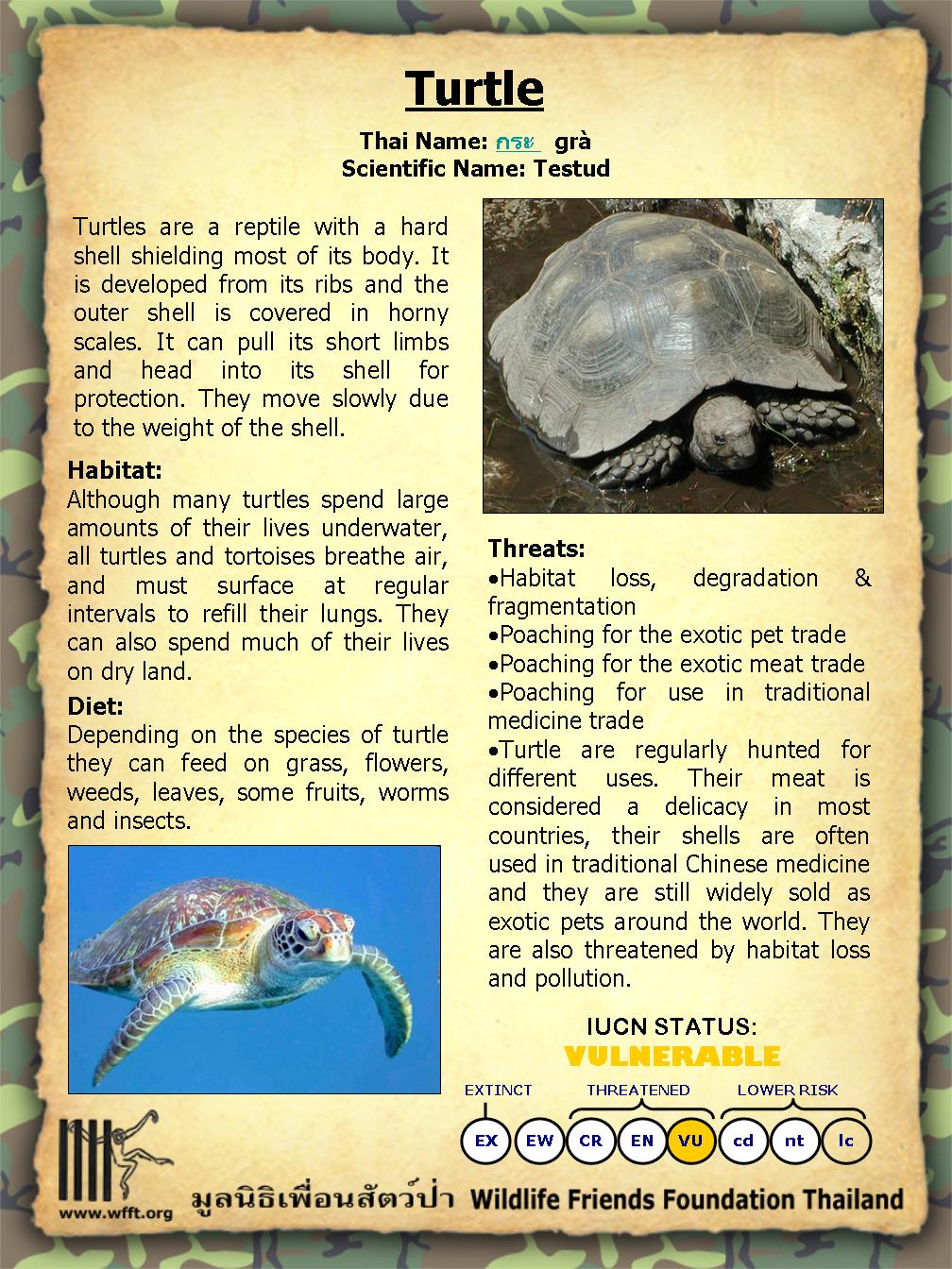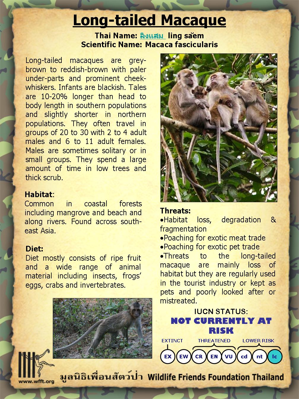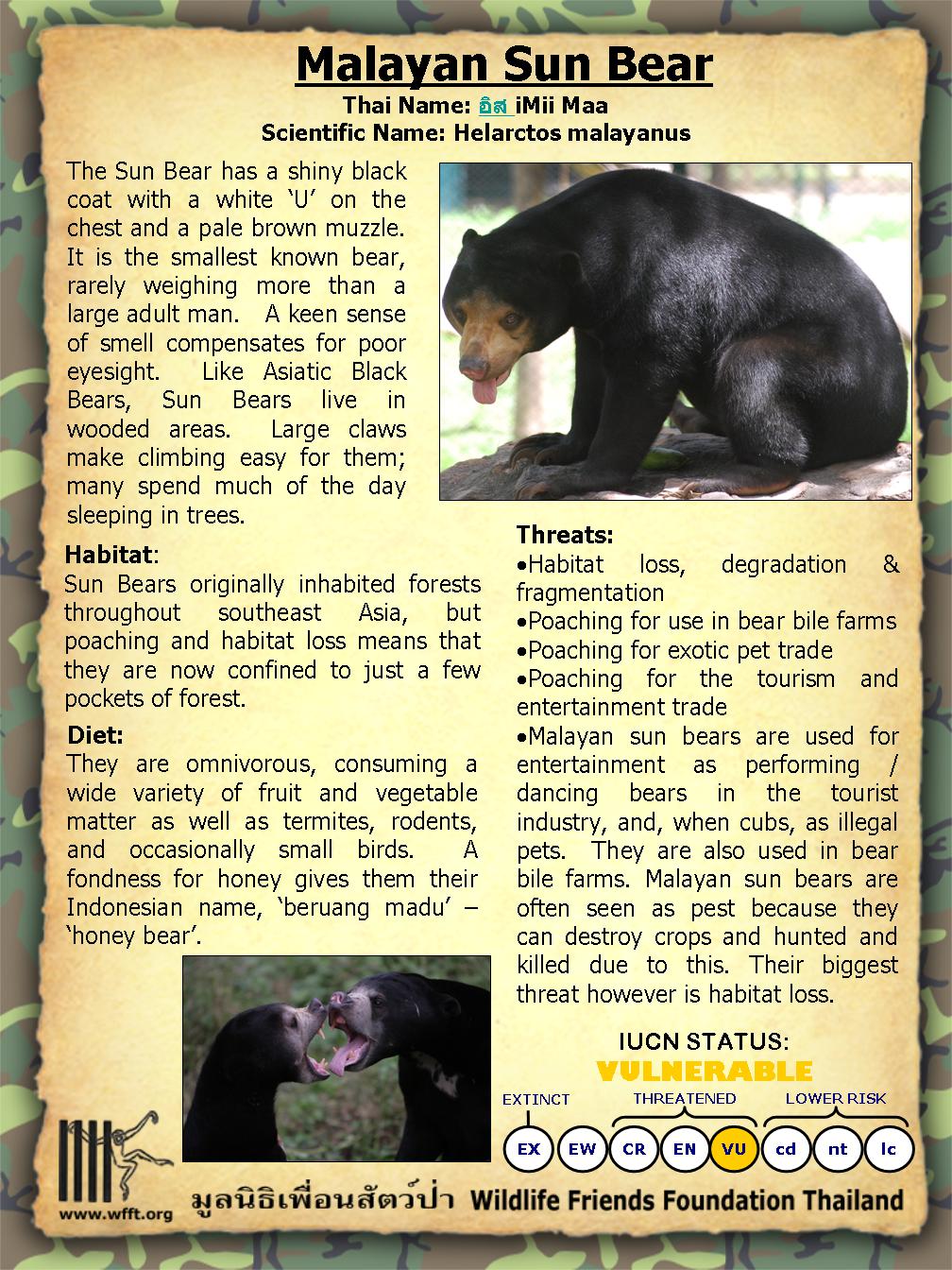 Wildlife Friends Foundation Thailand believe that education is a key part of conservation. With this in mind, we have created the species identification cards below, with information on a range of wildlife.