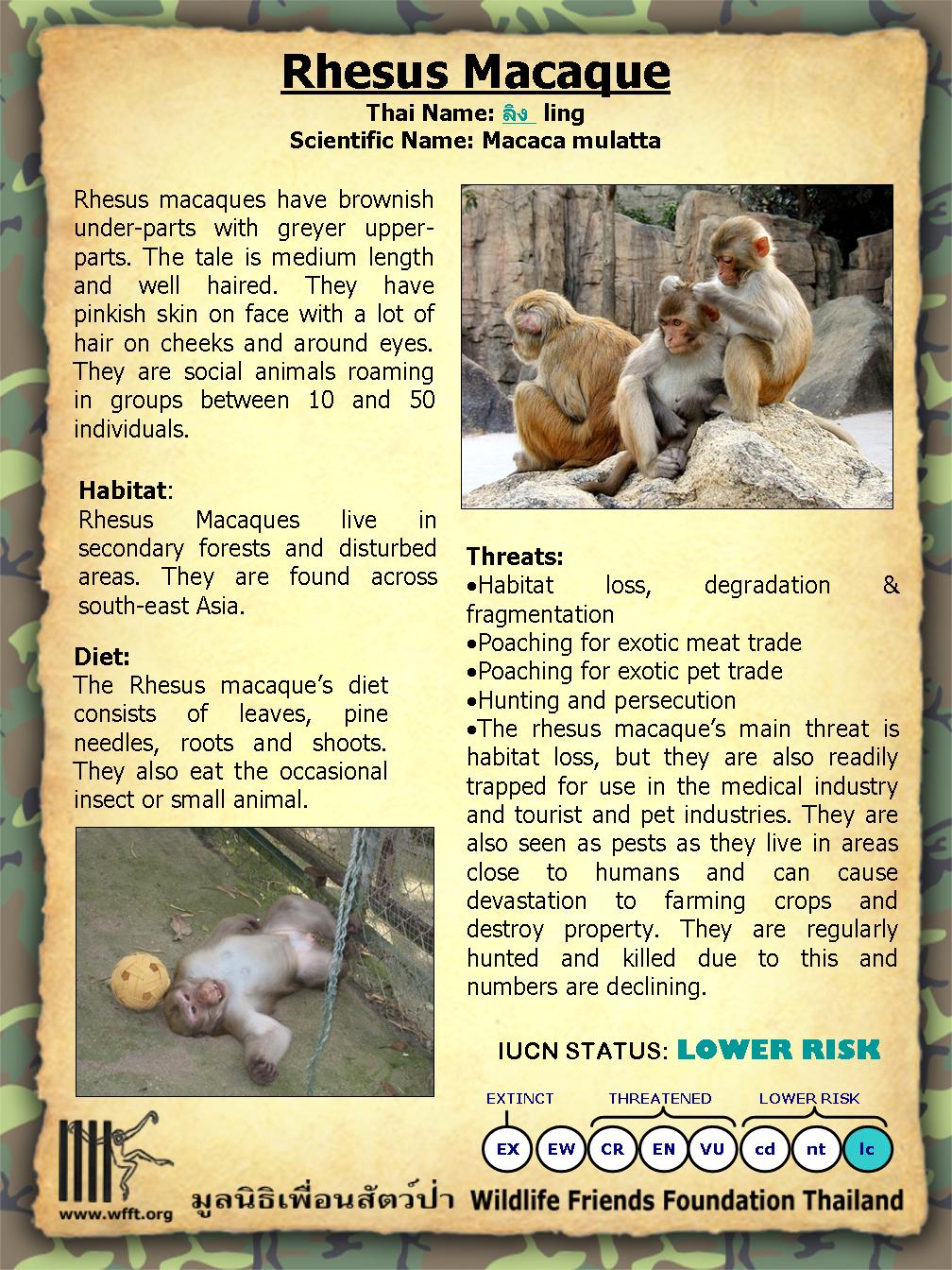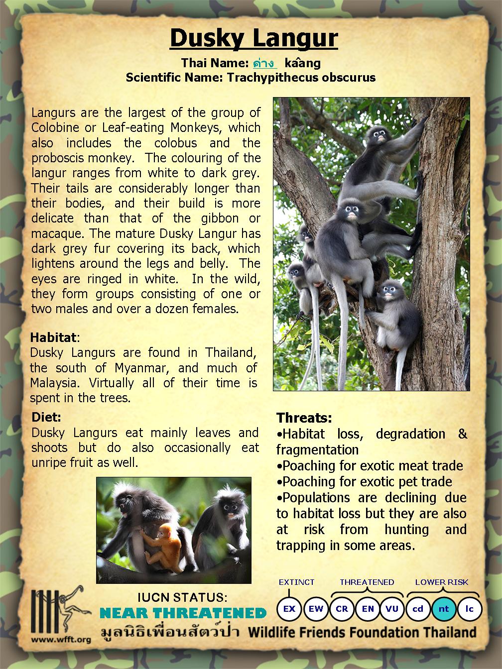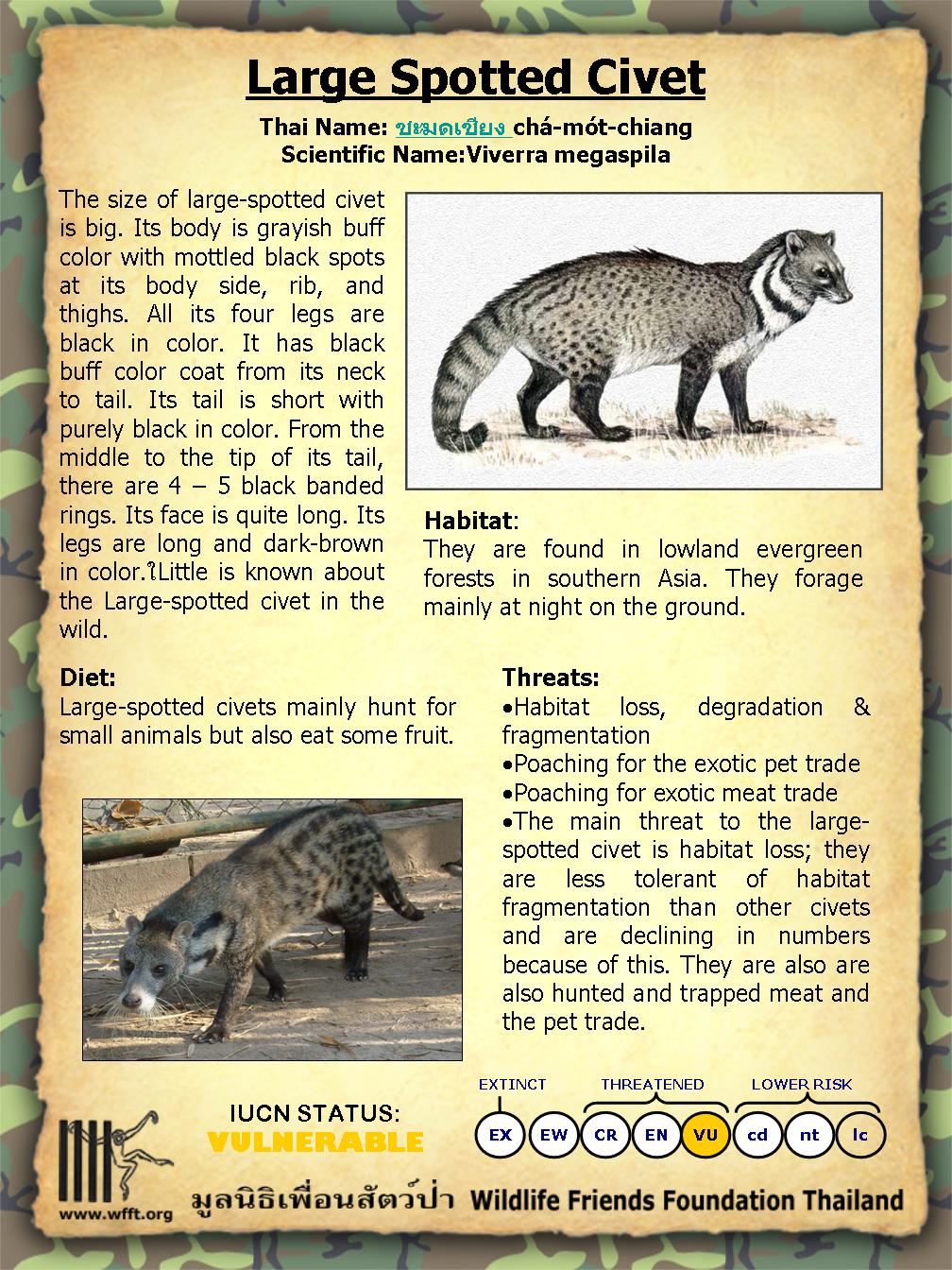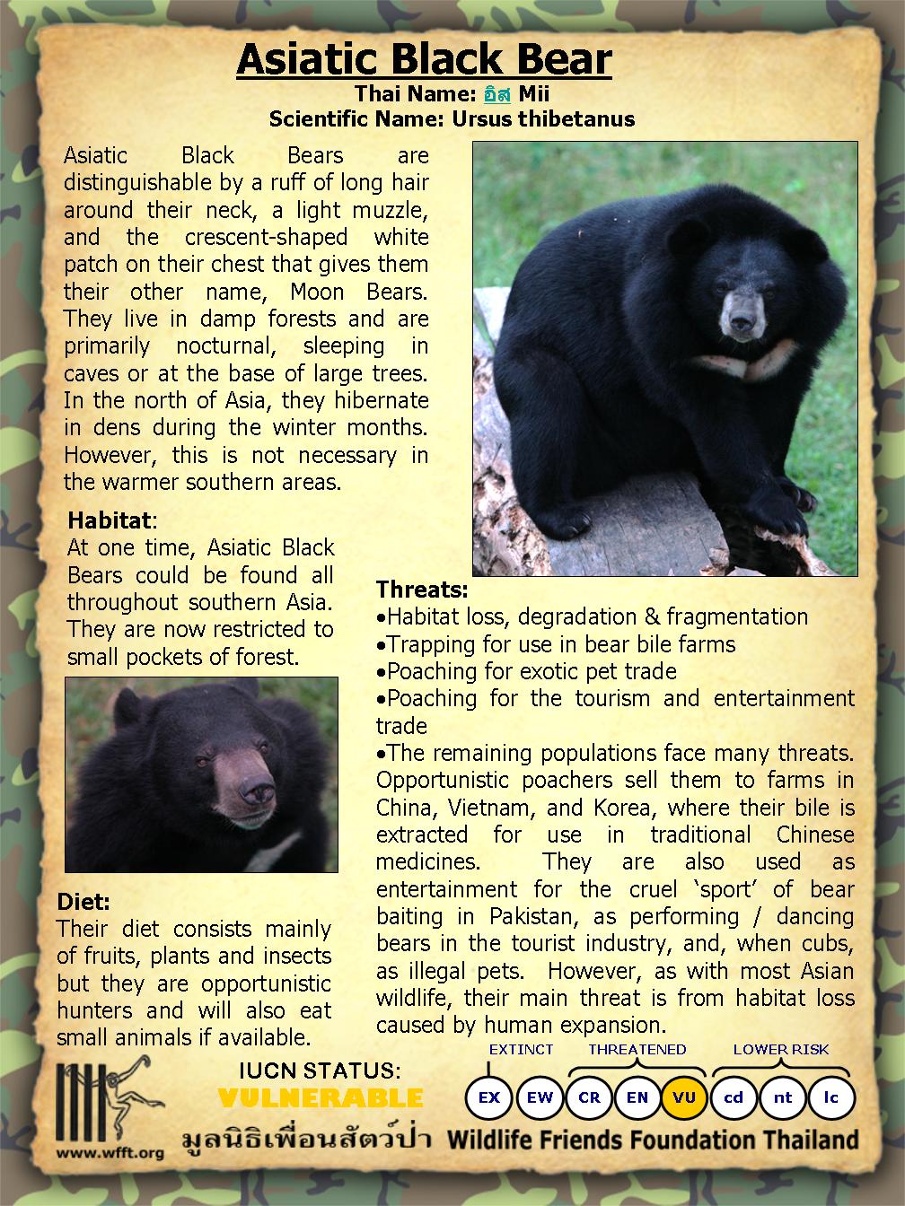 Wildlife Friends Foundation Thailand believe that education is a key part of conservation. With this in mind, we have created the species identification cards below, with information on a range of wildlife.