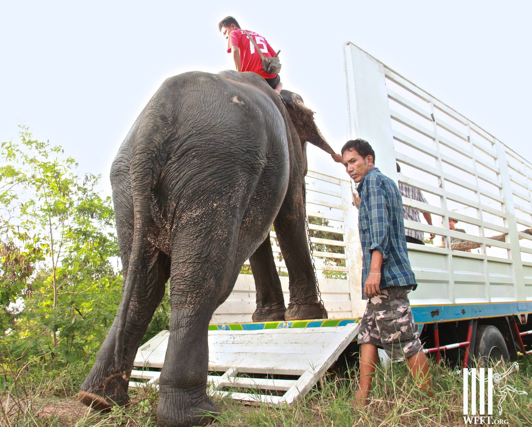 Boon Chuey is just over 50 years old and has ben working on the streets of Thailand and tourist elephant camps for several years. Yesterday was “her day” as she retired forever from the exploitation at the hands of tourists.