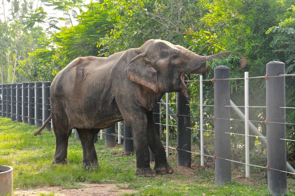 Well, Boon Chuey is doing well at WFFT now, after a long trip on the back of the truck she is now settling in well, and off the chains within 4 days at the center only! Boon Chuey is happy in her paddock and has been introduced to her new friend Nam Petch and they seem to like eachother during the days. It will take a bit more time until they will be left together day and night, as both are still strengthening up and need some privacy to sleep at night.