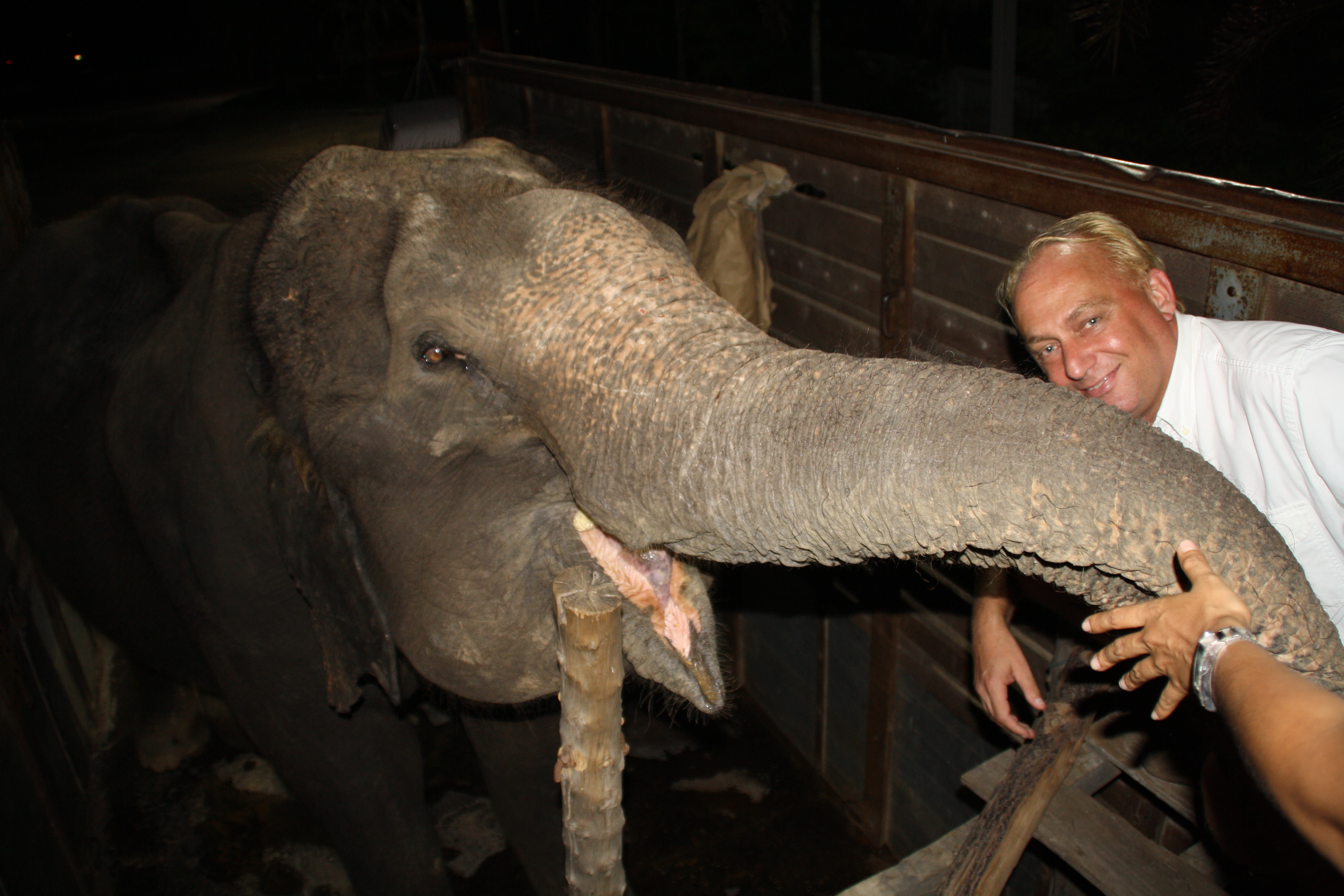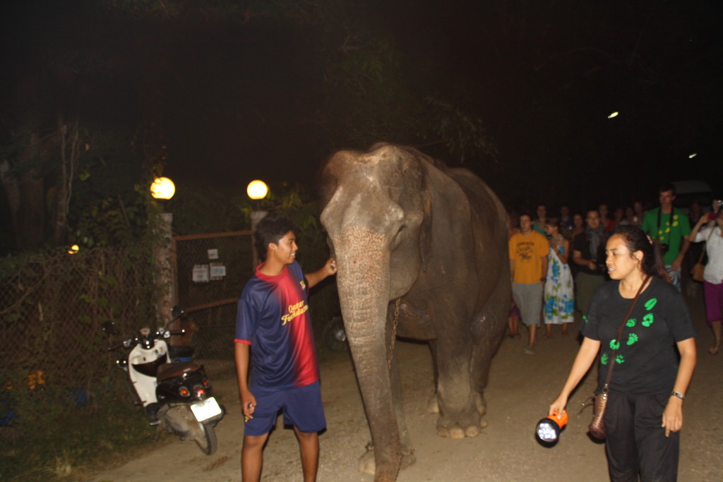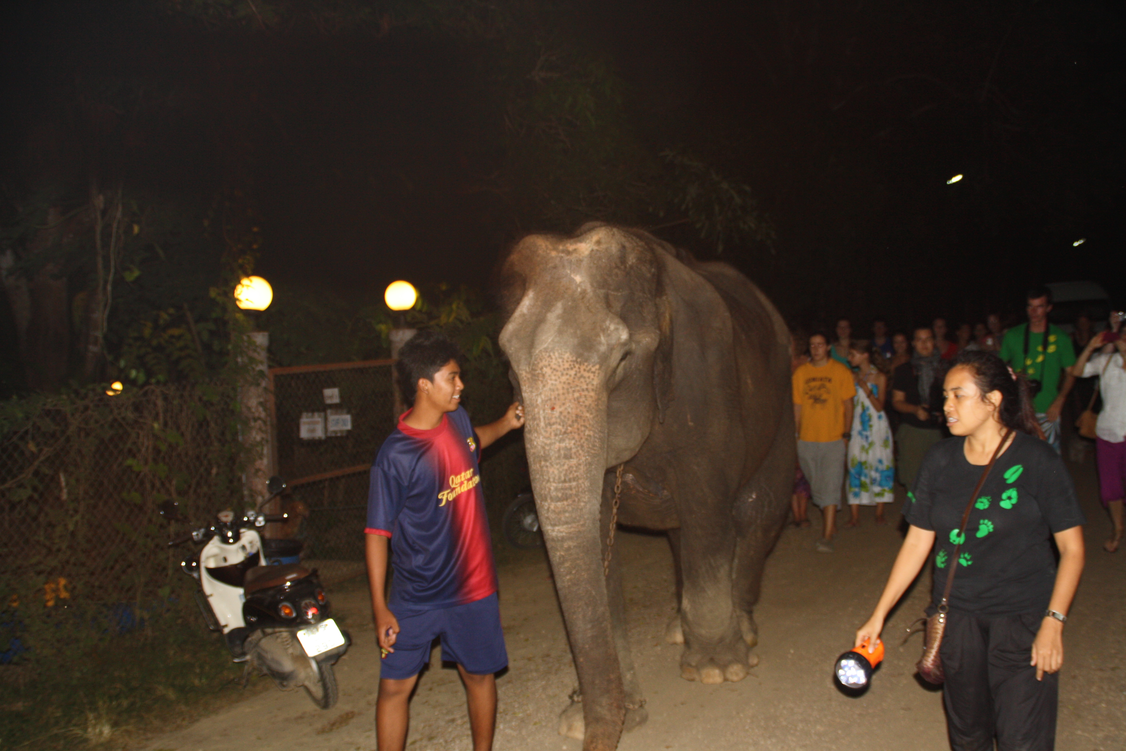 Boonmee is a 55 year elephant that was rescued and retired for life today! Boonmee has worked for a while in logging and over 25 years in the tourism industry and was until yesterday working at an elephant camp in Kanchanaburi province. Her rescue has been not too easy but she has finally arrived at WFFT last night and was immediately taken to the Elephant refuge at WFFT where she arrived late last night, welcomed by dozens of staff and volunteers. Today was her first day in retirement, a day that started with fresh green grass, juicy fruits and lots more food. Right after that a short swim in the lake and a walk into the WFFT and Kao Lookchang forest. Here some pictures, we will update a more detailed story ASAP! Thank you to Joan Pearson and all people that attended the fundraiser in Sydney, Australia last month!