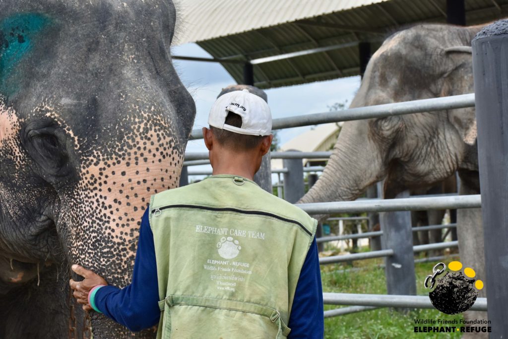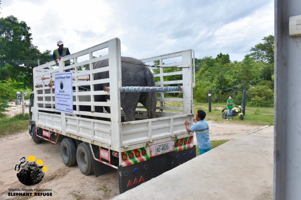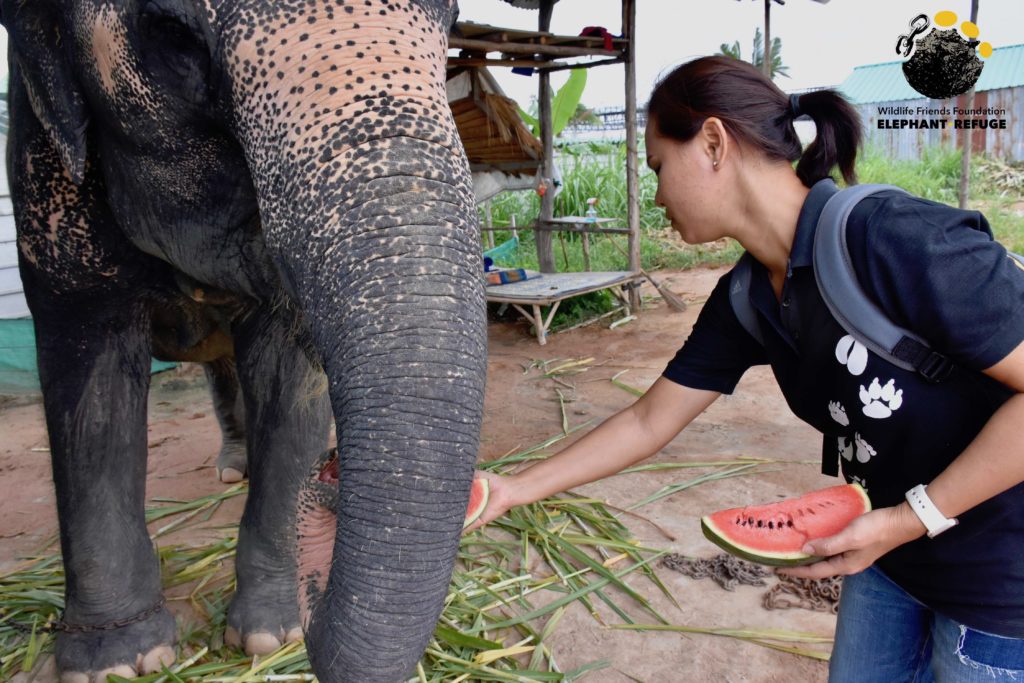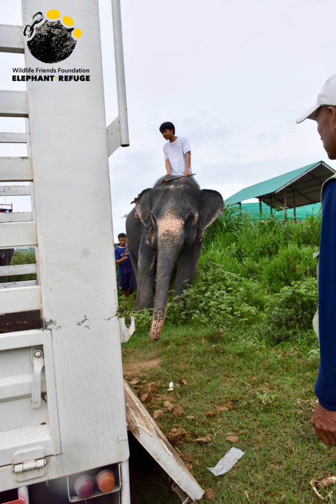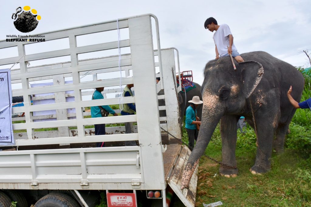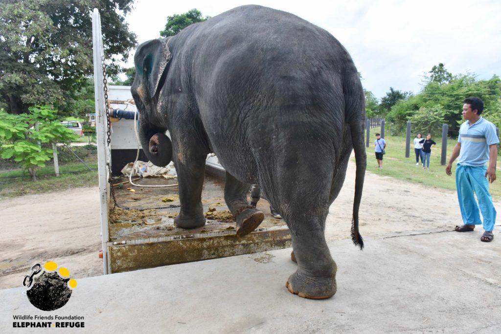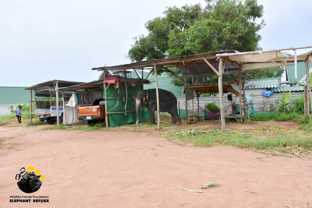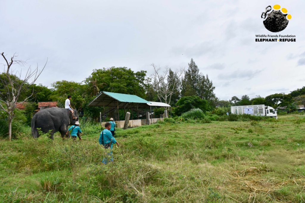 Never again will this gentle giant be chained or beaten. Never again will she have to carry a saddle on her back giving rides to the endless buss loads of tourists who visited the camp where she was made to work. After getting off the truck Boon Dee wanted to stretch her legs after the long journey. She took a stroll into WFFT’s Project 4 and took a look at the oasis that will become her home. She made a beeline for the first enclosure and greeted its inhabitant Gan Da. We then learned that these two had previously been friends when they worked together in a camp in Chiang Rai many years ago! We hope that they can once again become friends. What a fantastic birthday present for Joan who has had her wish come true and was here to witness the magic. Thank you to Joan again for her compassion and her determination to help the elephants of Thailand.