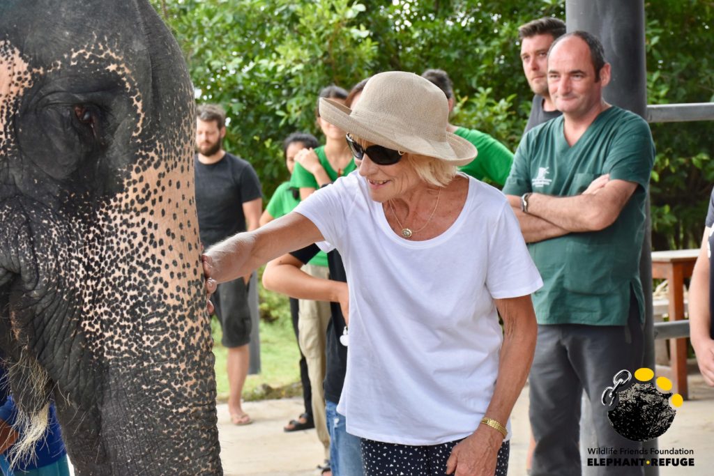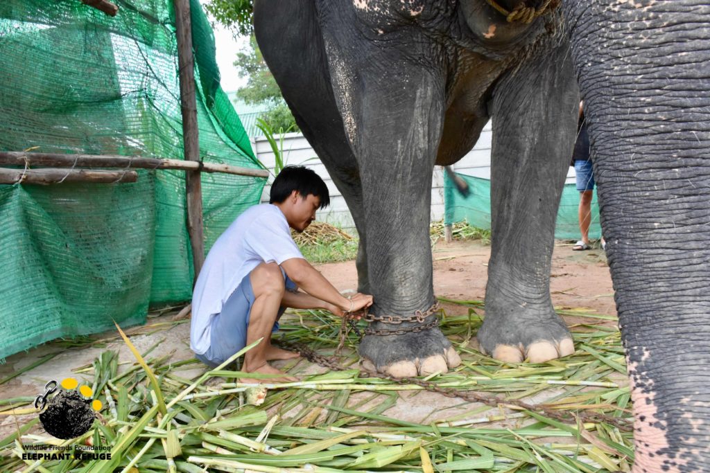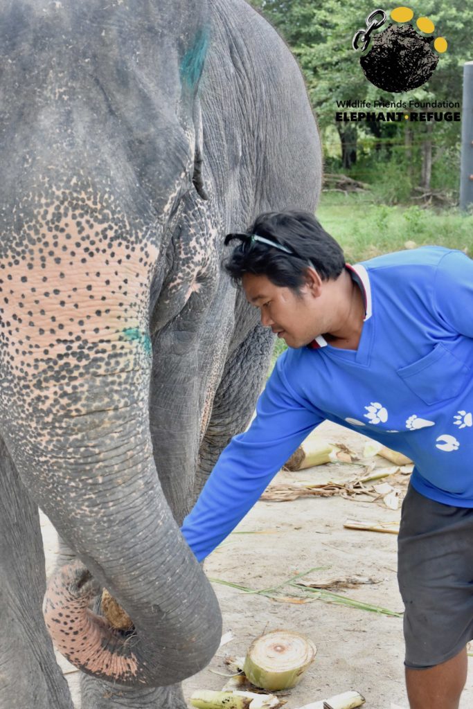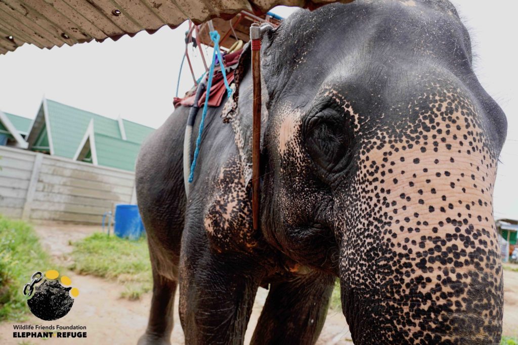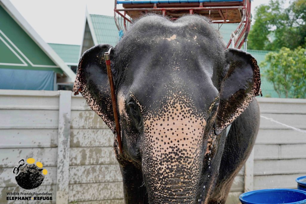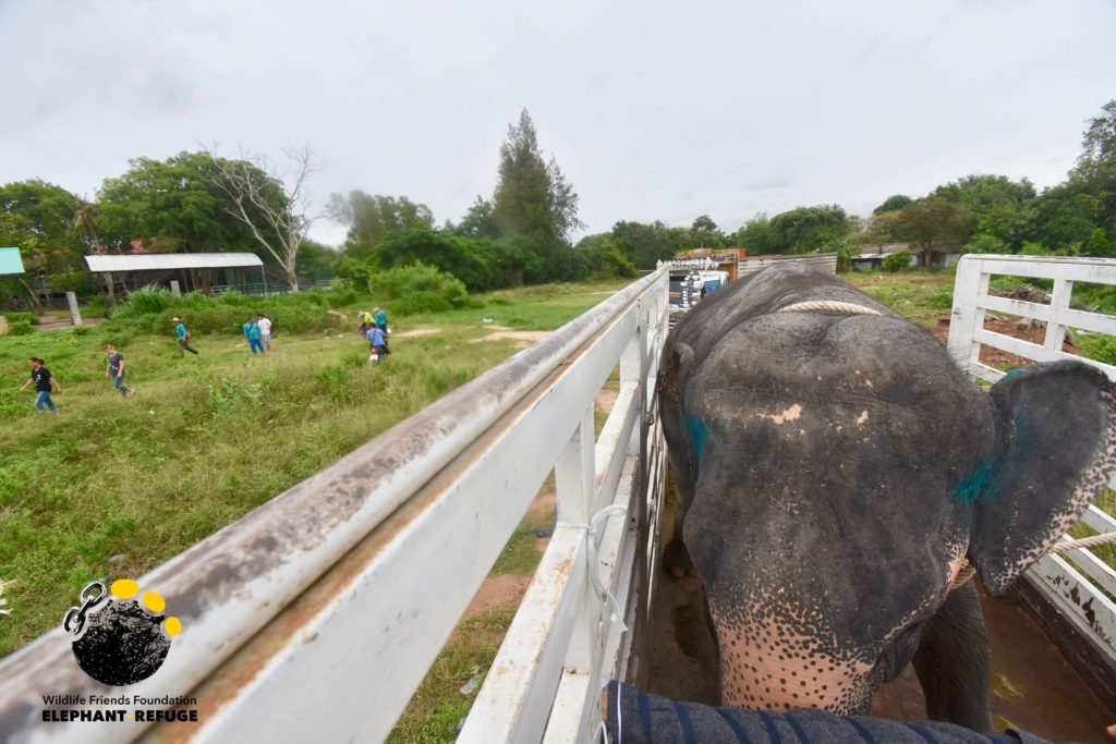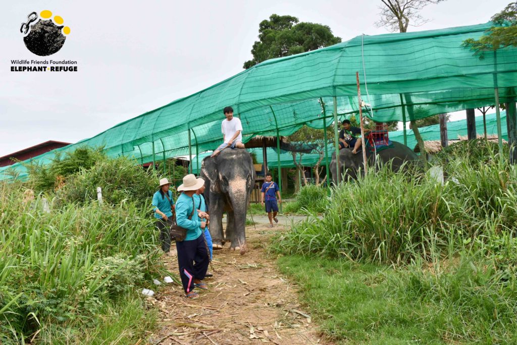 Never again will this gentle giant be chained or beaten. Never again will she have to carry a saddle on her back giving rides to the endless buss loads of tourists who visited the camp where she was made to work. After getting off the truck Boon Dee wanted to stretch her legs after the long journey. She took a stroll into WFFT’s Project 4 and took a look at the oasis that will become her home. She made a beeline for the first enclosure and greeted its inhabitant Gan Da. We then learned that these two had previously been friends when they worked together in a camp in Chiang Rai many years ago! We hope that they can once again become friends. What a fantastic birthday present for Joan who has had her wish come true and was here to witness the magic. Thank you to Joan again for her compassion and her determination to help the elephants of Thailand.