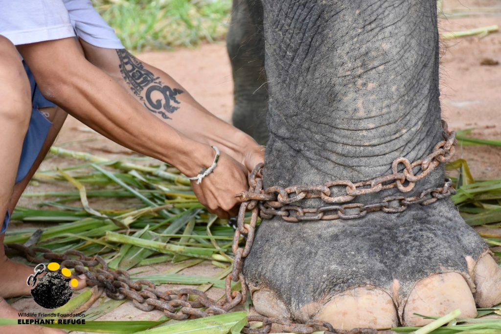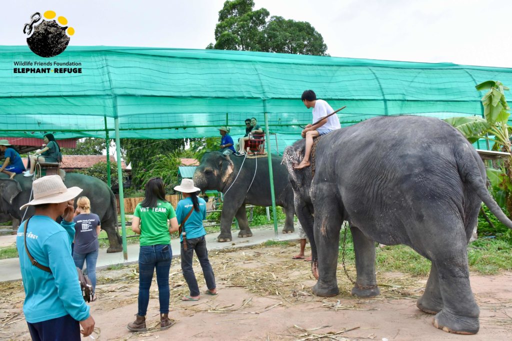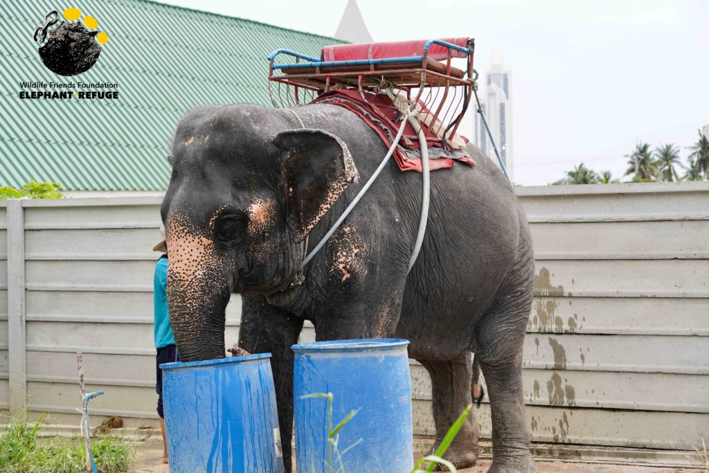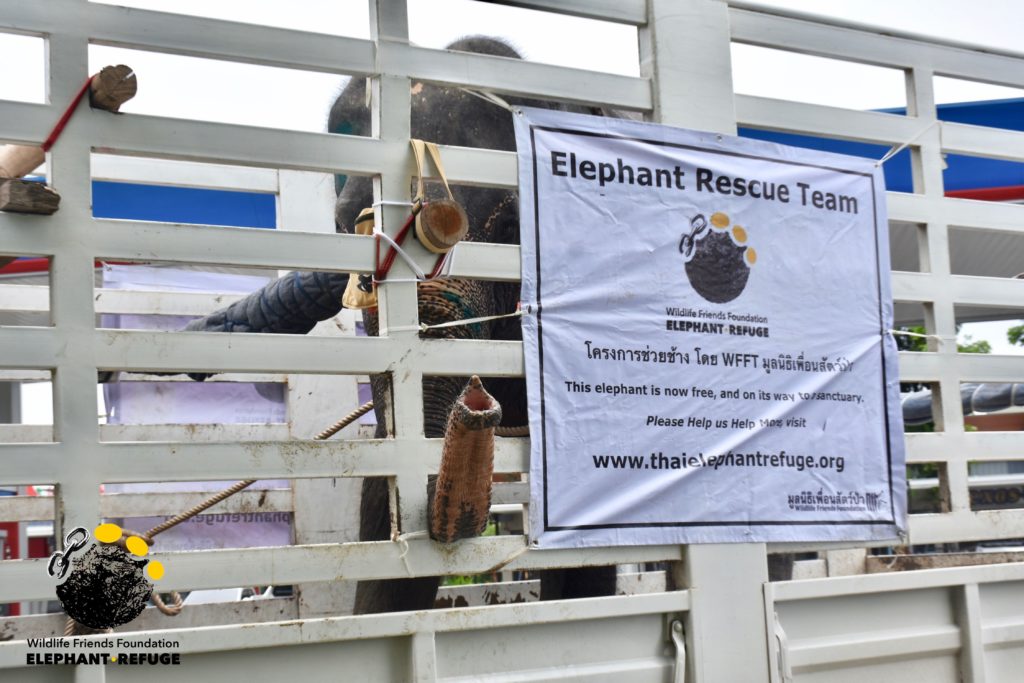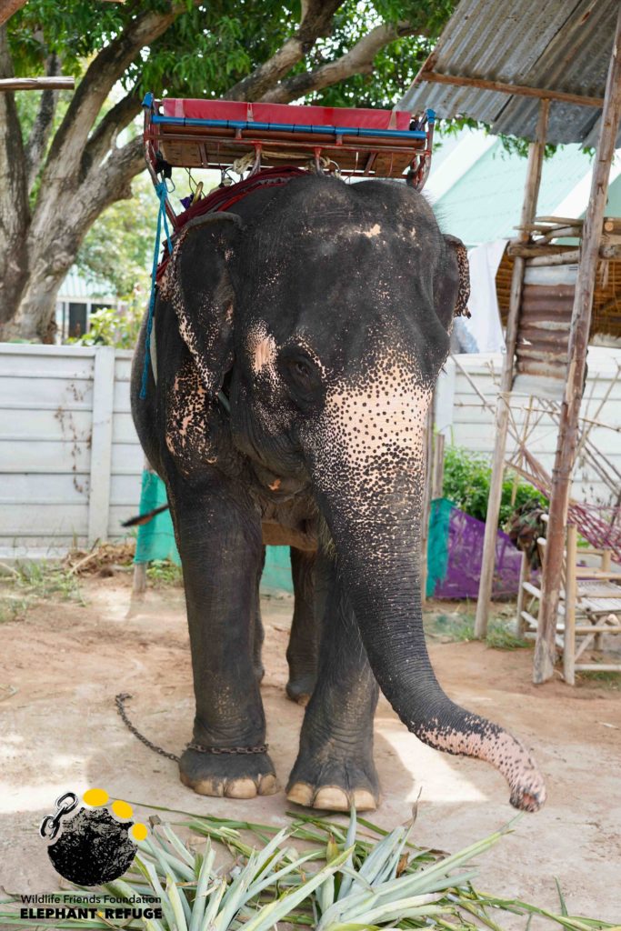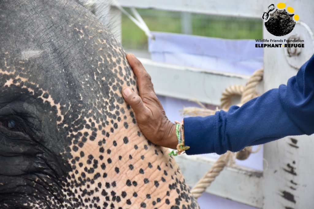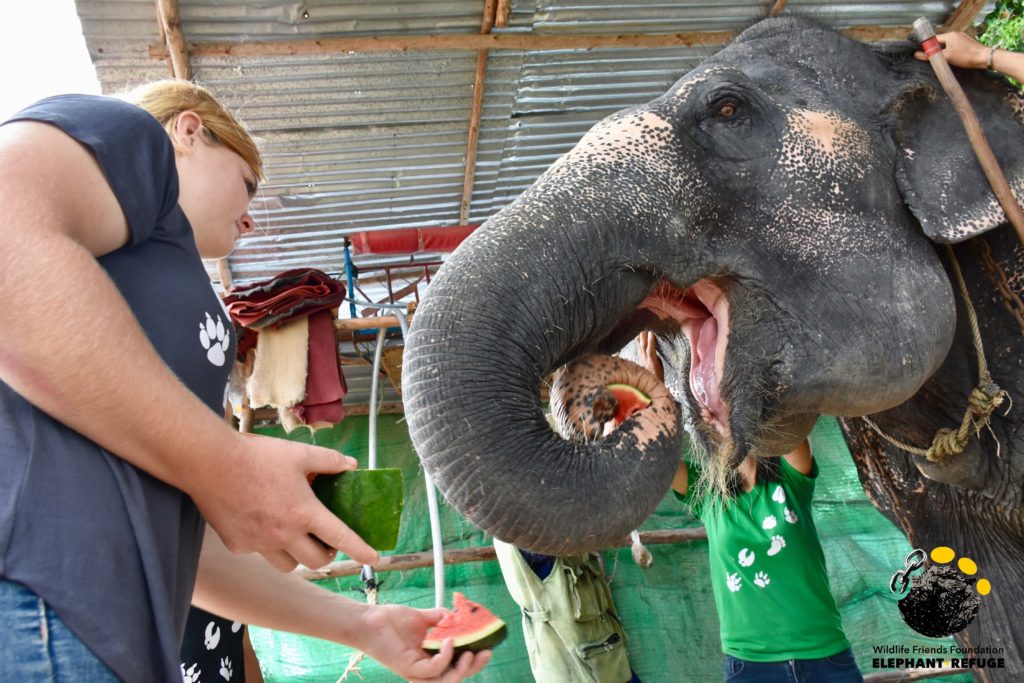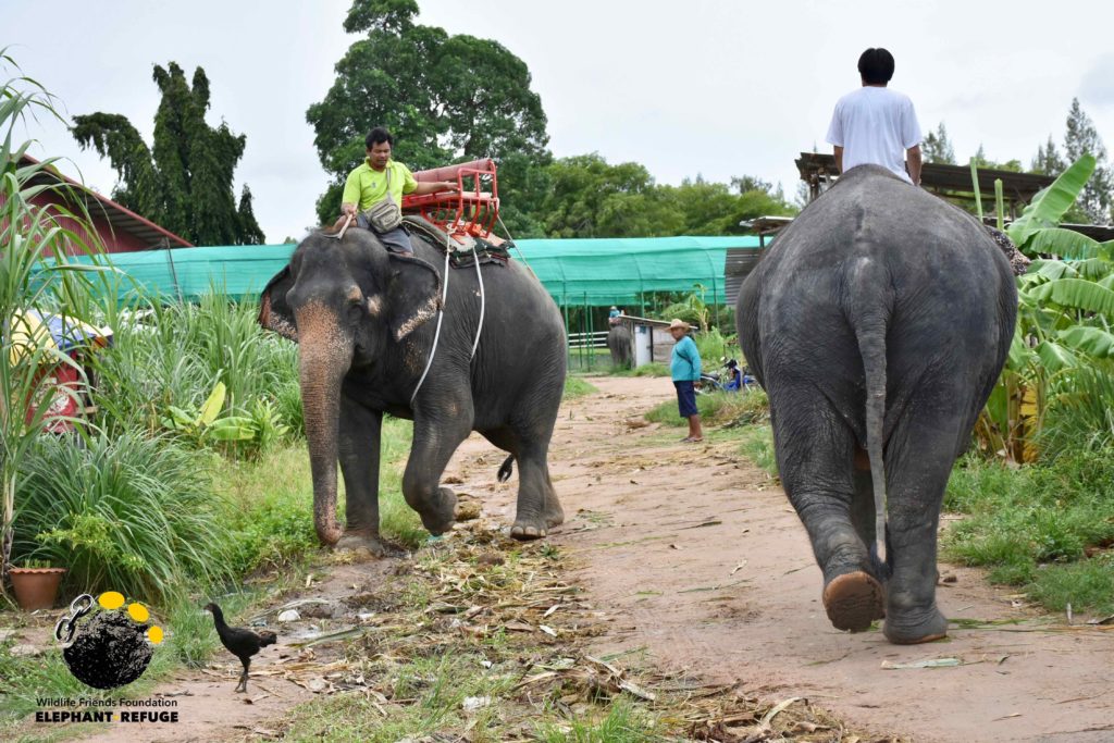 Never again will this gentle giant be chained or beaten. Never again will she have to carry a saddle on her back giving rides to the endless buss loads of tourists who visited the camp where she was made to work. After getting off the truck Boon Dee wanted to stretch her legs after the long journey. She took a stroll into WFFT’s Project 4 and took a look at the oasis that will become her home. She made a beeline for the first enclosure and greeted its inhabitant Gan Da. We then learned that these two had previously been friends when they worked together in a camp in Chiang Rai many years ago! We hope that they can once again become friends. What a fantastic birthday present for Joan who has had her wish come true and was here to witness the magic. Thank you to Joan again for her compassion and her determination to help the elephants of Thailand.