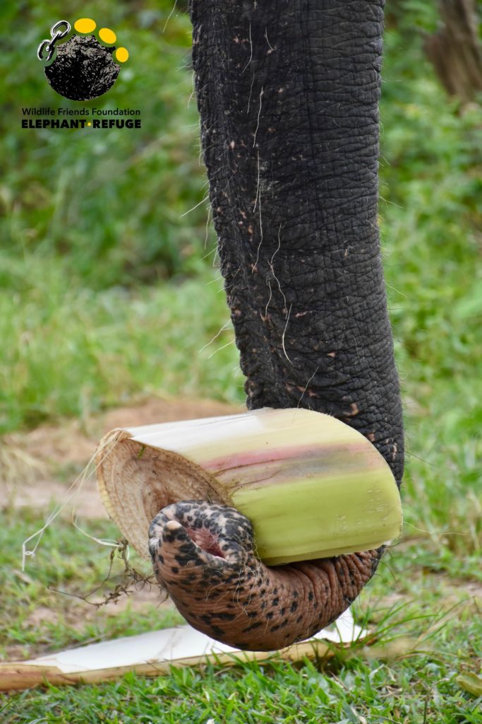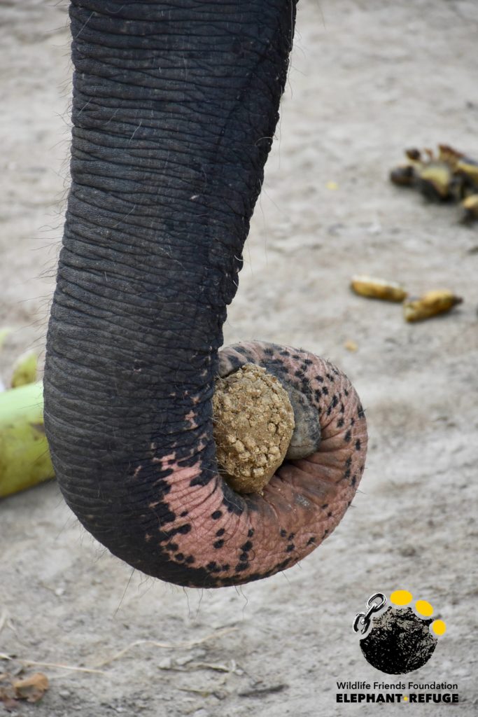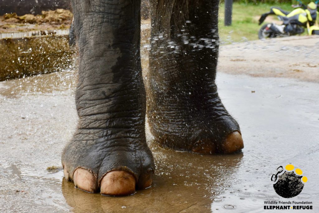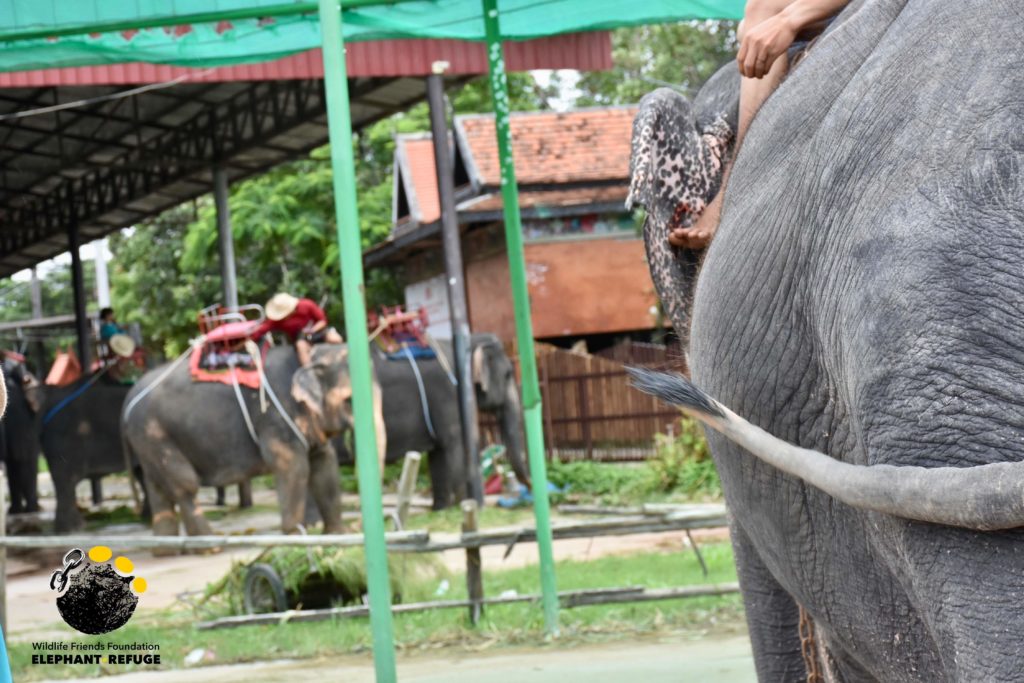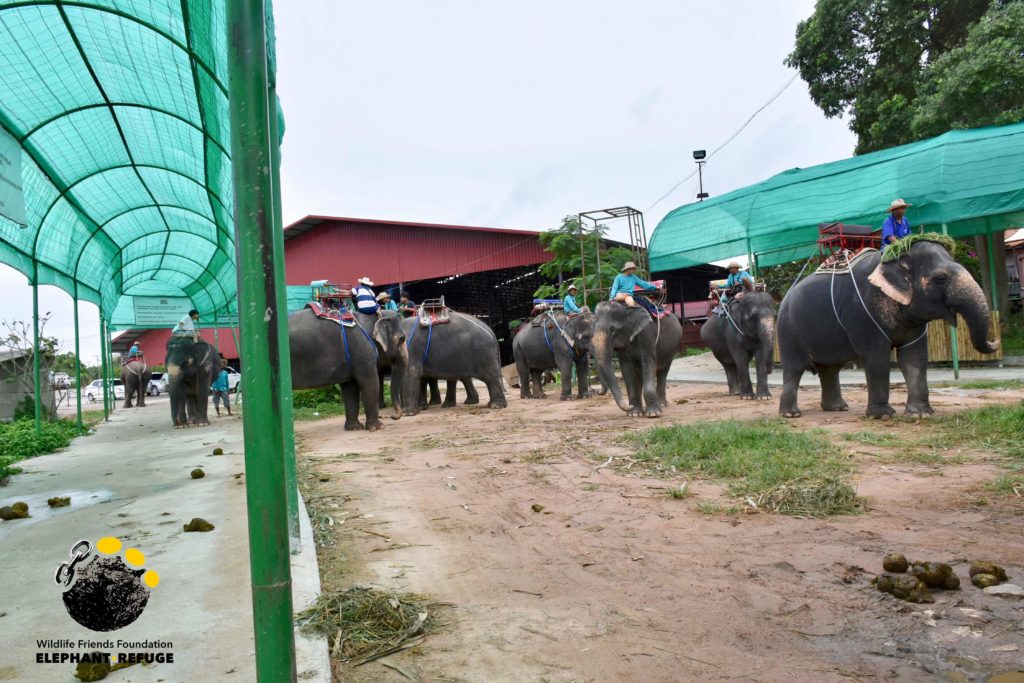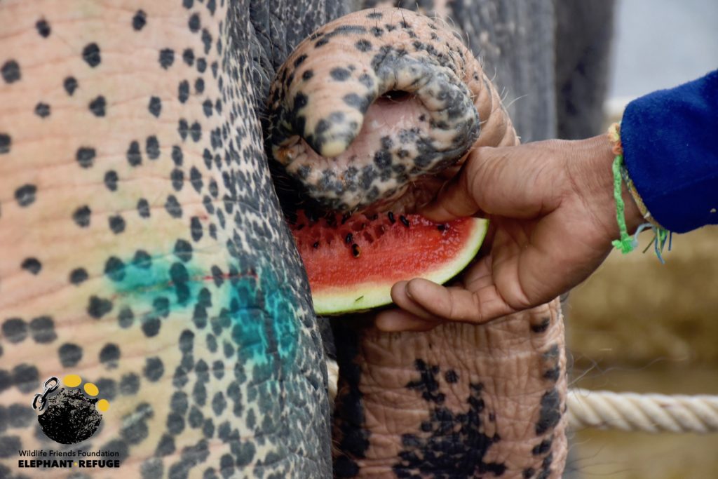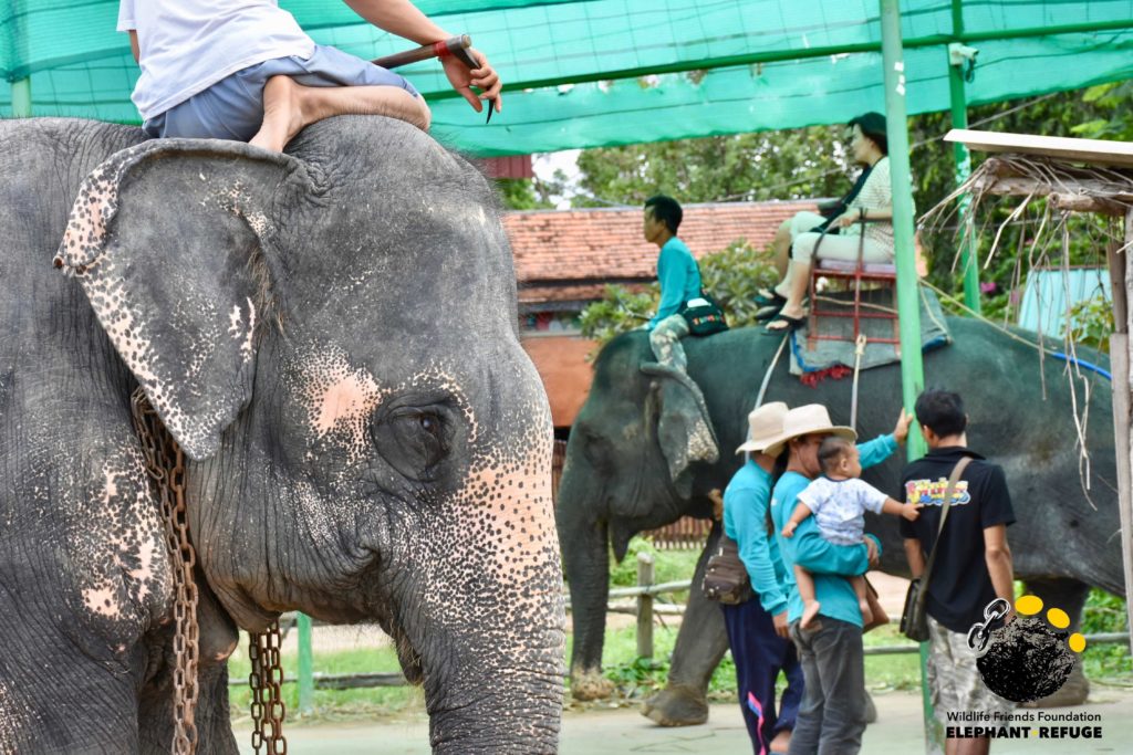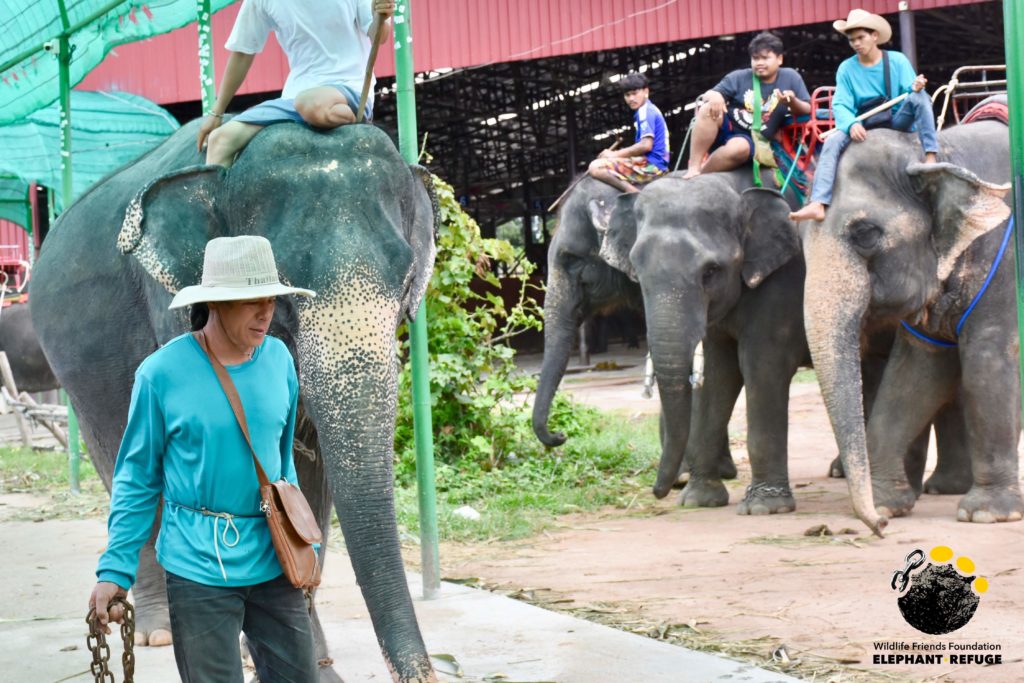 Never again will this gentle giant be chained or beaten. Never again will she have to carry a saddle on her back giving rides to the endless buss loads of tourists who visited the camp where she was made to work. After getting off the truck Boon Dee wanted to stretch her legs after the long journey. She took a stroll into WFFT’s Project 4 and took a look at the oasis that will become her home. She made a beeline for the first enclosure and greeted its inhabitant Gan Da. We then learned that these two had previously been friends when they worked together in a camp in Chiang Rai many years ago! We hope that they can once again become friends. What a fantastic birthday present for Joan who has had her wish come true and was here to witness the magic. Thank you to Joan again for her compassion and her determination to help the elephants of Thailand.