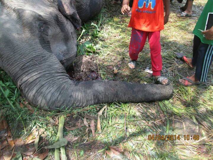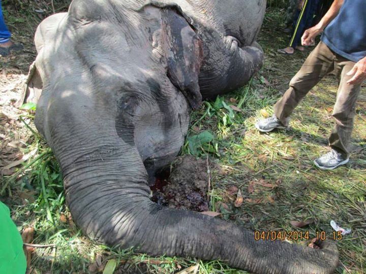 On April 3rd, 2014 villagers in Sabayoi, Songkla, Southern Thailand, were alarmed by the screams of a mahout (elephant keeper) who was attacked by a 10 year old captive bull elephant. The young bull that was chained up was in musth and trampled the mahout to death. The elephant was still very stressed right after the attack, however hours later when the elephant had calmed down 5 government officials came to the village with guns, saying they were there to clear the problem. At this time the villagers begged the officials not to harm or kill the elephant as it had cooled down and was securely chained up.