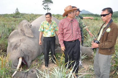 On Friday the 16th of December another wild bull elephant was killed at Kuiburi national park, near the WFFT wildlife rescue center. Farmers try to protect their farmland from wild elephants, however some of them use high voltage power lines instead of safe electrical fencing equipment. Again an elephant lost its life, the pineapple farmer was “protecting” his crops, but at the same time encroaching on forest land, the home of these wild elephan