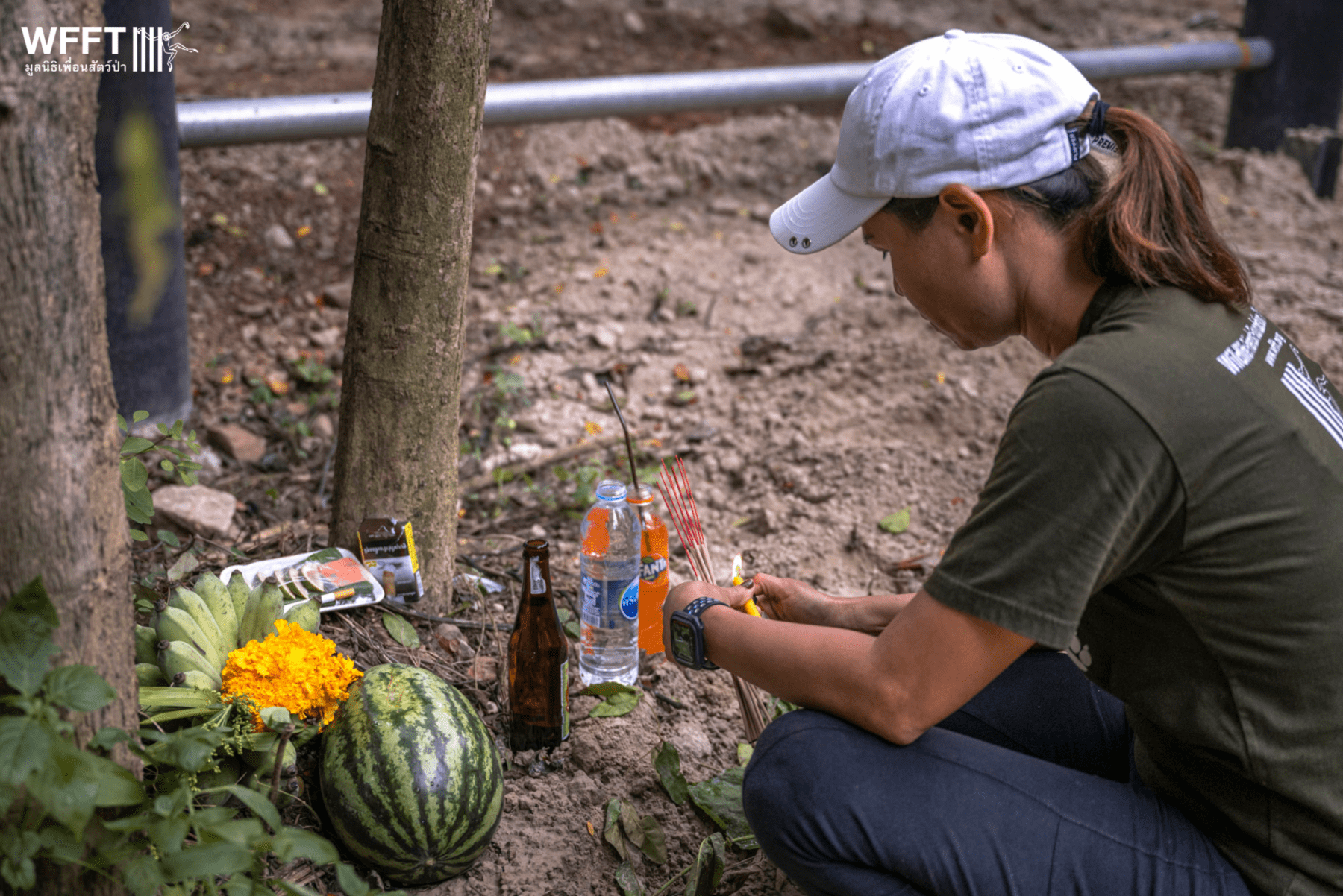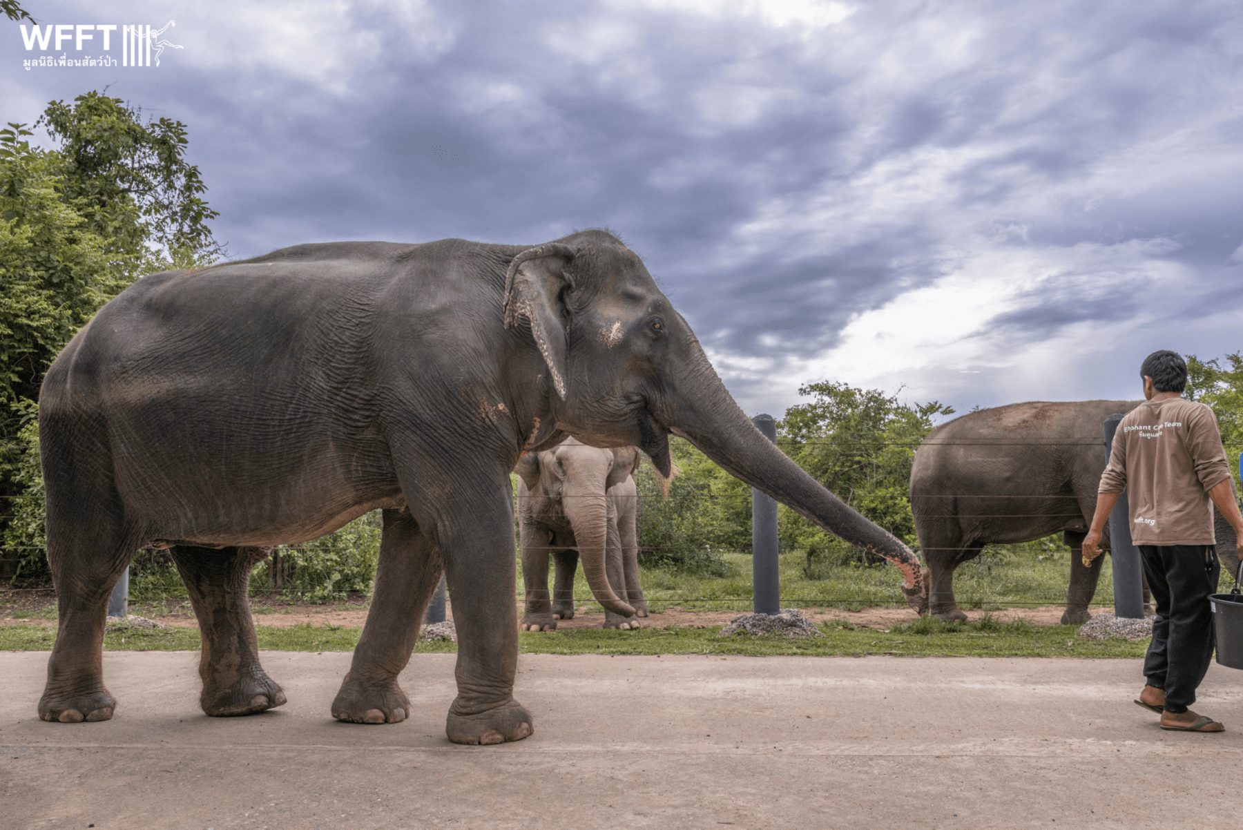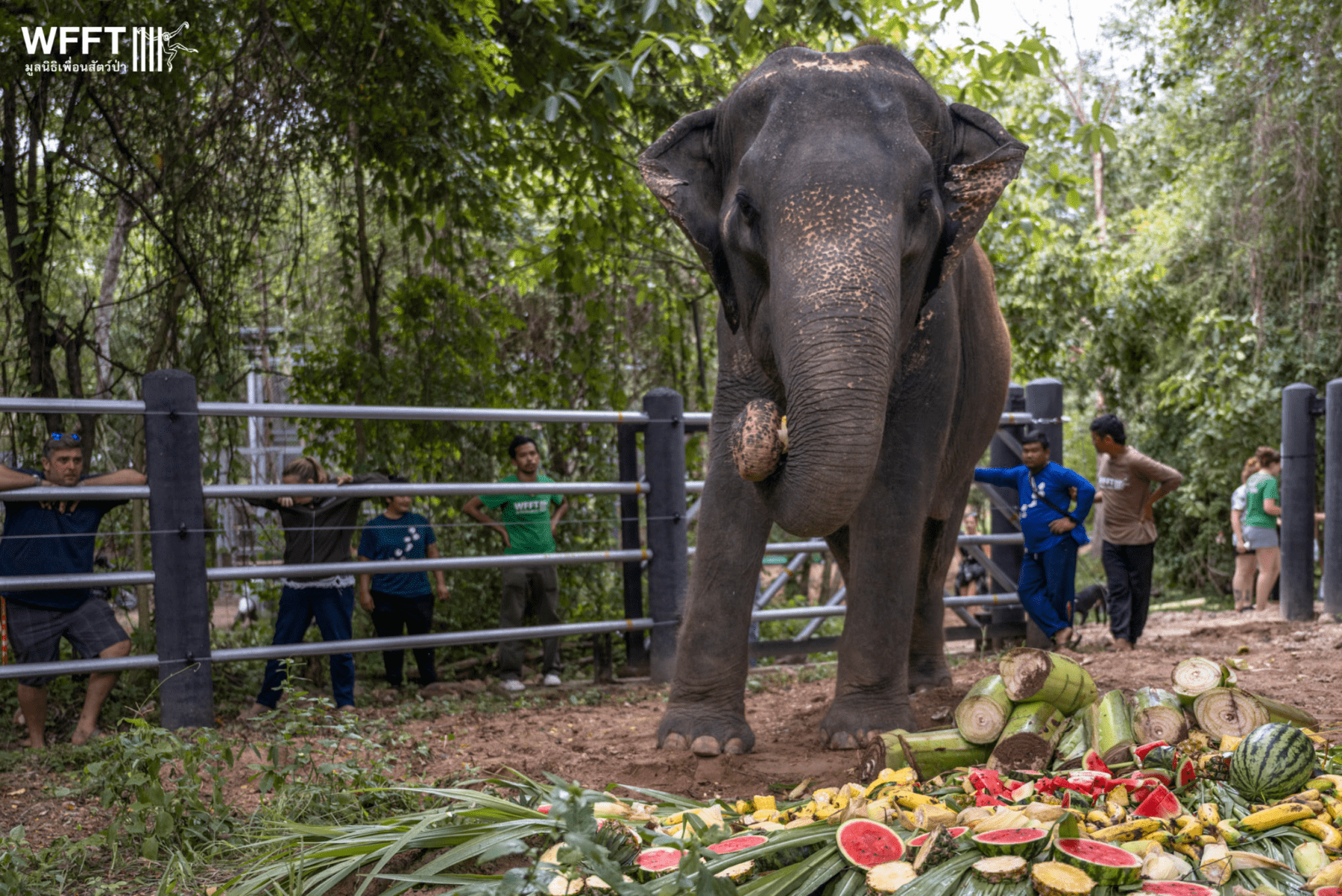 WFFT’s staff and volunteers greeted her on arrival, and had prepared a welcoming buffet of fresh fruit and specially-made banana balls, which Nam Chok tucked into straight away.